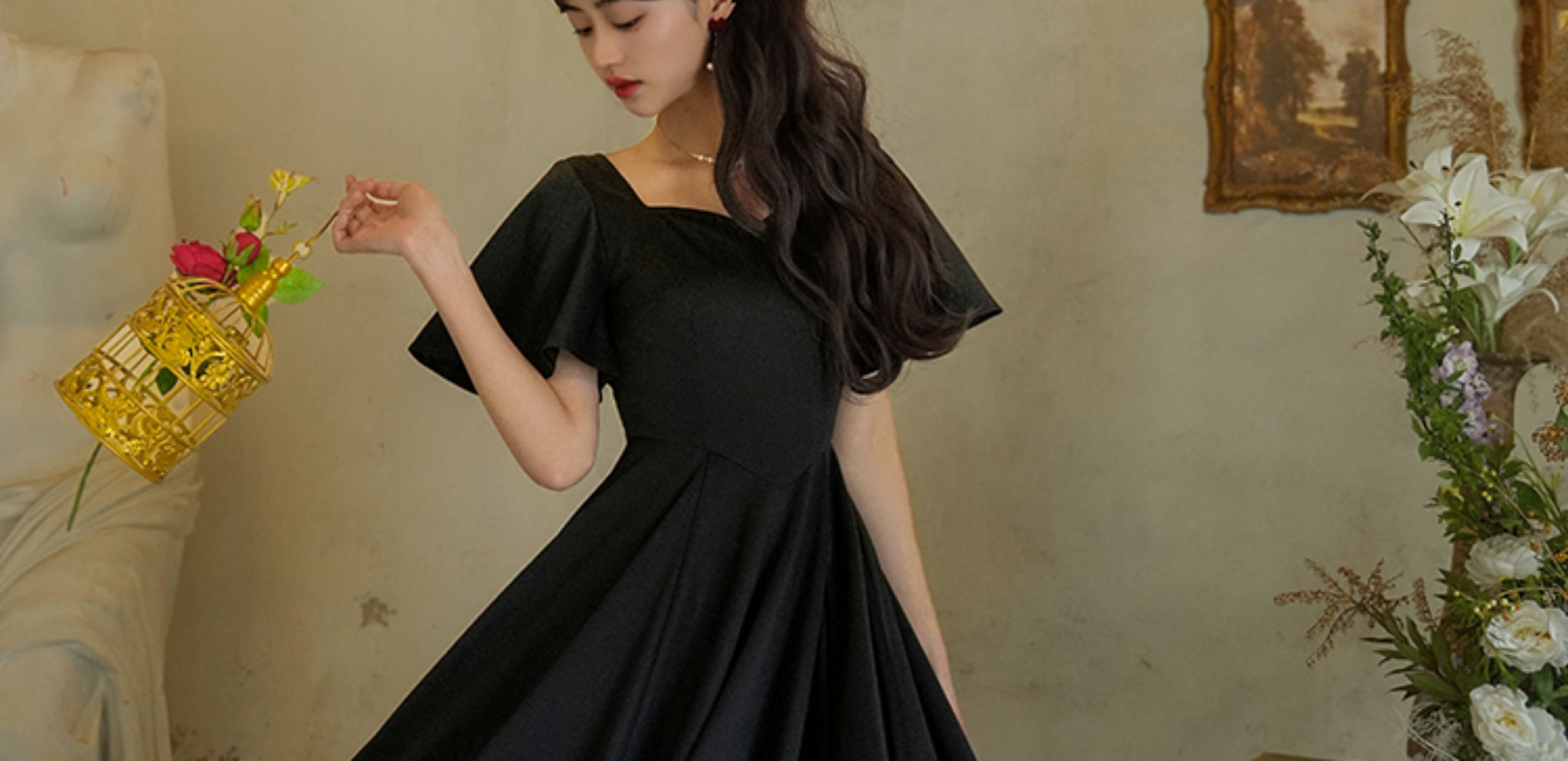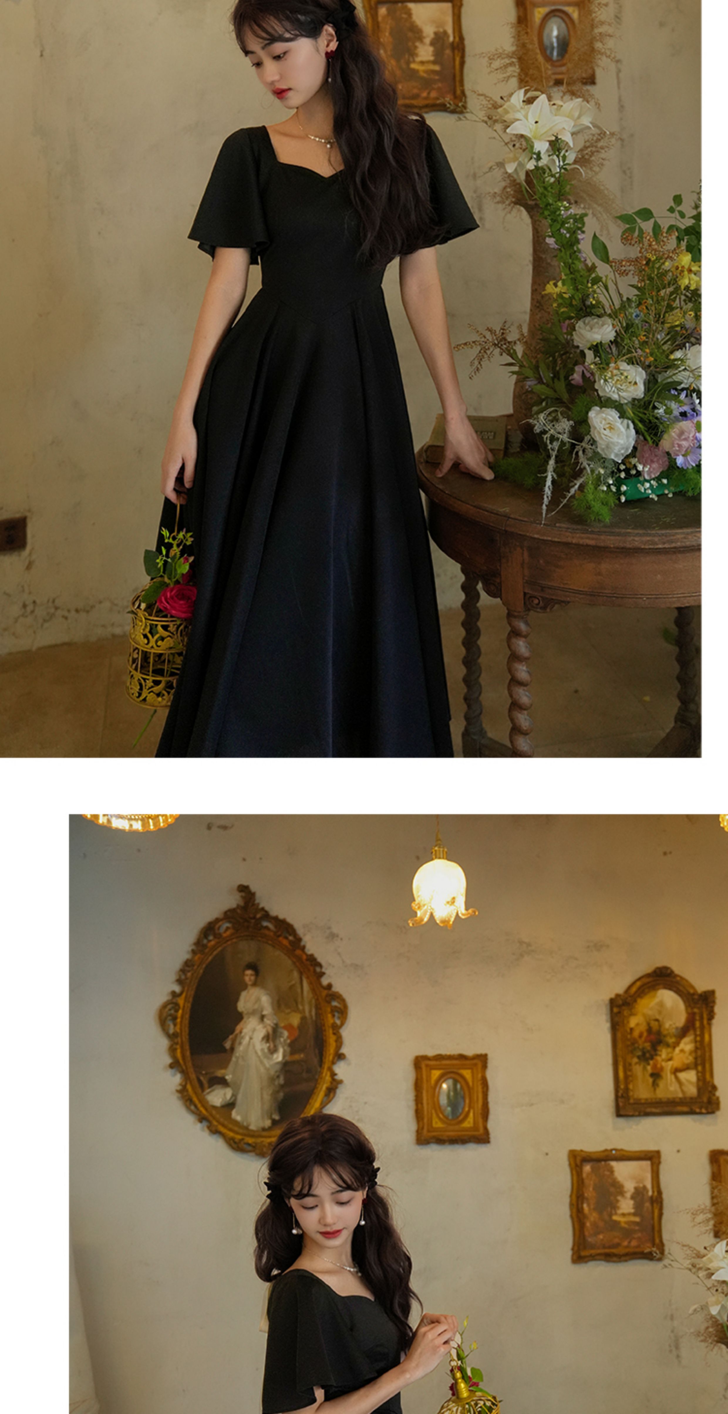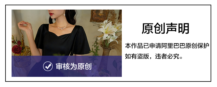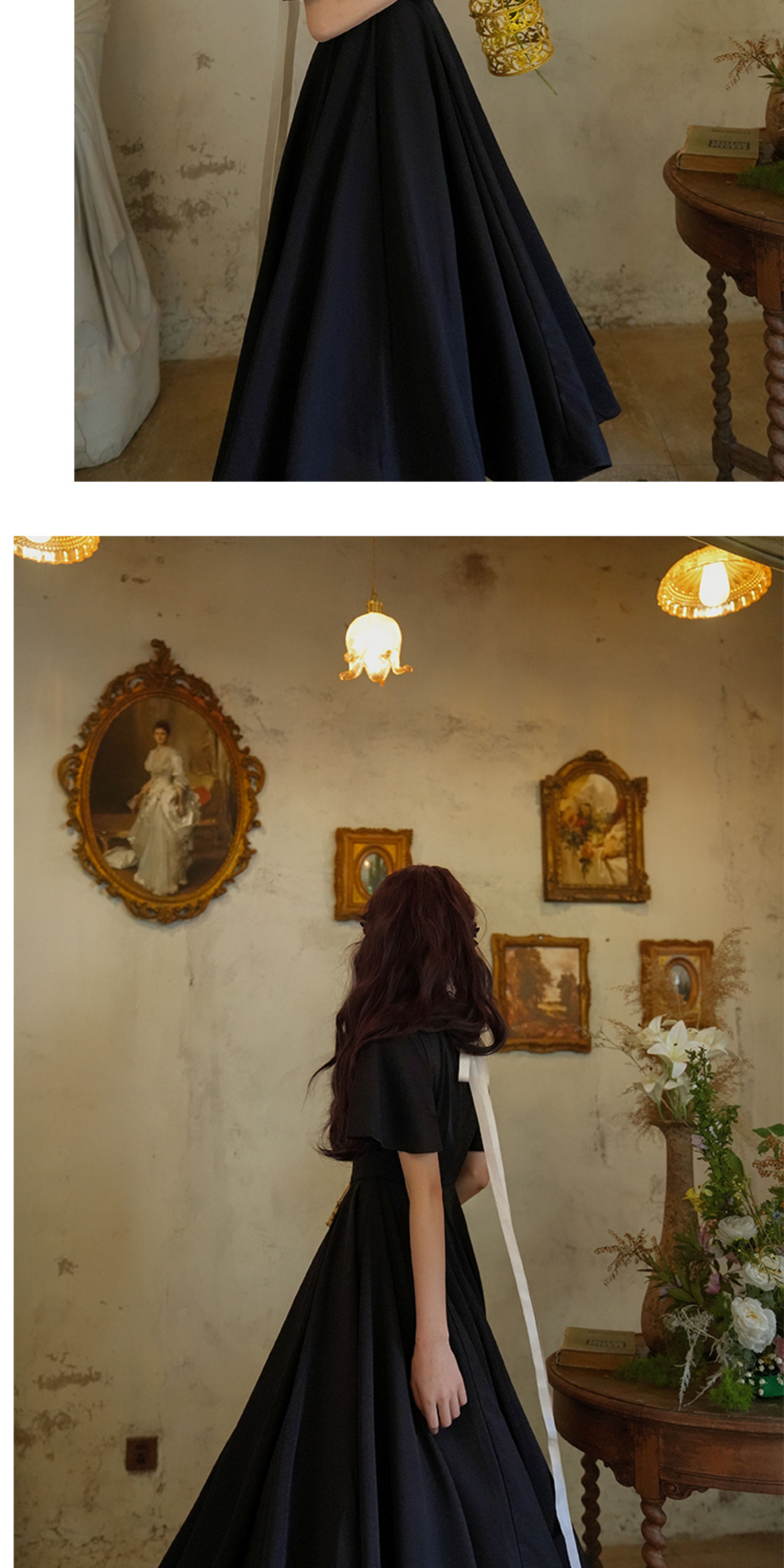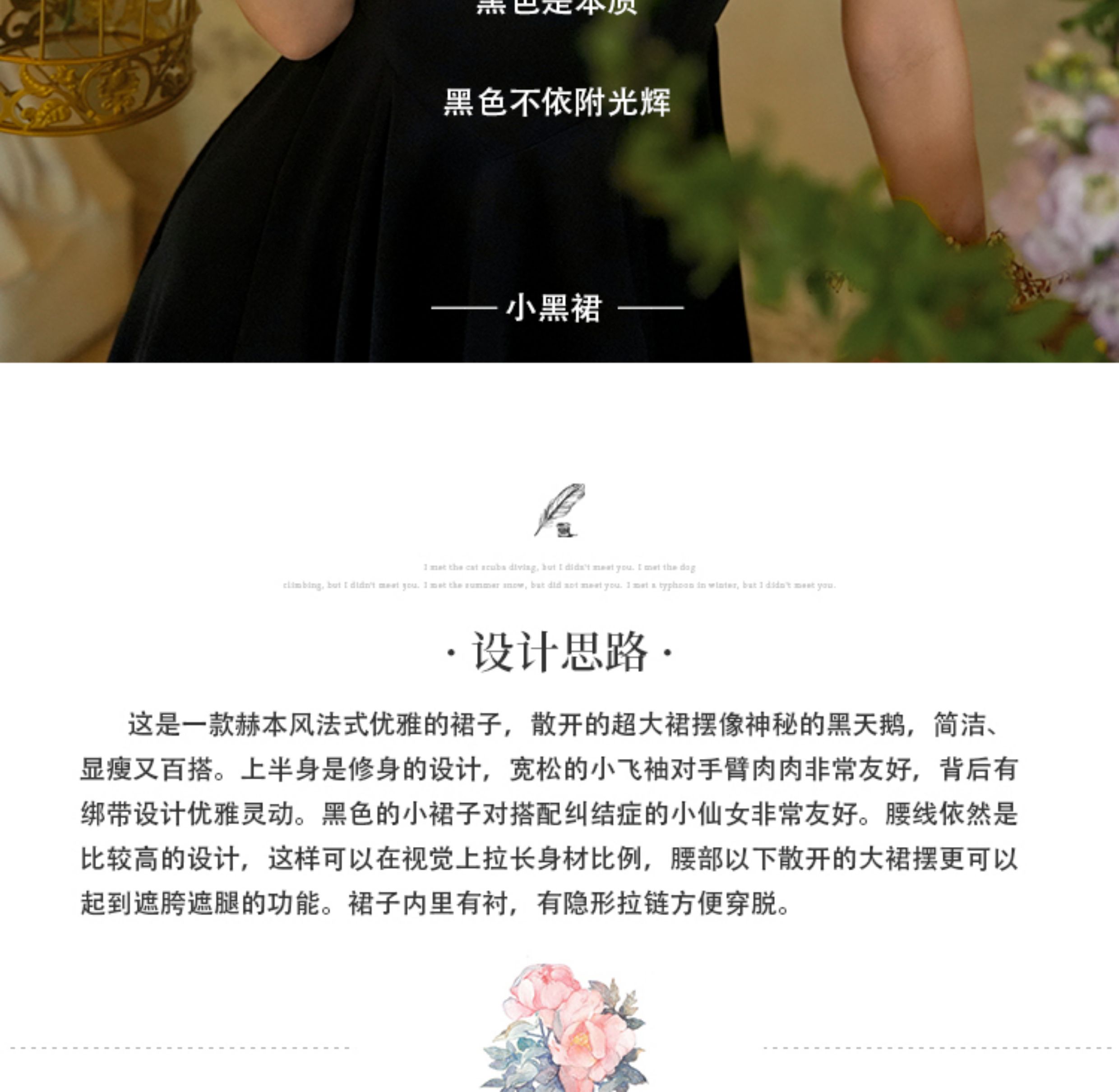 彌愛原創《小黑裙》法式復古赫本風短袖大擺高腰飄帶連衣裙顯瘦夏