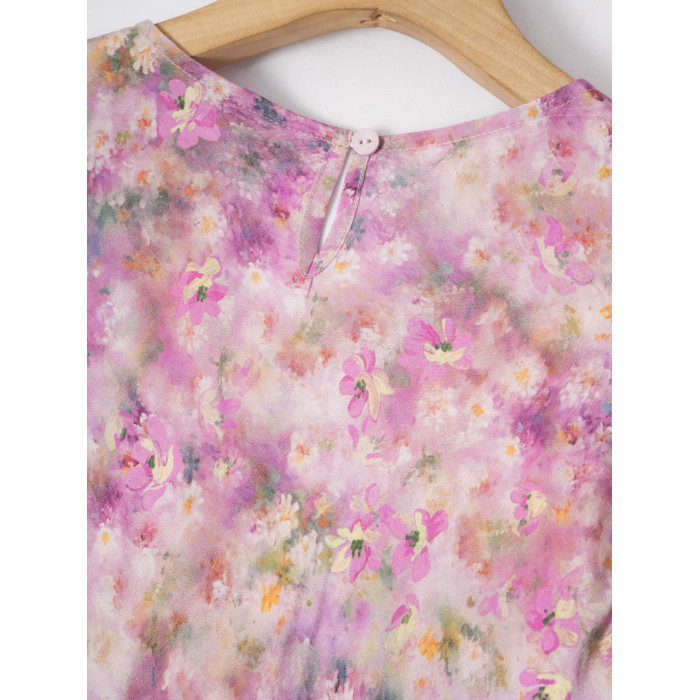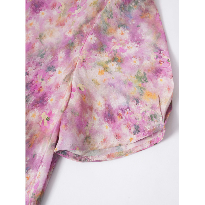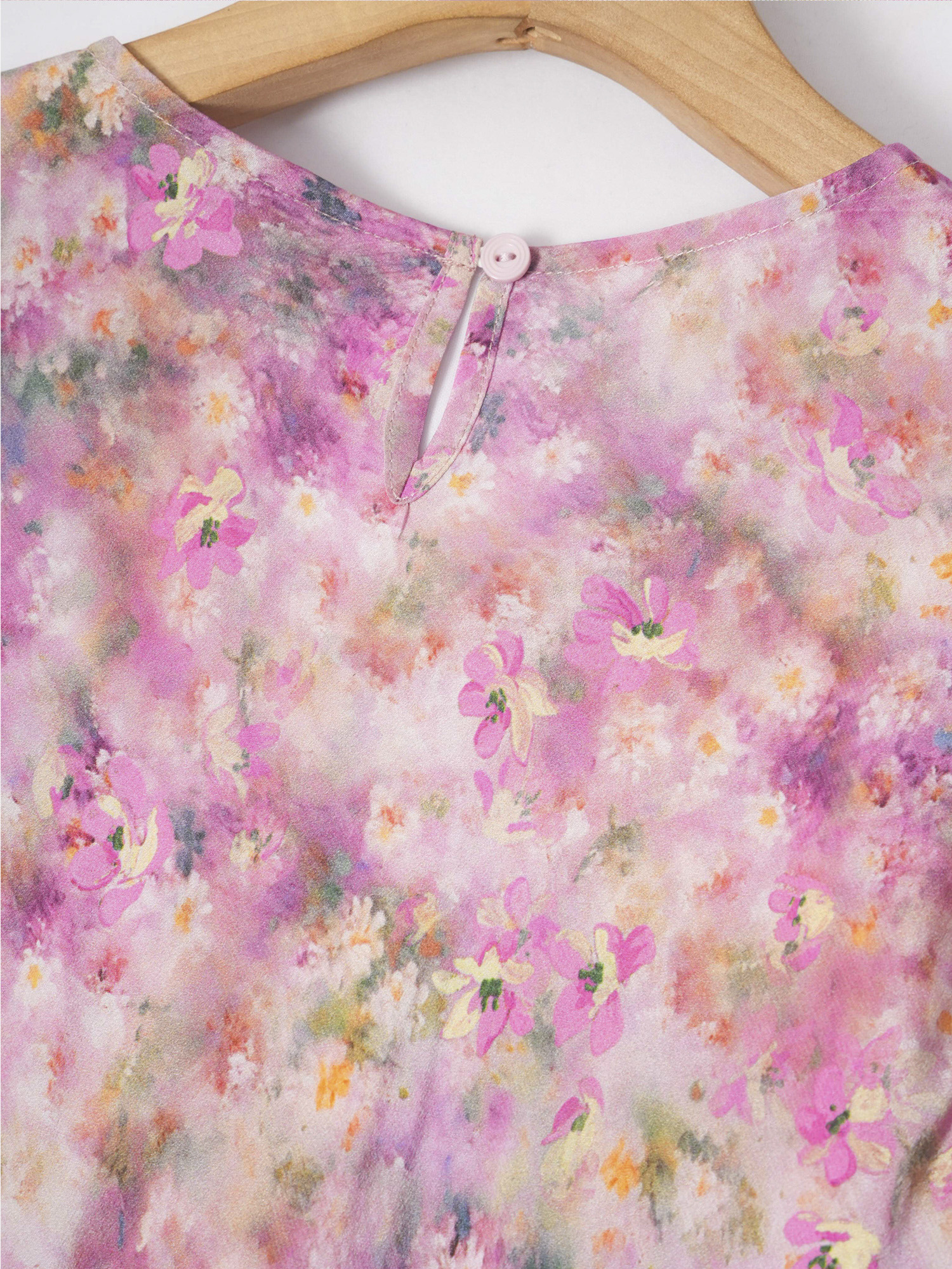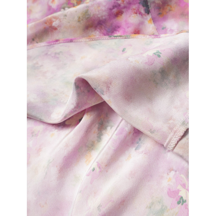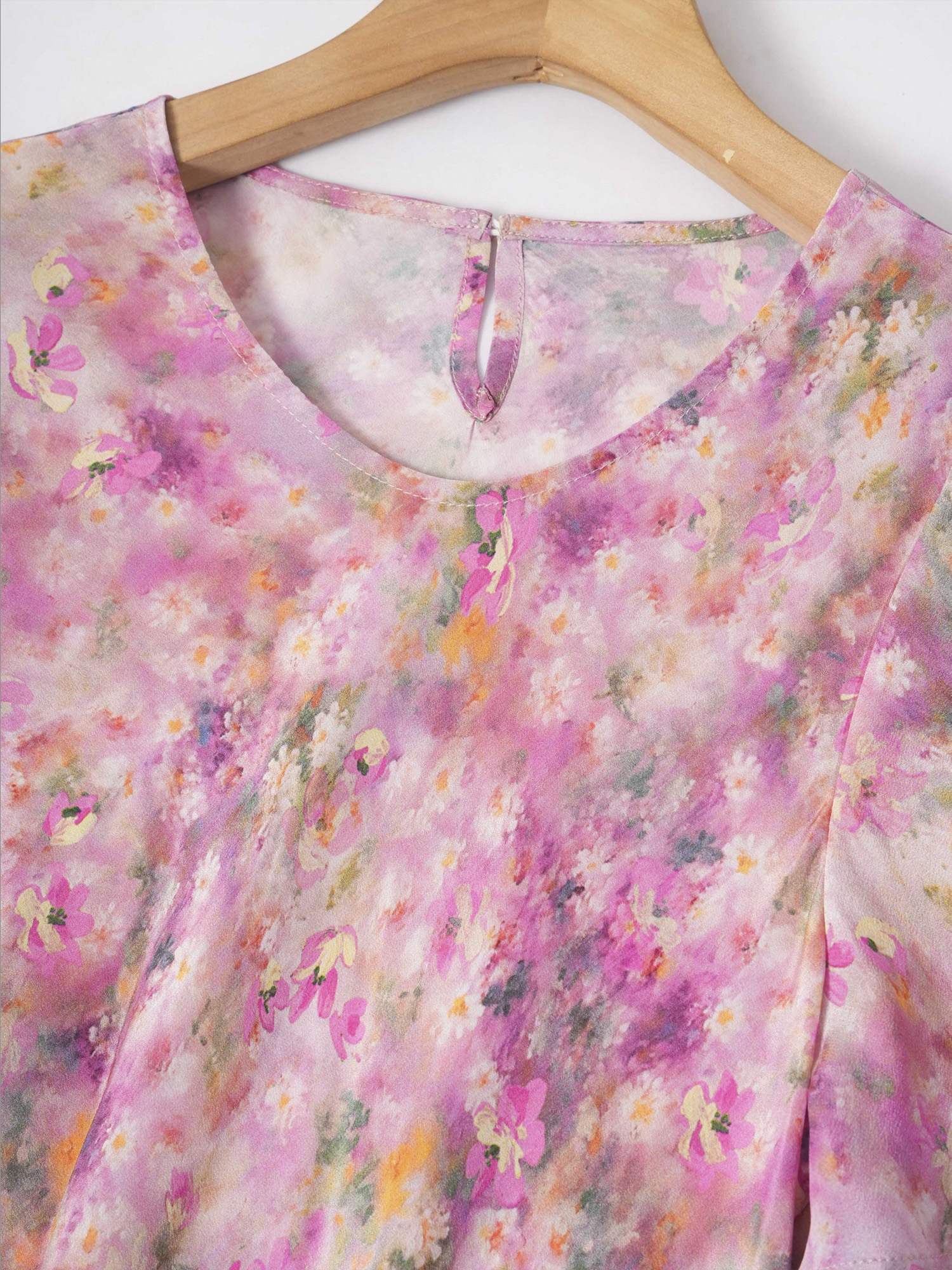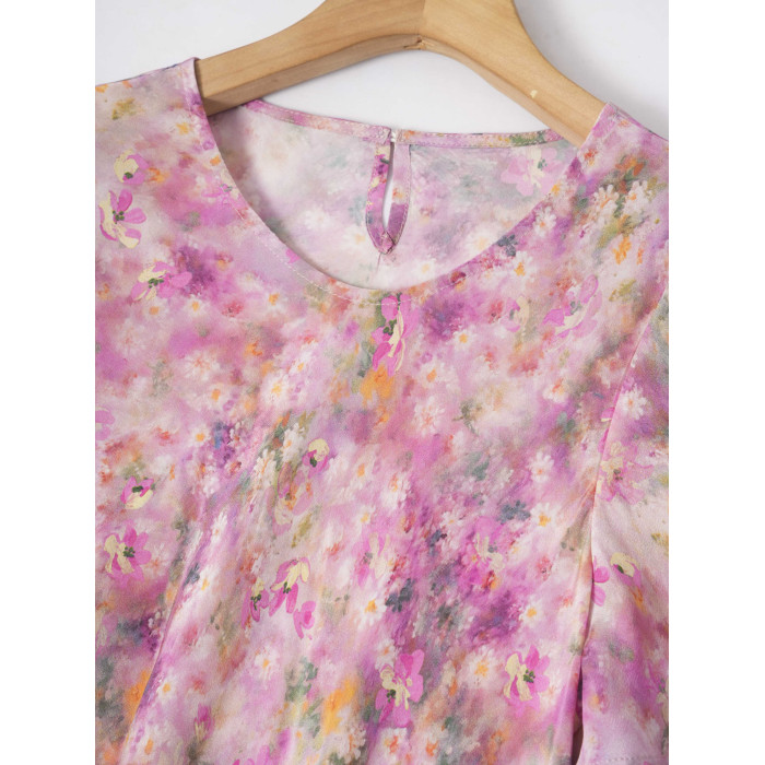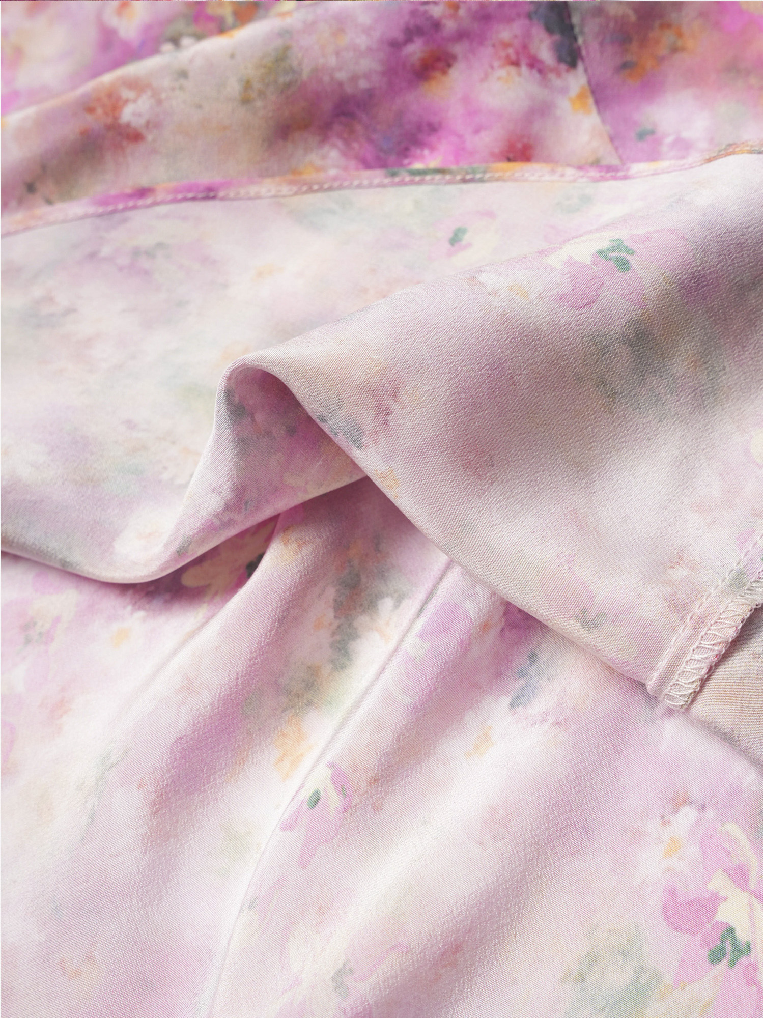 立體斜裁!桑蠶絲暈染印花短袖法式真絲連衣裙時尚修身長裙顯瘦女