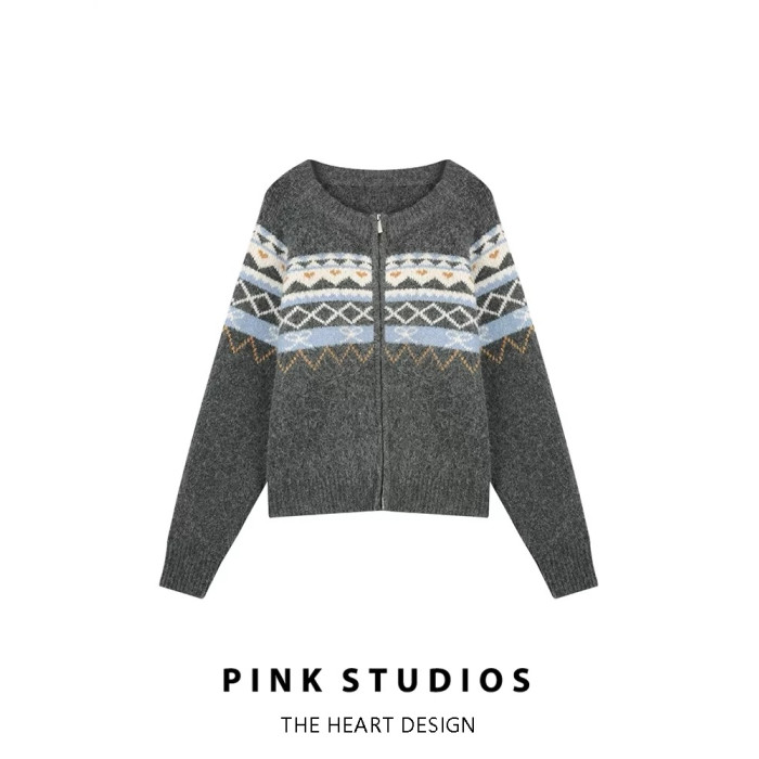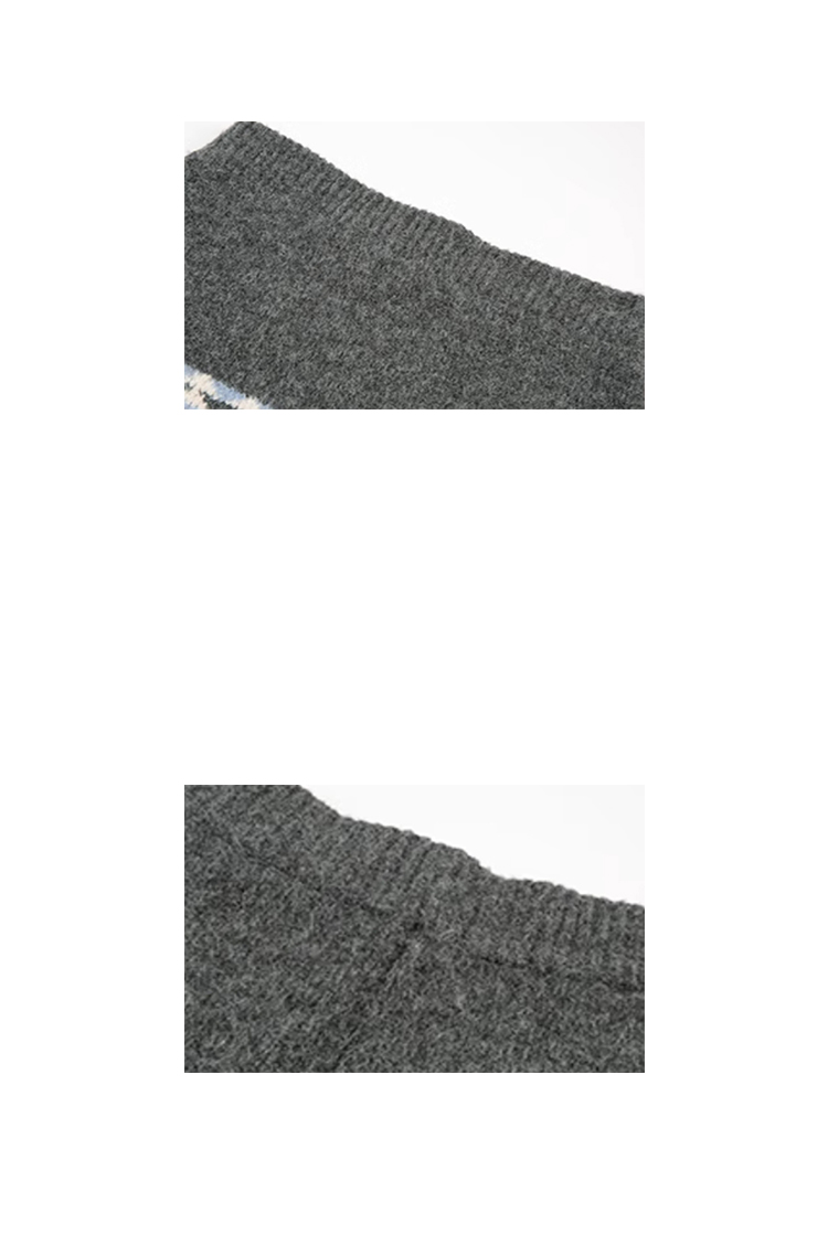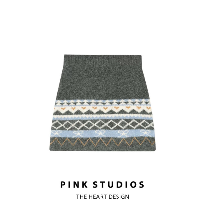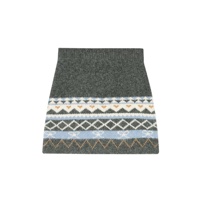 灰色提花針織半身裙女秋冬費爾島復古慵懶松緊腰顯瘦a字直筒短裙