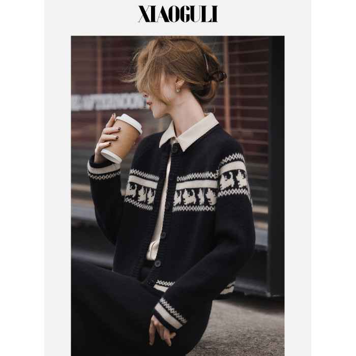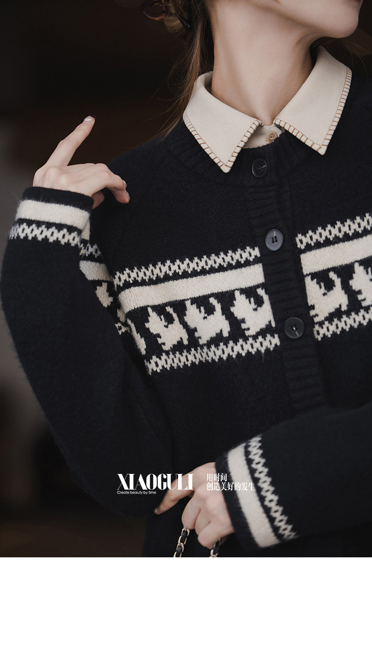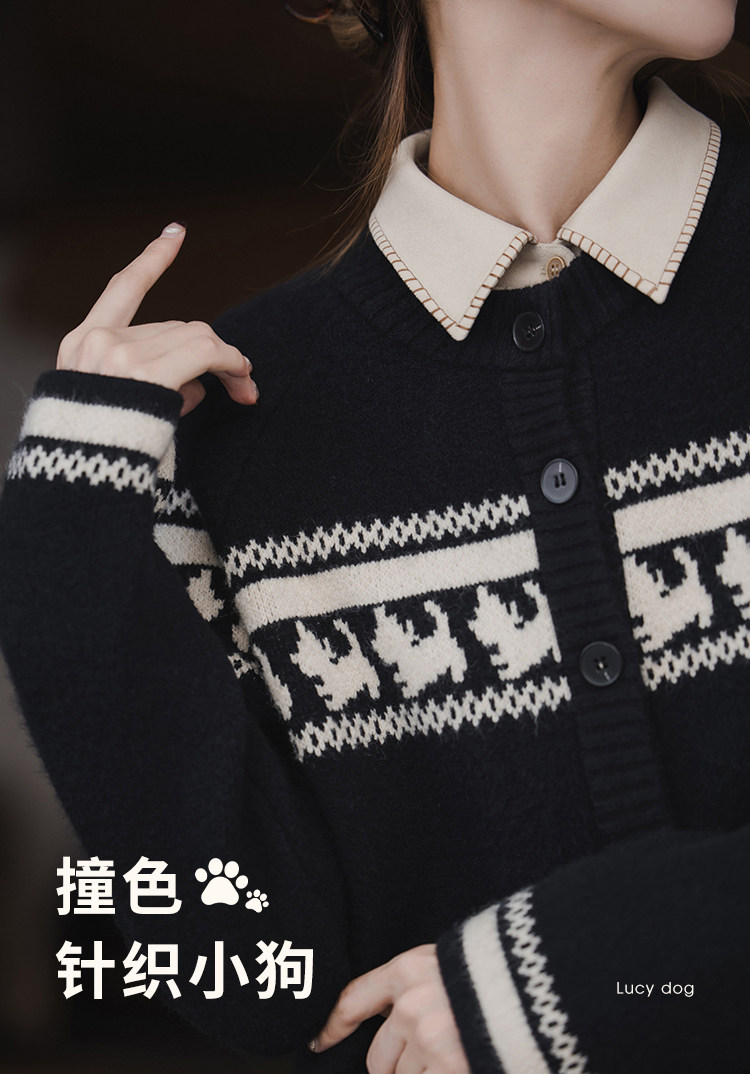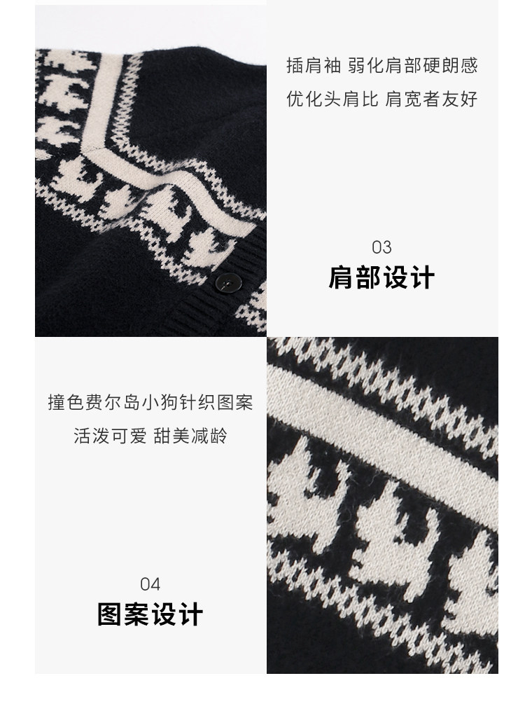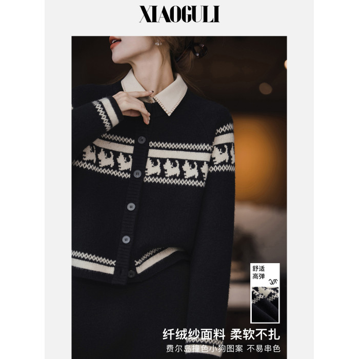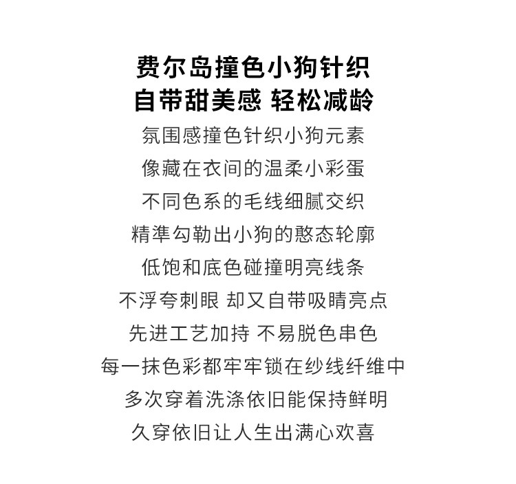 小穀粒費爾島毛衣 氛圍感撞色小狗針織衫女秋冬新款復古百搭上衣