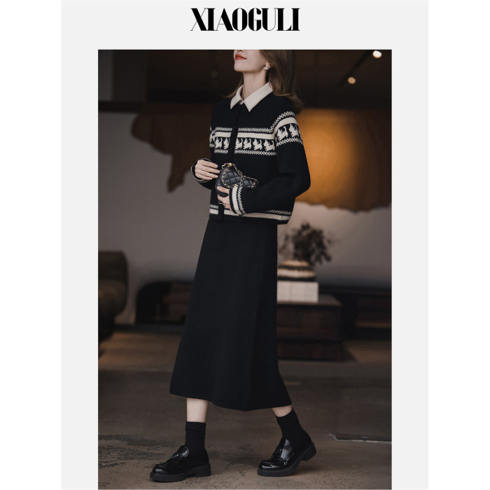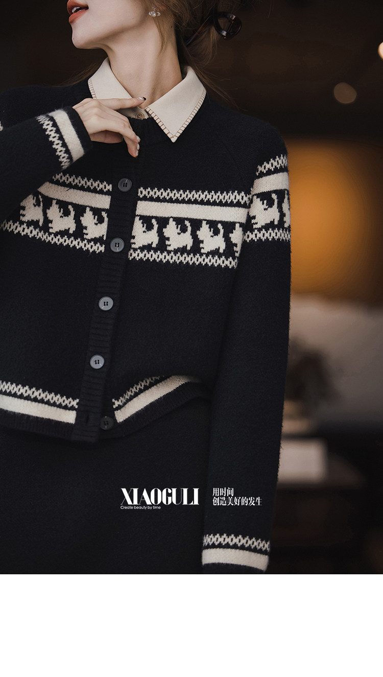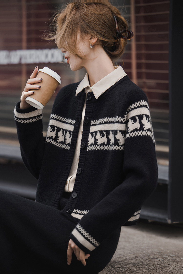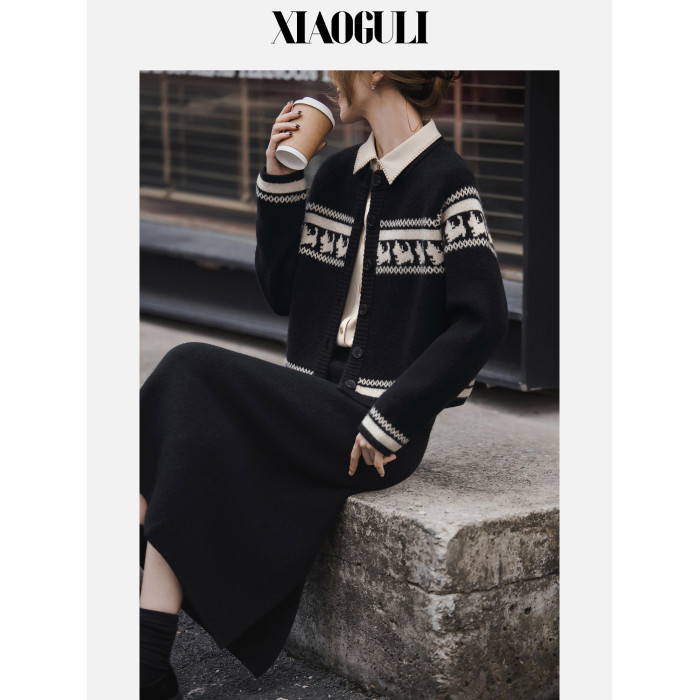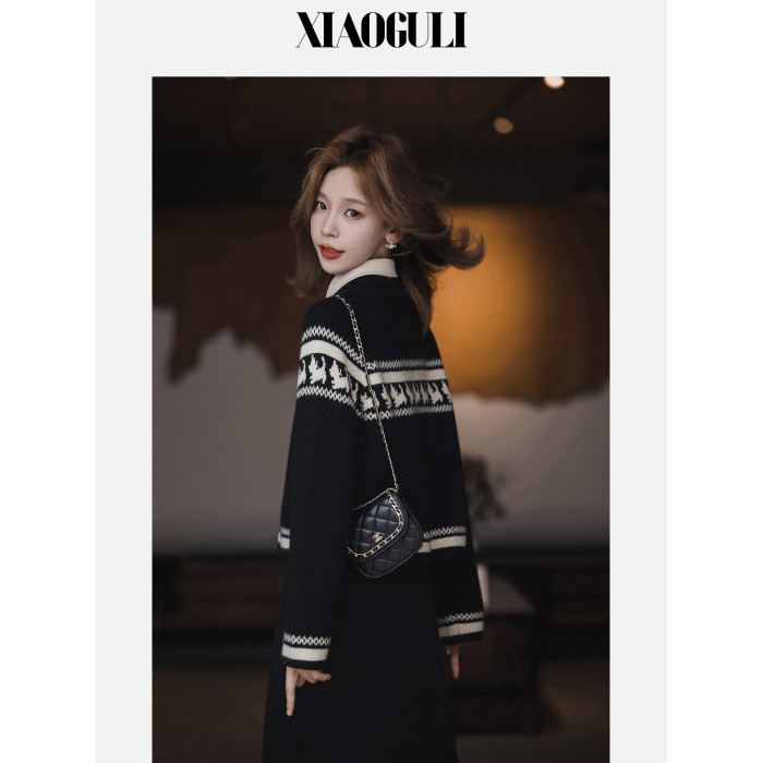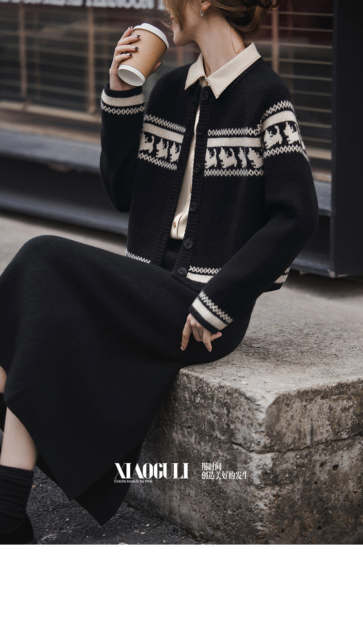小穀粒費爾島毛衣 氛圍感撞色小狗針織衫女秋冬新款復古百搭上衣