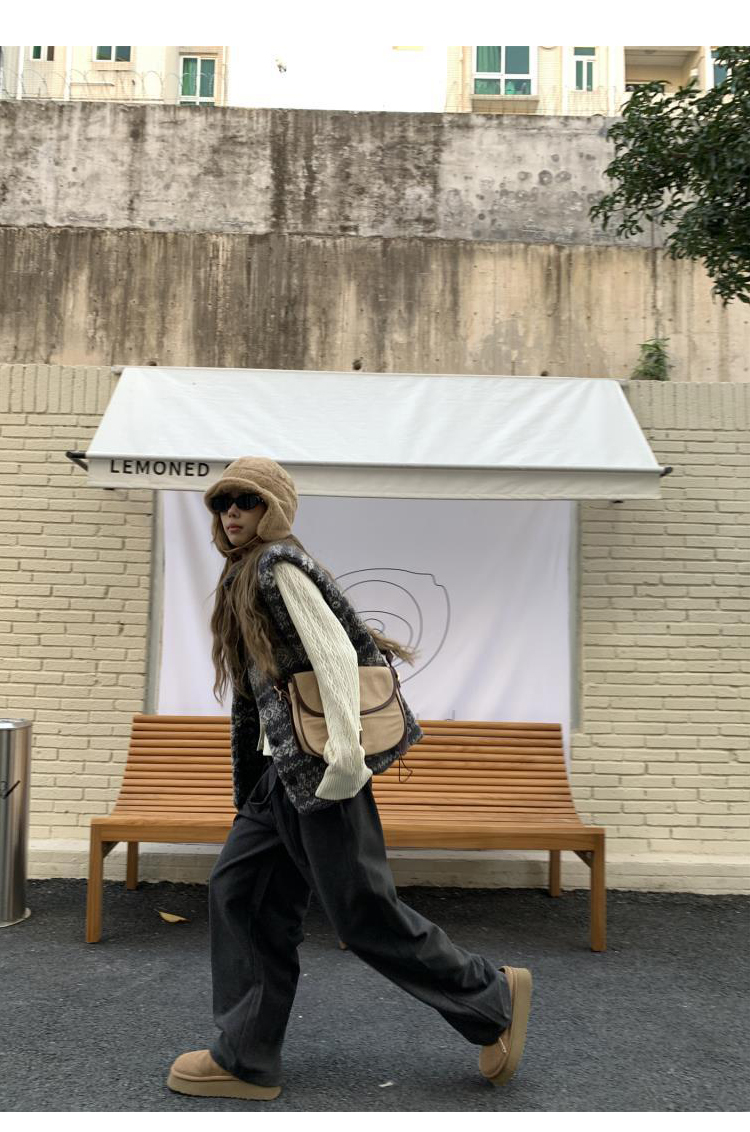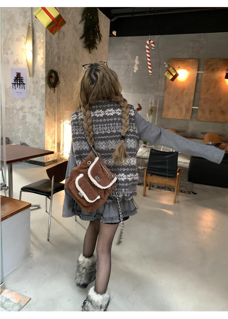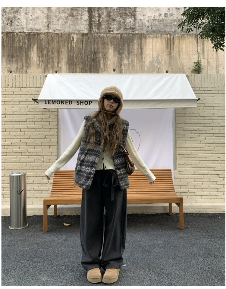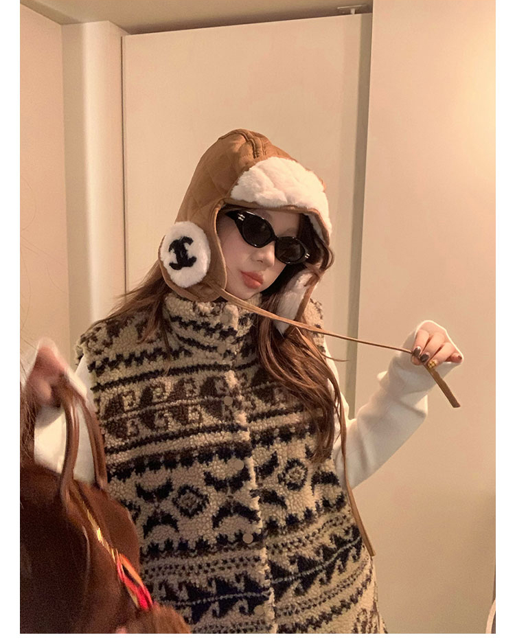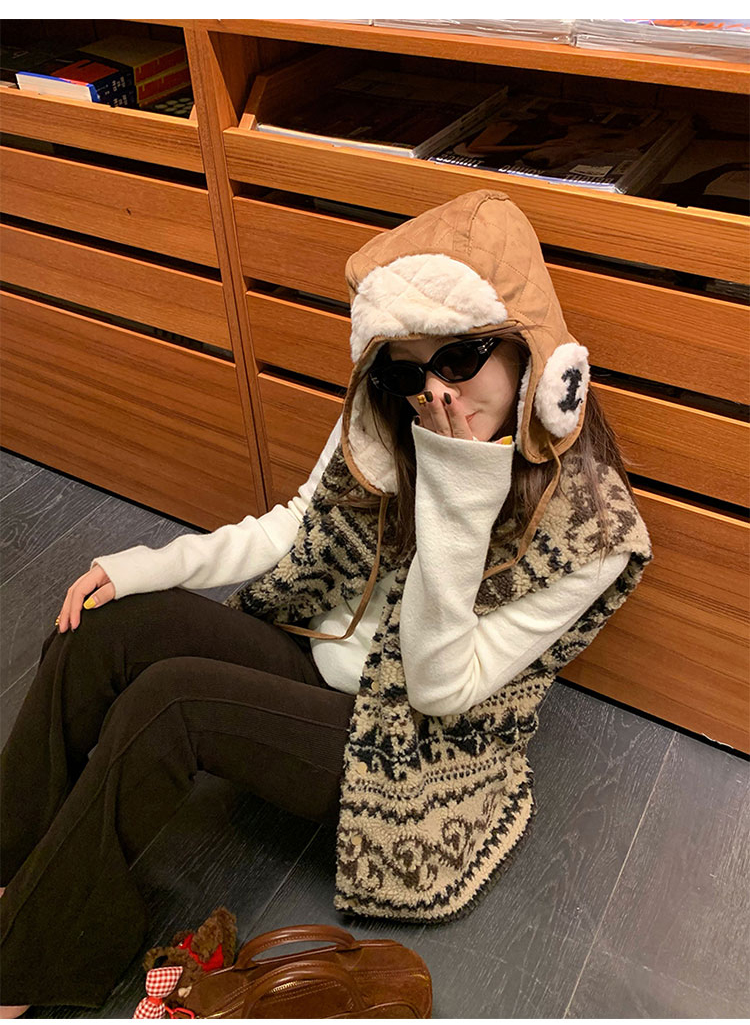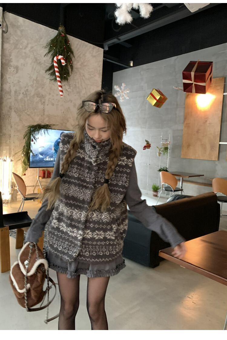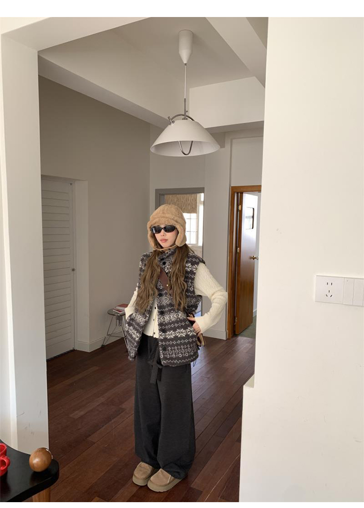 費爾島提花羊羔毛馬甲女2025新款立領韓系外穿麂皮絨皮毛一體馬甲