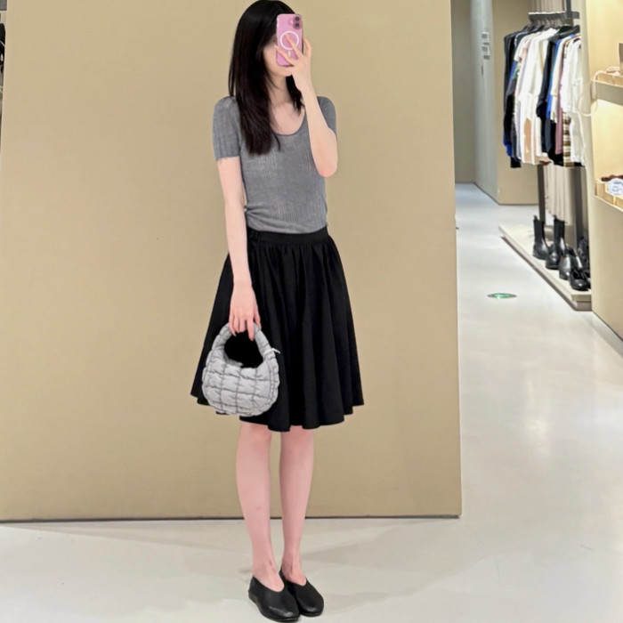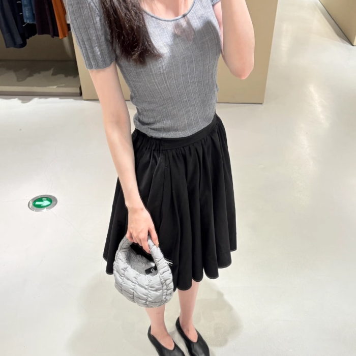 27and3 簡單好看N!復古芭蕾風 蓬蓬裙 百搭休閒黑色短裙 中裙