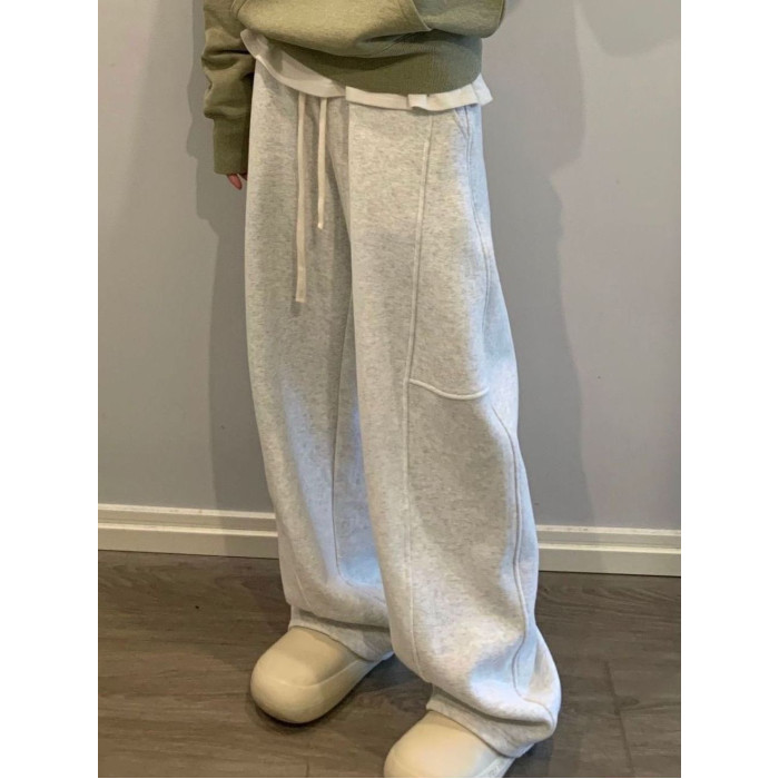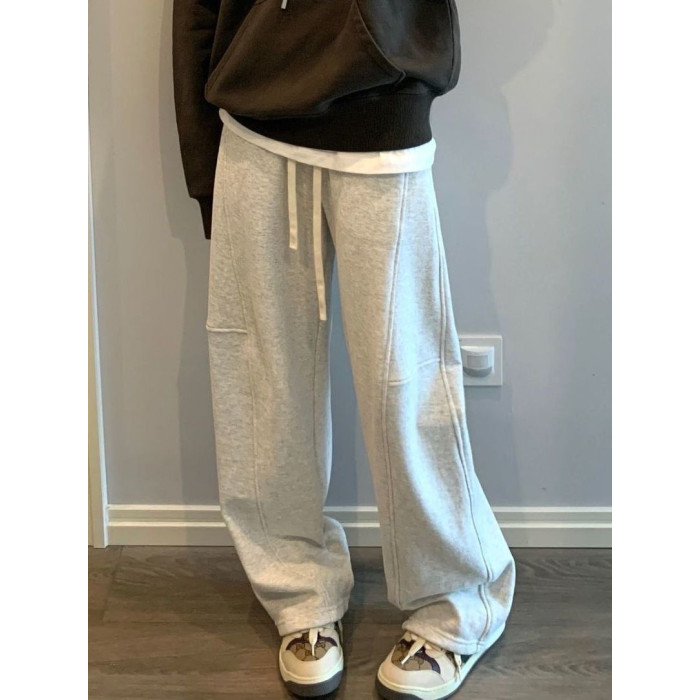 灰色美式衛褲女春秋新款秋冬韓版直筒拼接休閒百搭彎刀加絨運動褲
