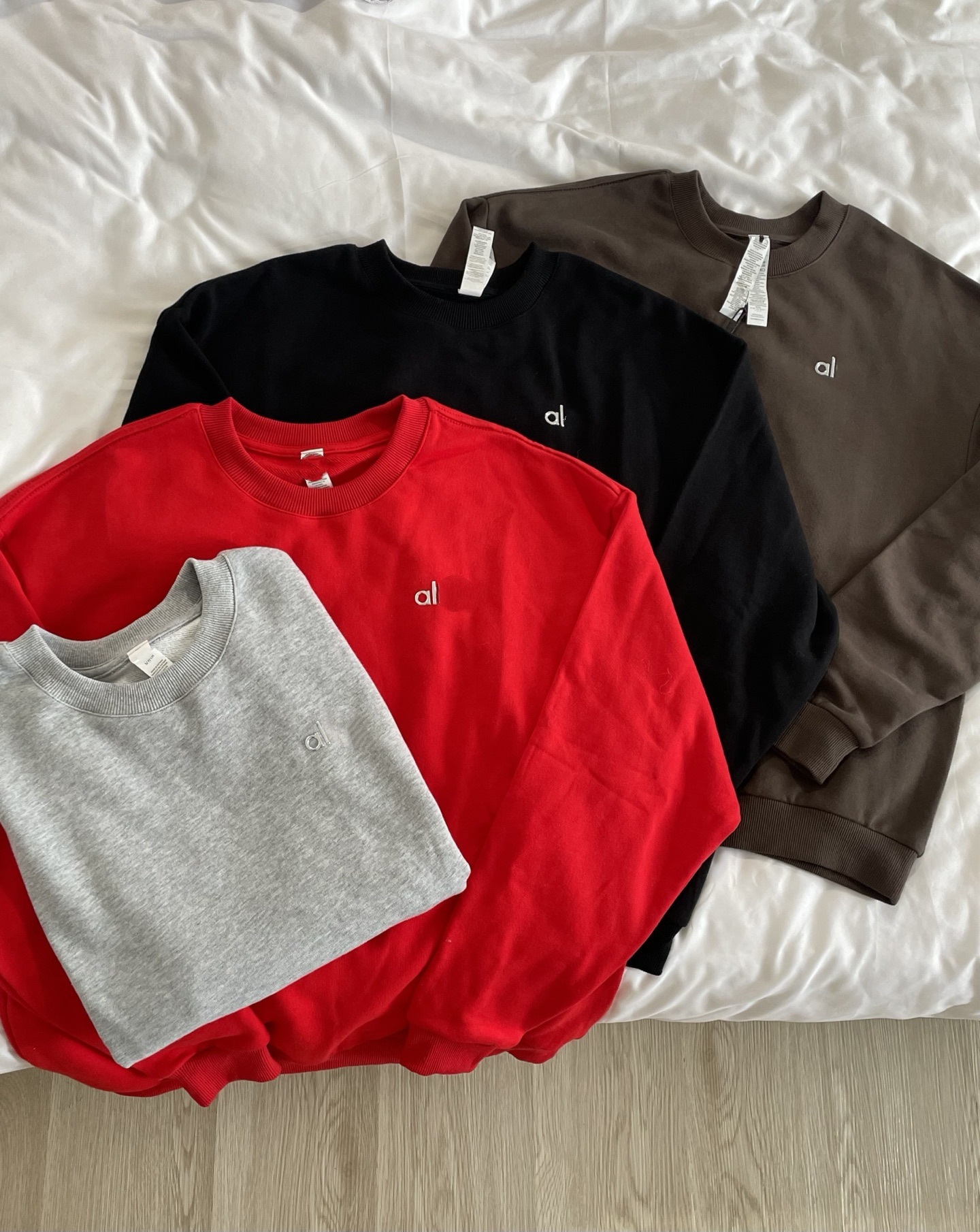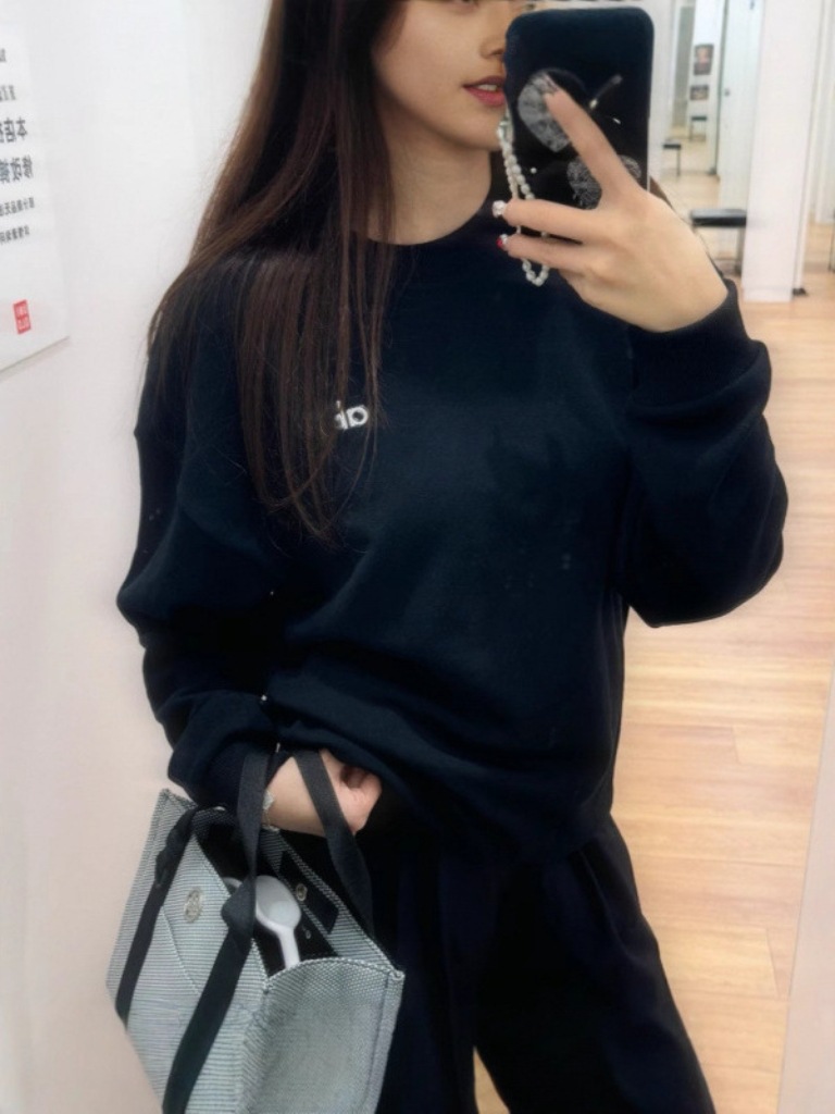 金智秀同款啊lo圓領衛衣寬松百搭長袖套頭上衣情侶純色簡約女