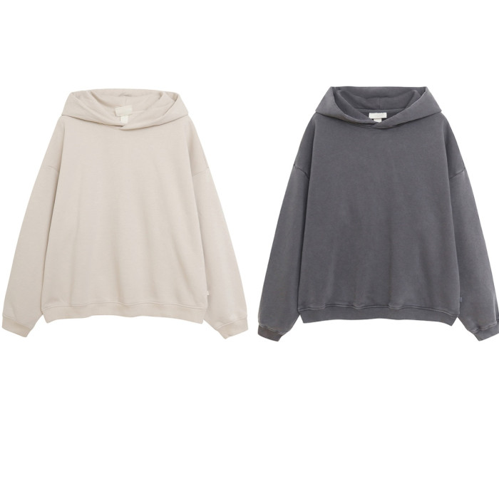 高品質~82%棉/秋季純色連帽衛衣女士寬松大碼薄絨慵懶風外套
