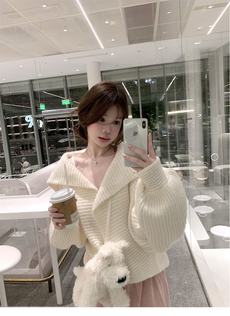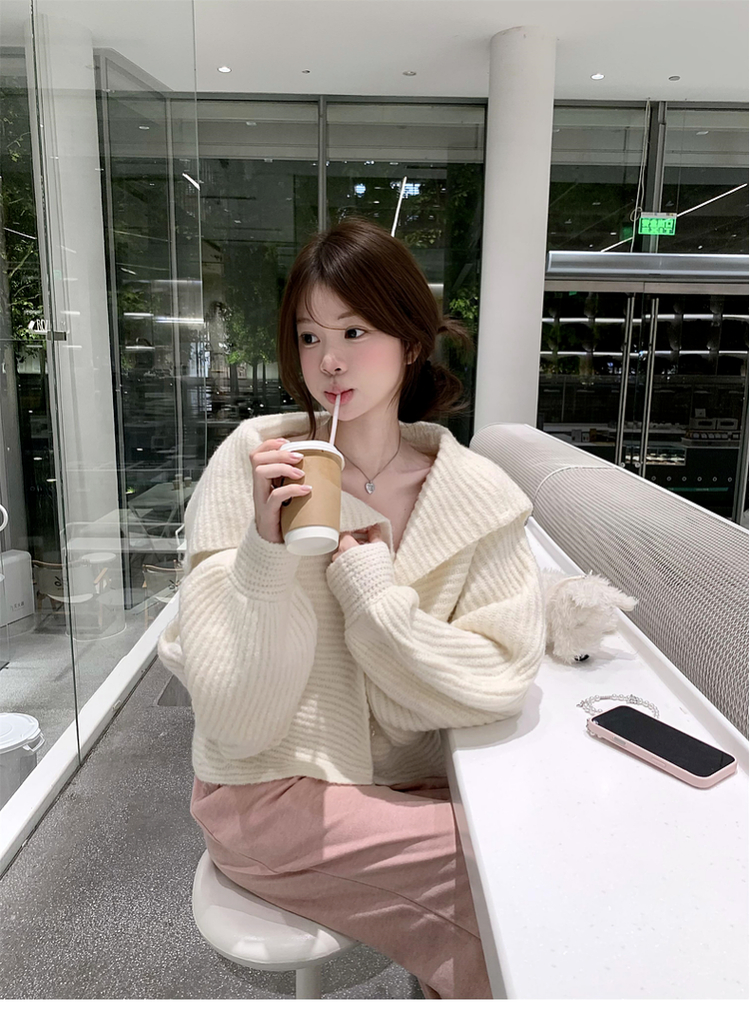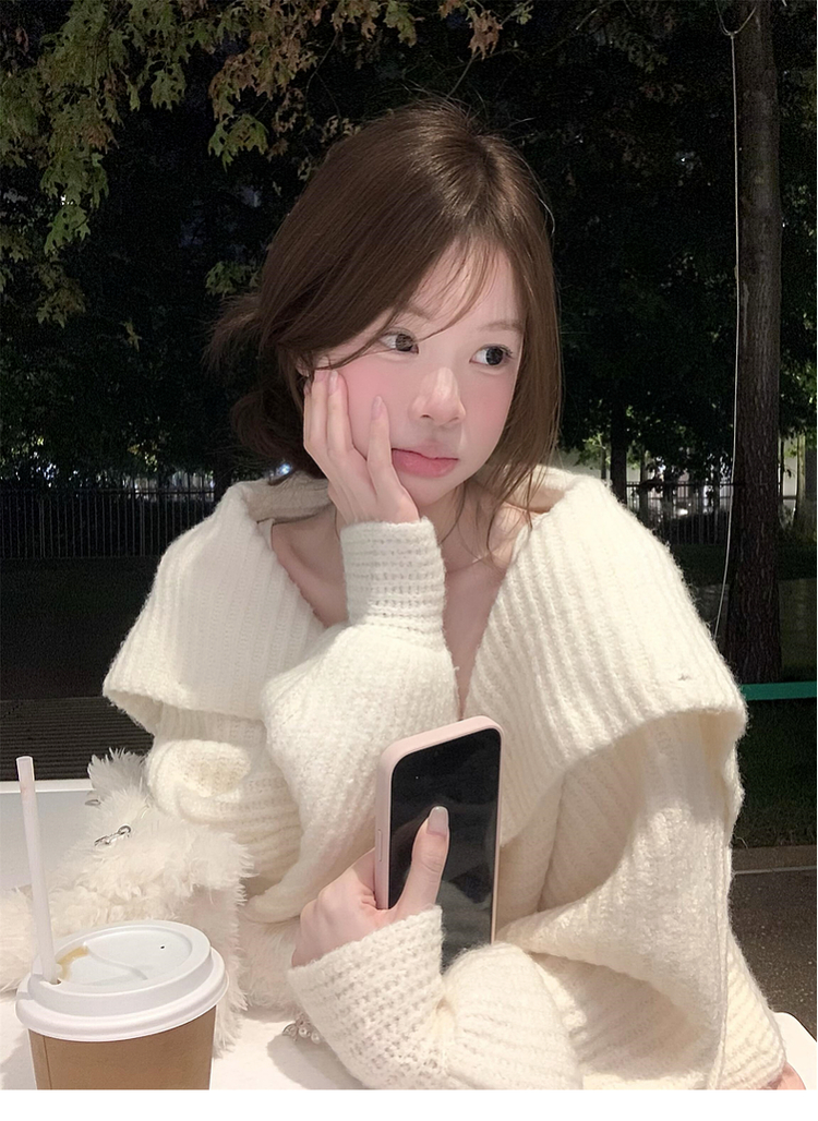早秋氛圍感穿搭毛衣外套女秋冬2025新款慵懶風海軍領針織開衫上衣