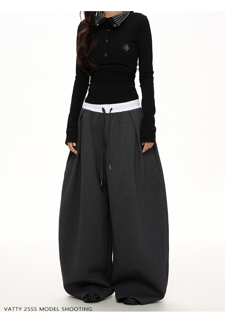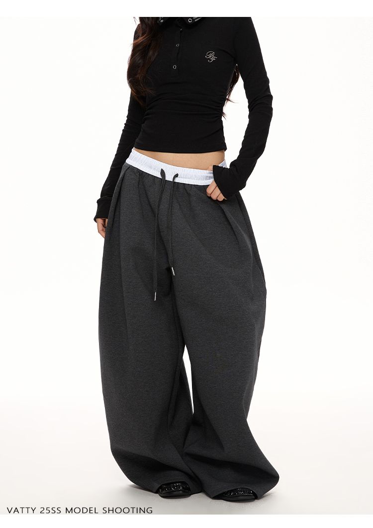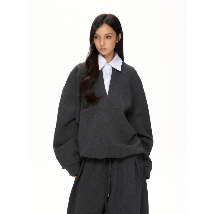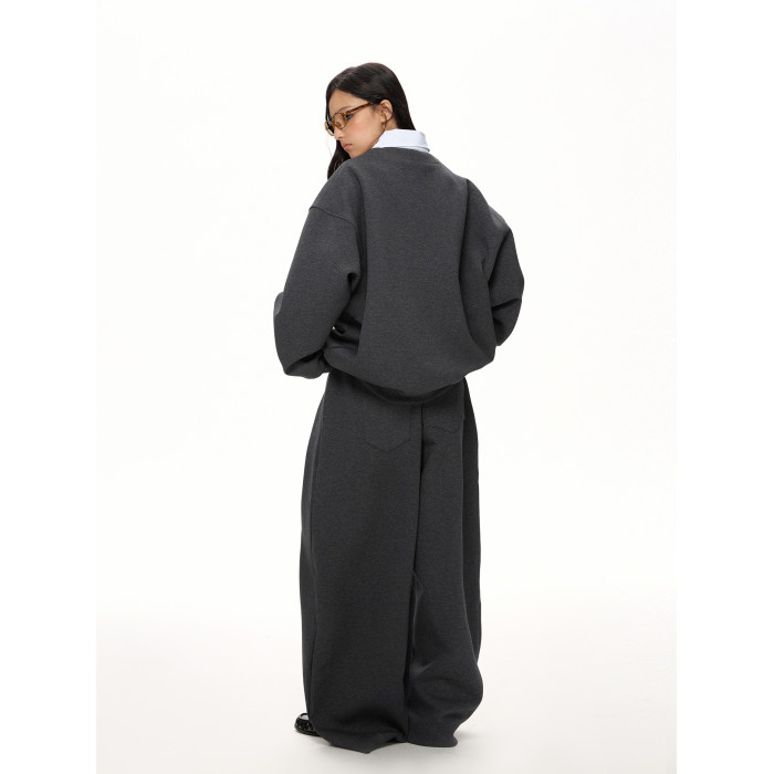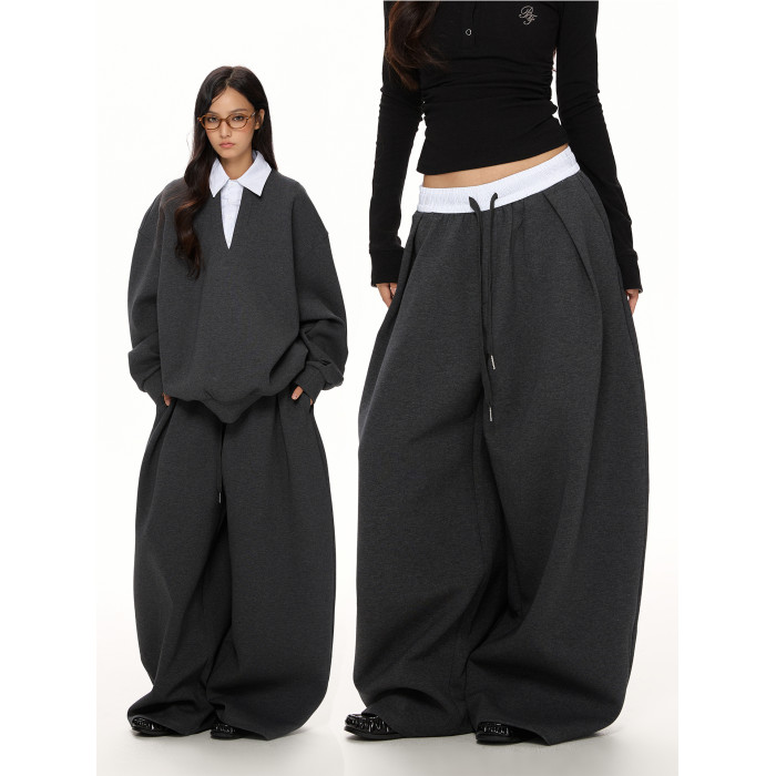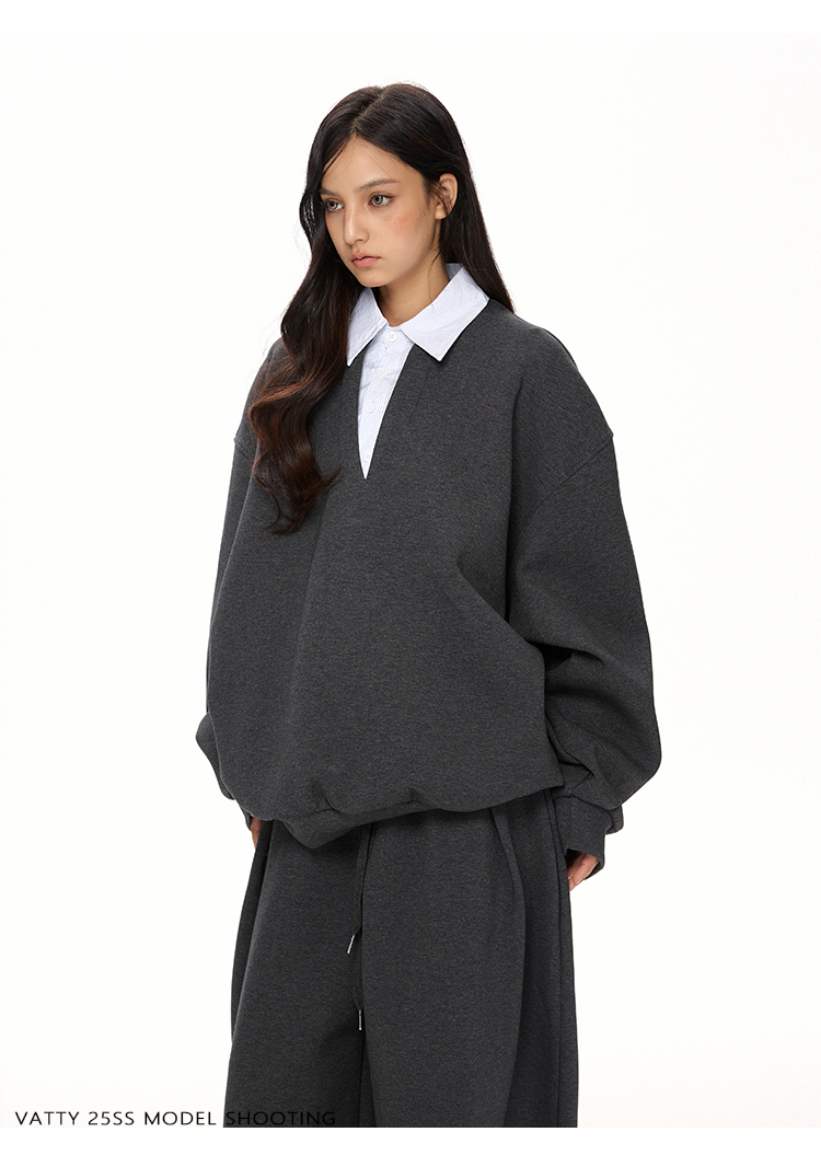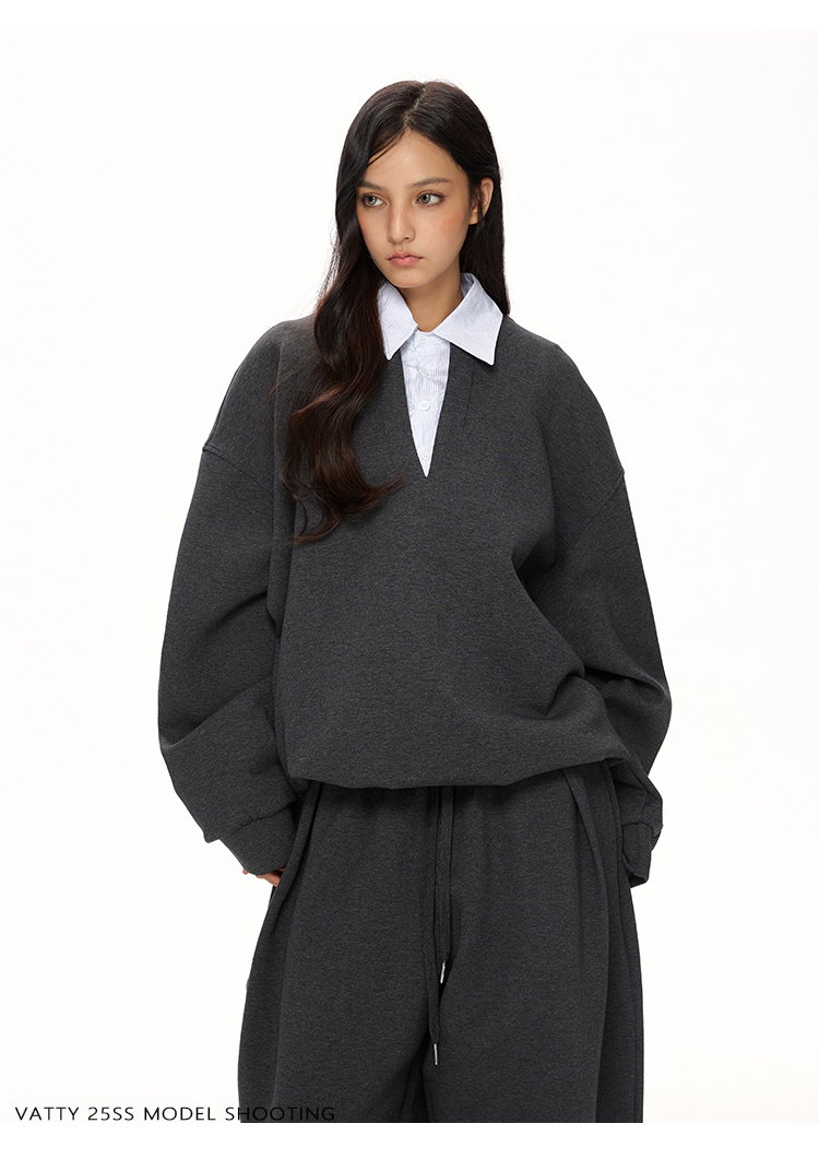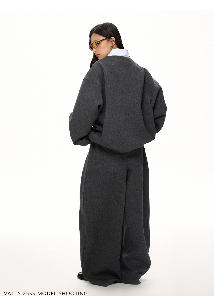 VATTY高級感休閒套裝 假兩件空氣棉老錢風廓形衛衣壓褶垂感濶腿褲