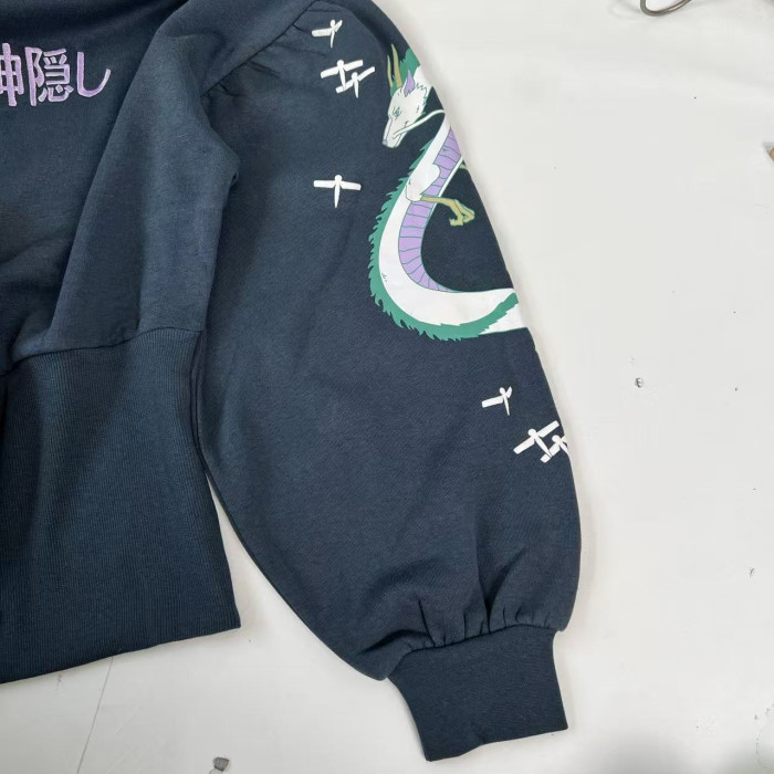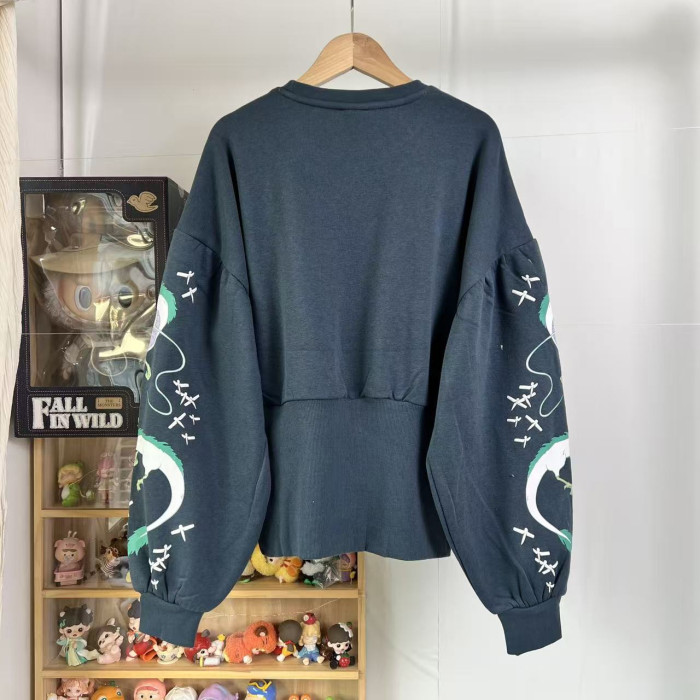 千尋的神隱重工刺綉燈籠袖抓絨高克重男女春秋款寬松休閒百搭外衣