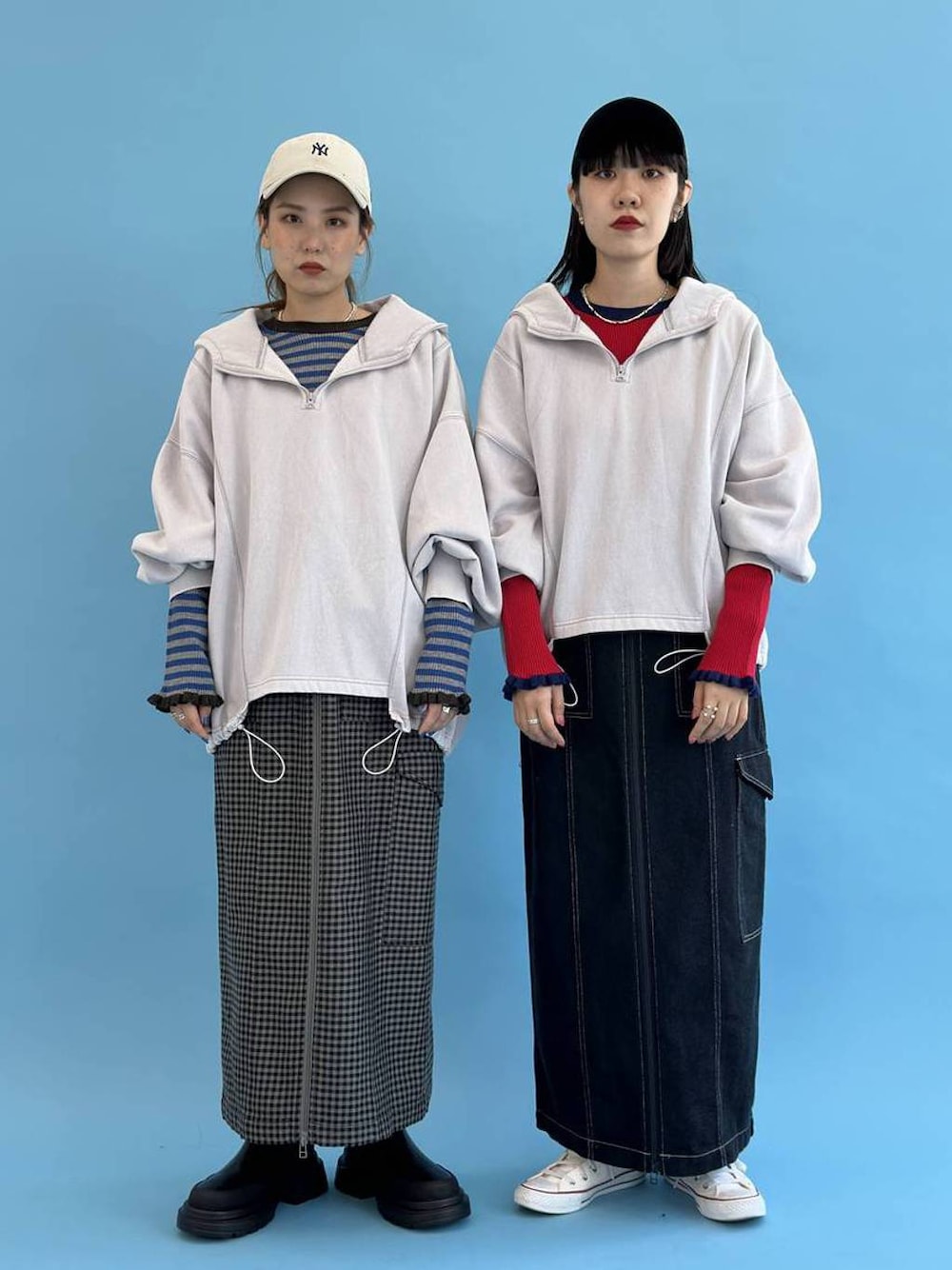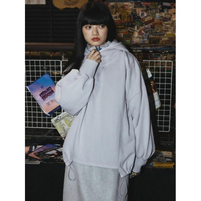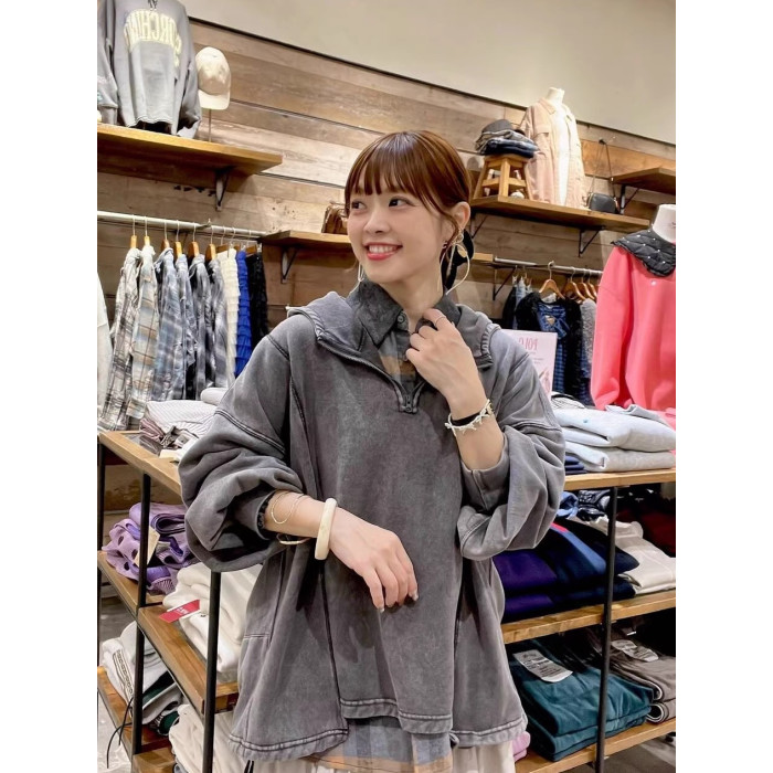 日系早秋niko and半拉鍊薄絨連帽水洗做舊衛衣日單百搭原宿風休閒
