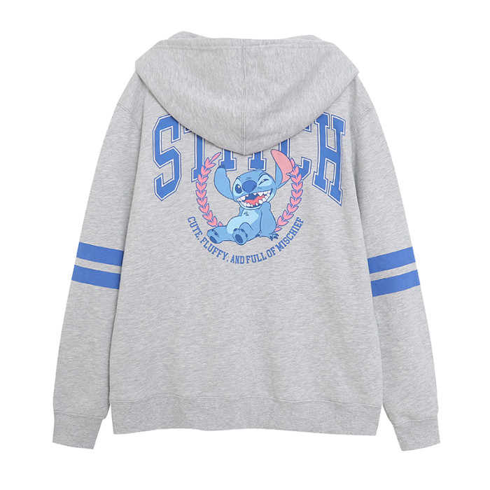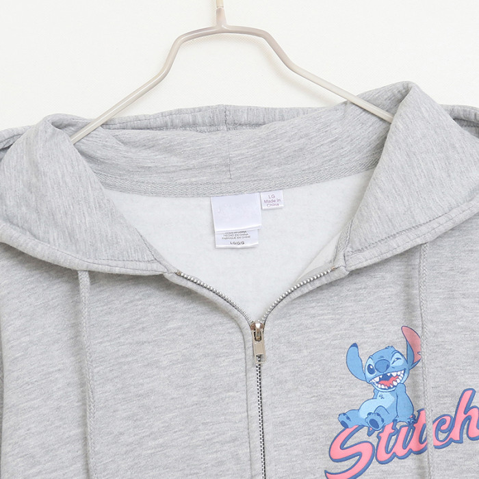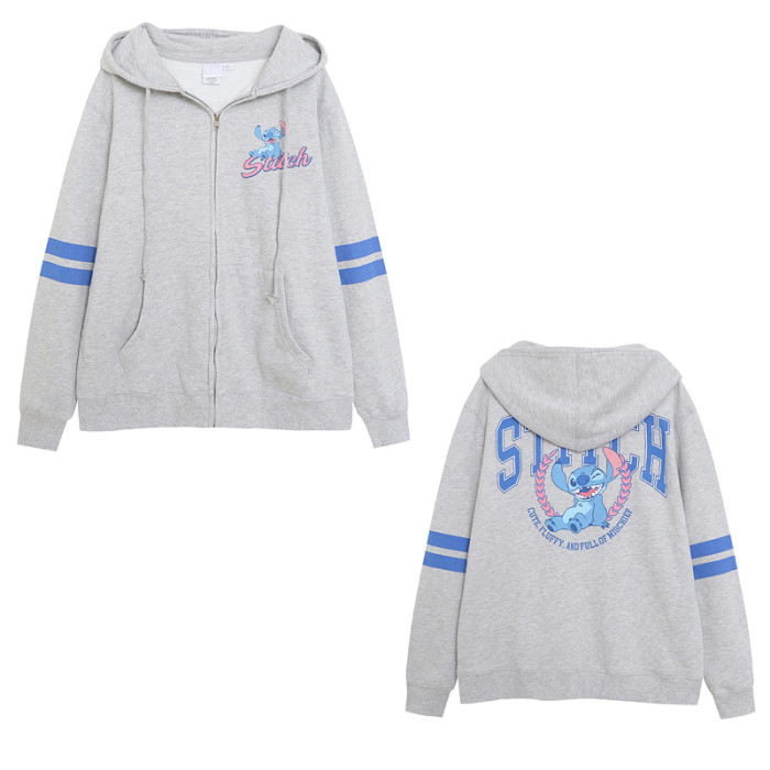 春秋季灰色卡通字母前後印花衛衣女連帽薄絨寬松拉鍊開衫外套