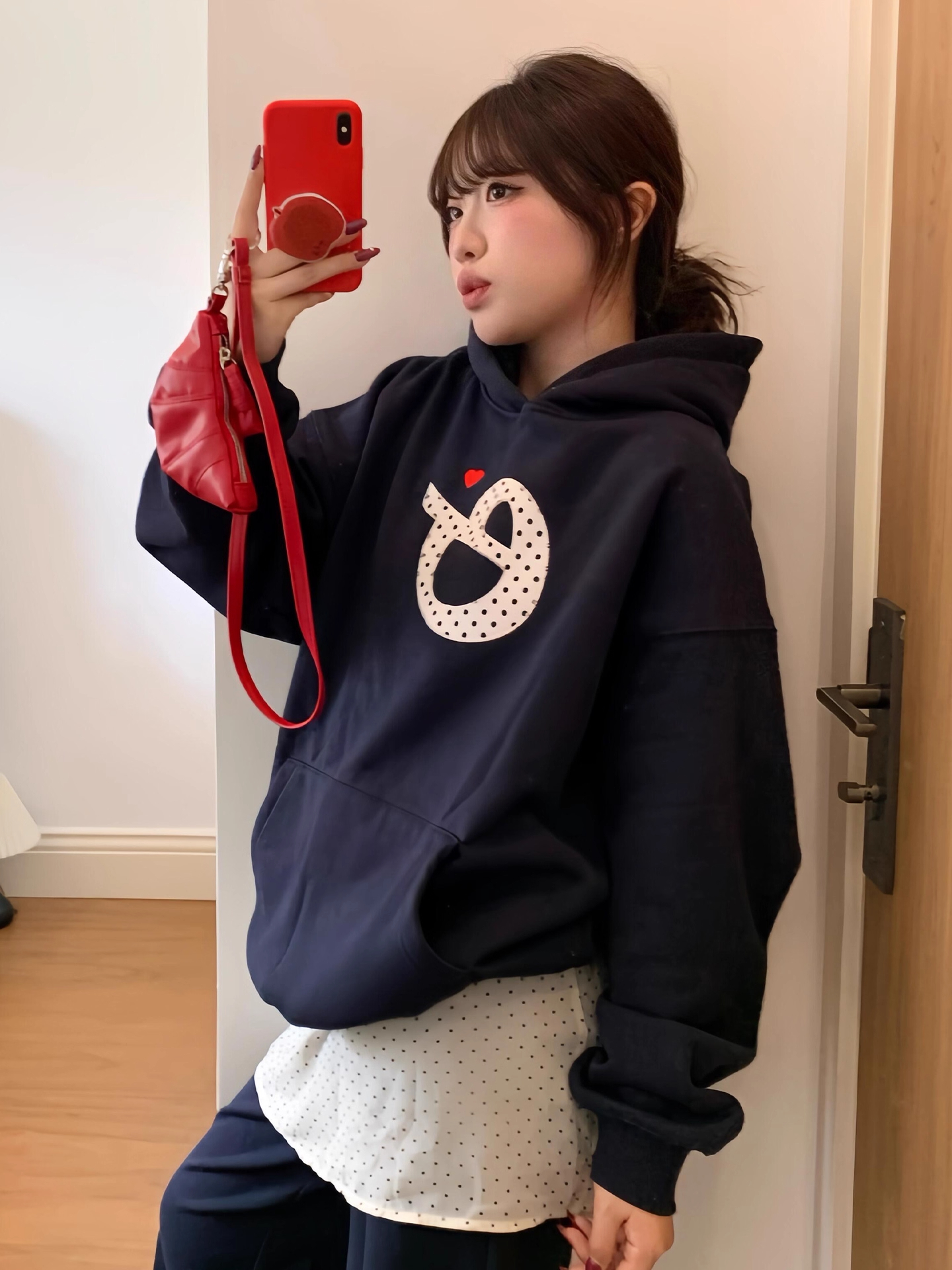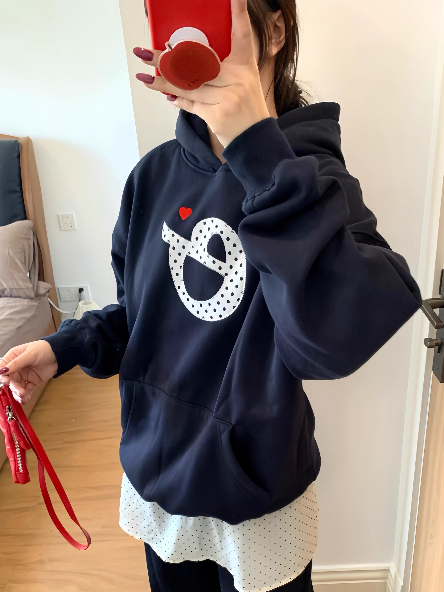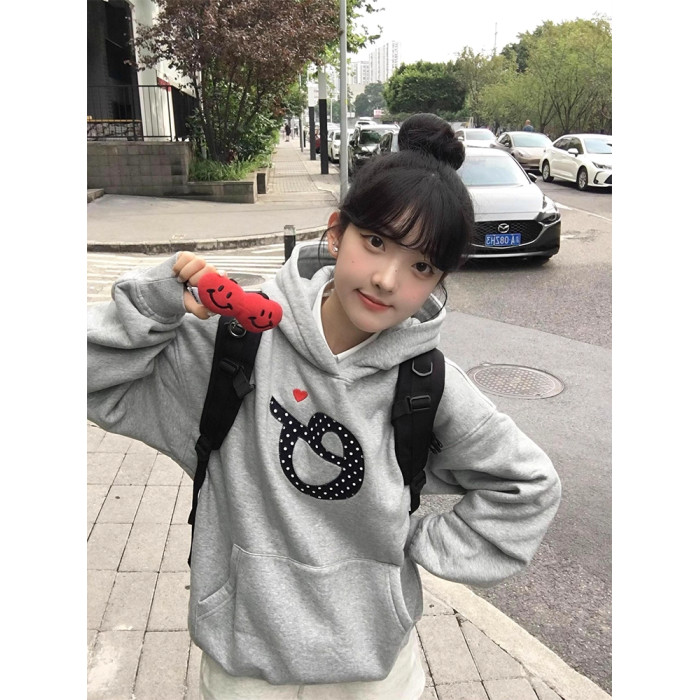 韓系學院風貼布刺綉字母連帽衛衣女春秋冬純棉2025ins風上衣寬松