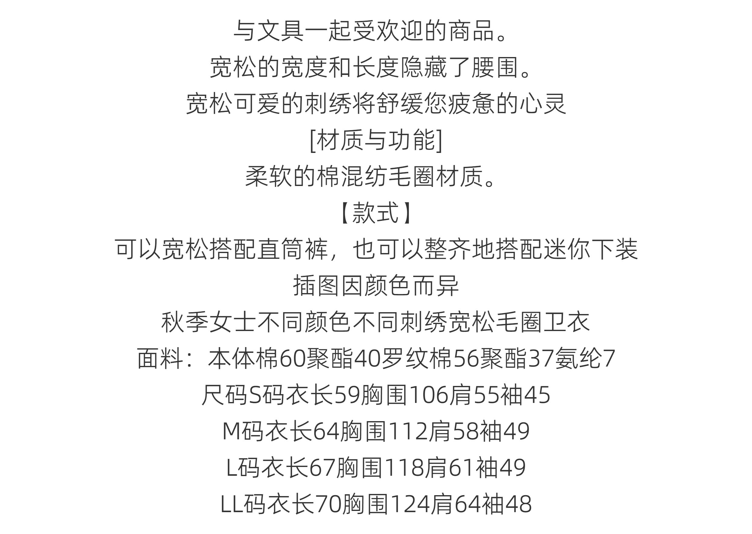 寬松可愛的刺綉秋季女士毛圈圓領毛圈衛衣合作卡通搭配日單原單