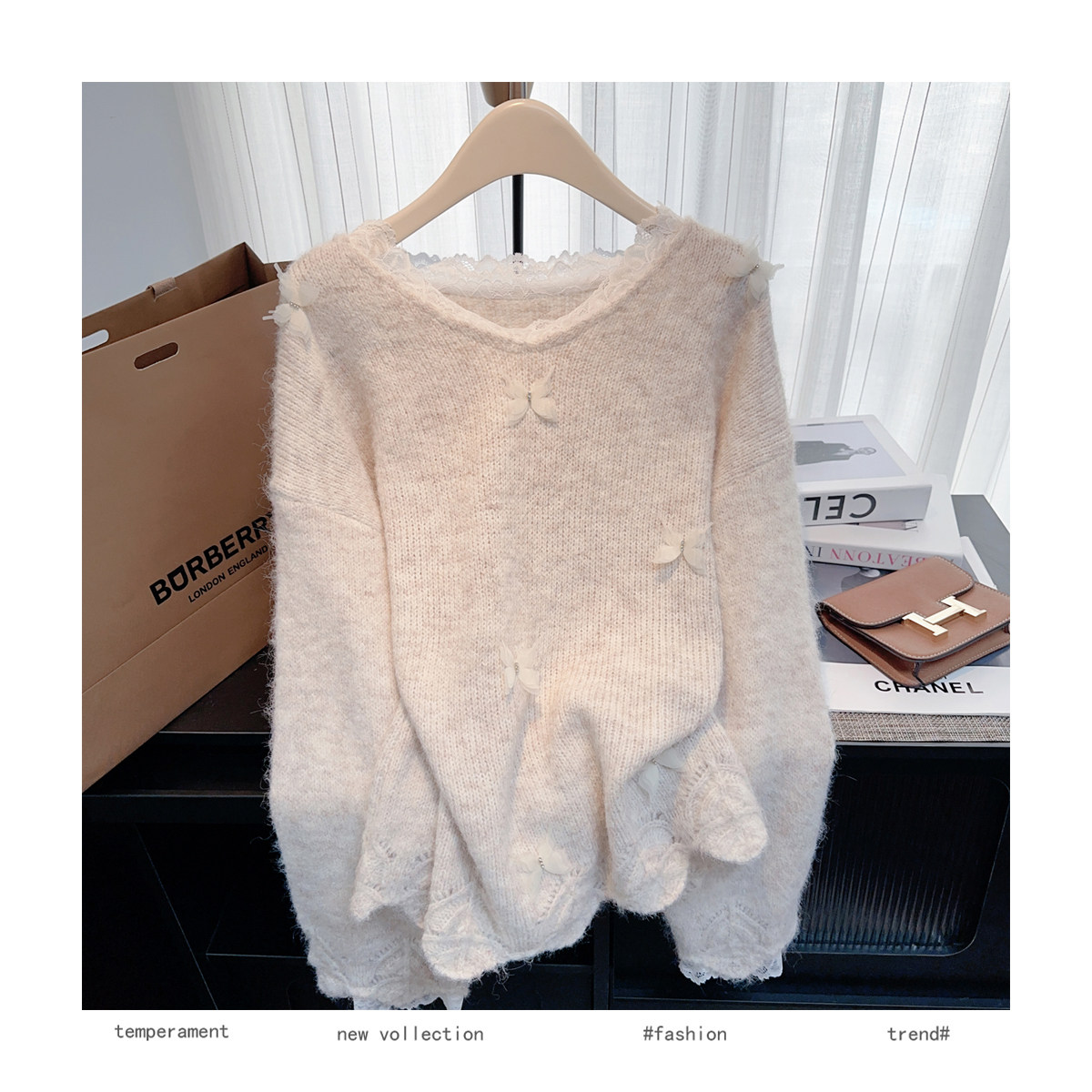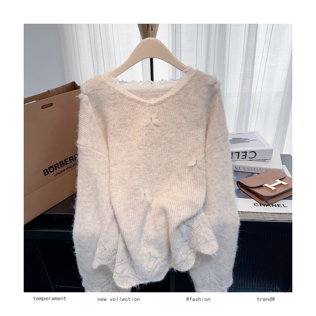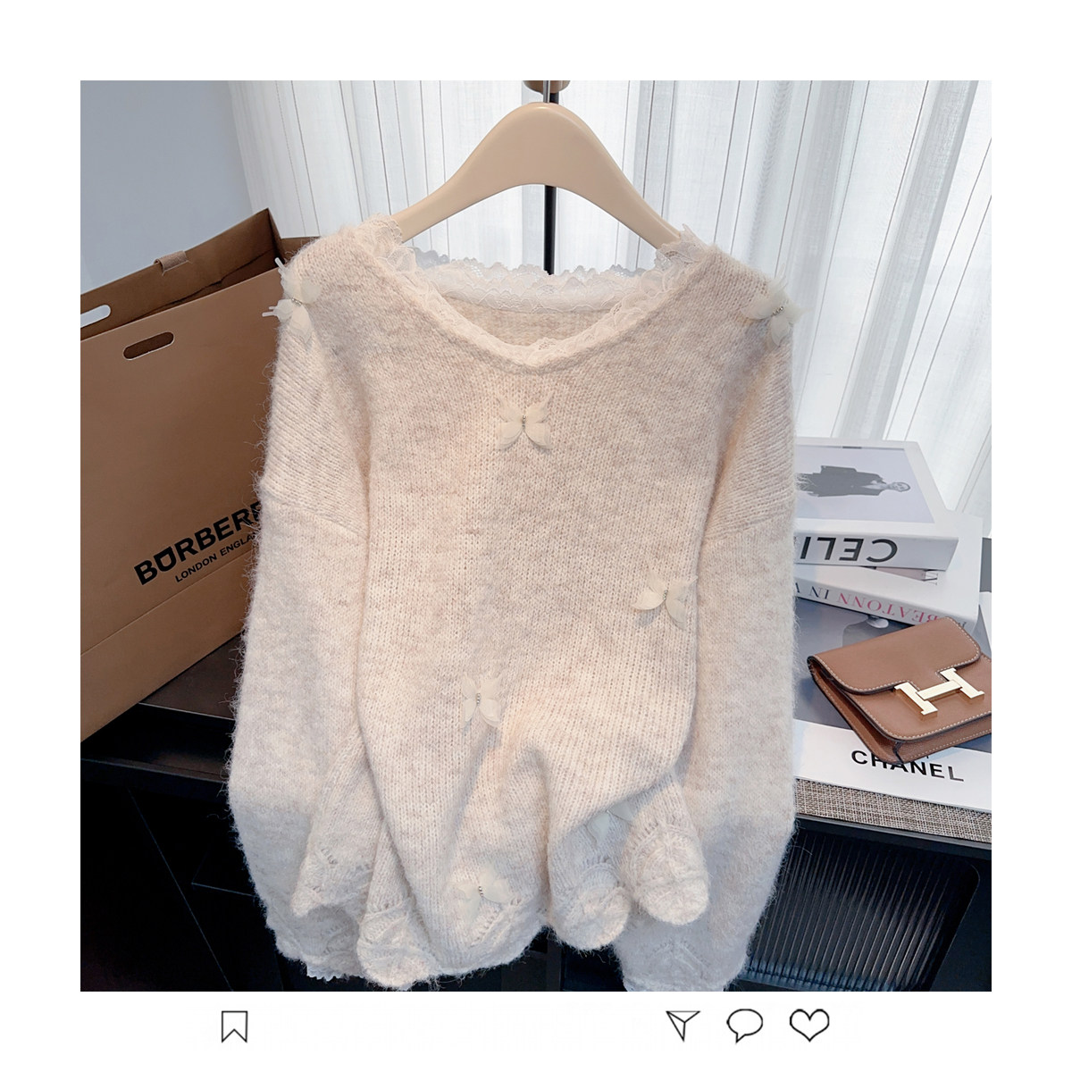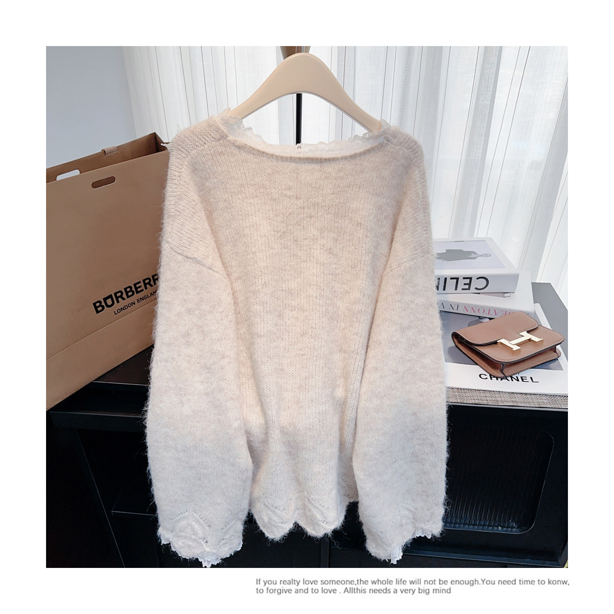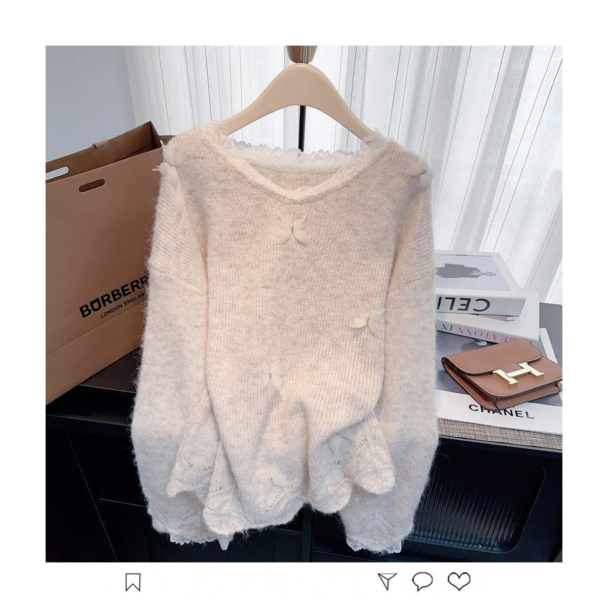 紫色蕾絲V領毛衣女秋冬內搭多巴胺打底衫可外穿純欲慵嬾大朗上衣