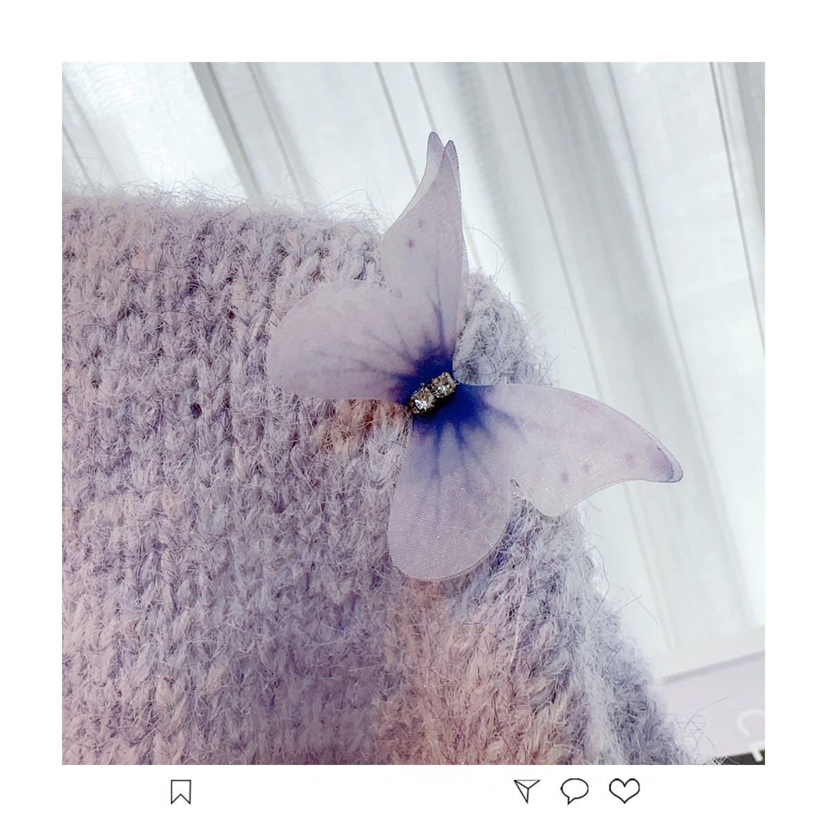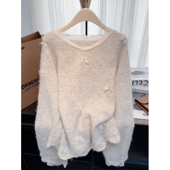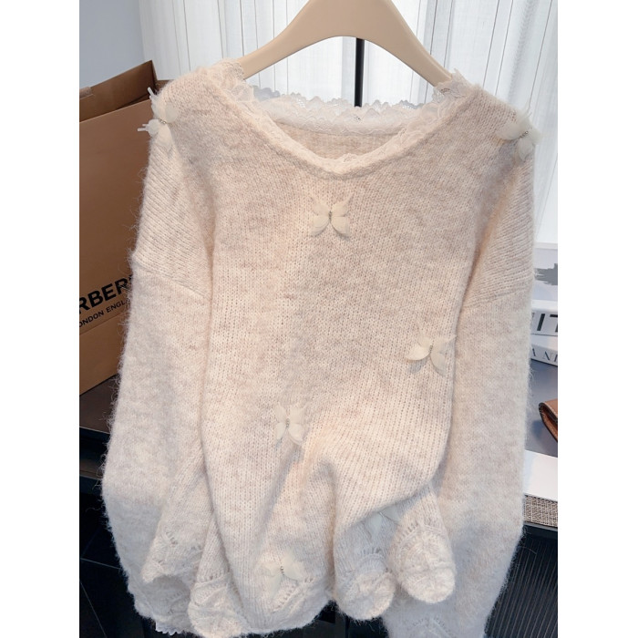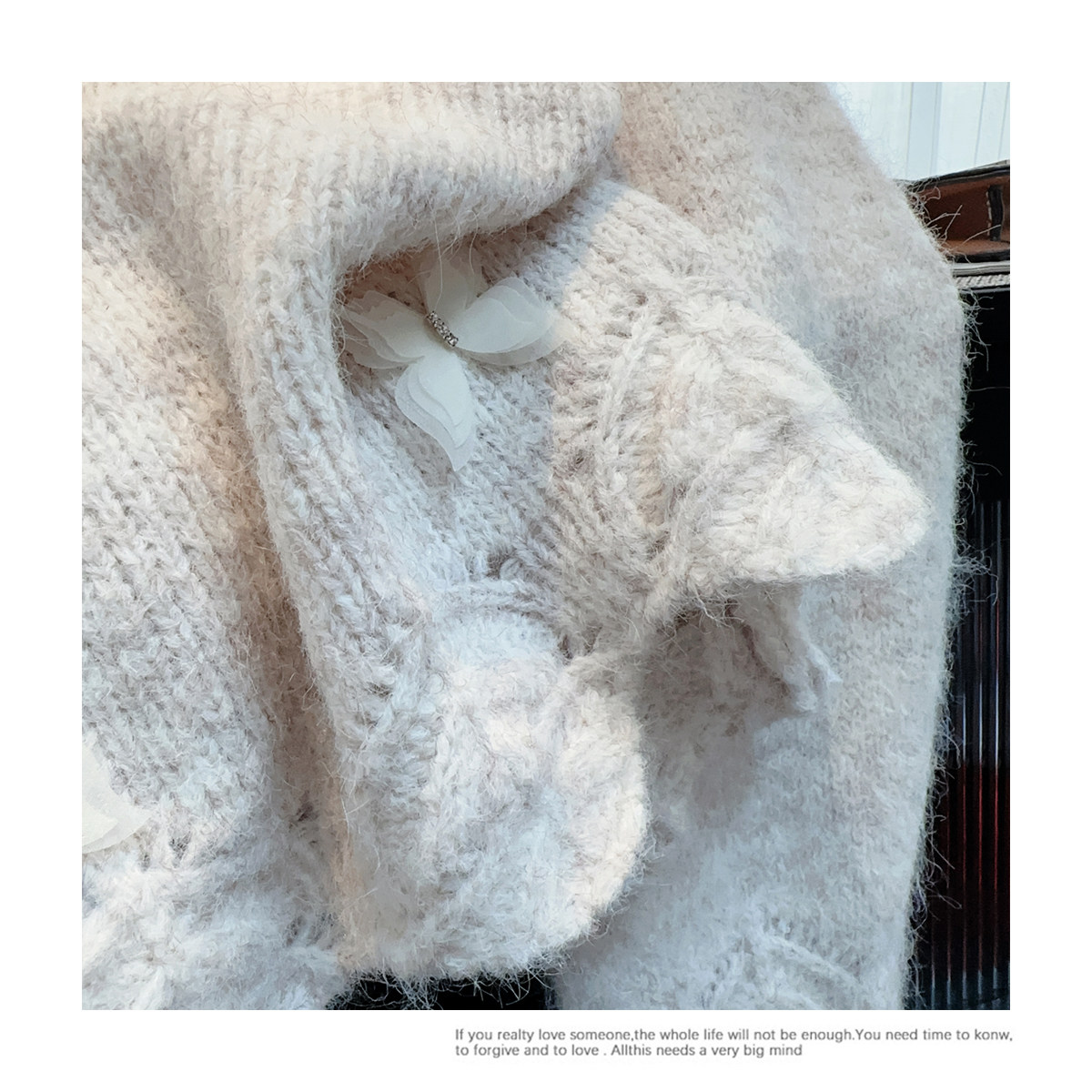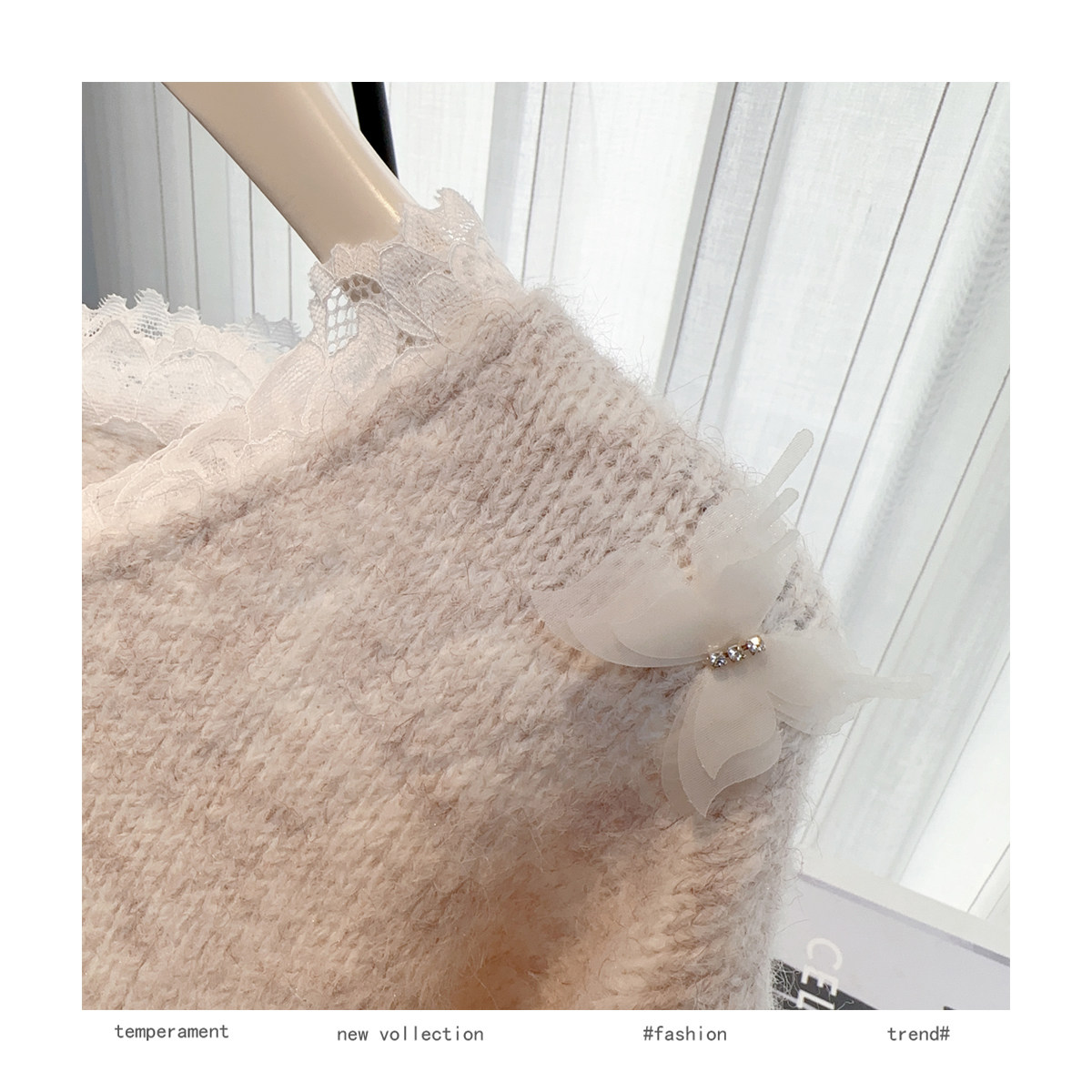 紫色蕾絲V領毛衣女秋冬內搭多巴胺打底衫可外穿純欲慵嬾大朗上衣