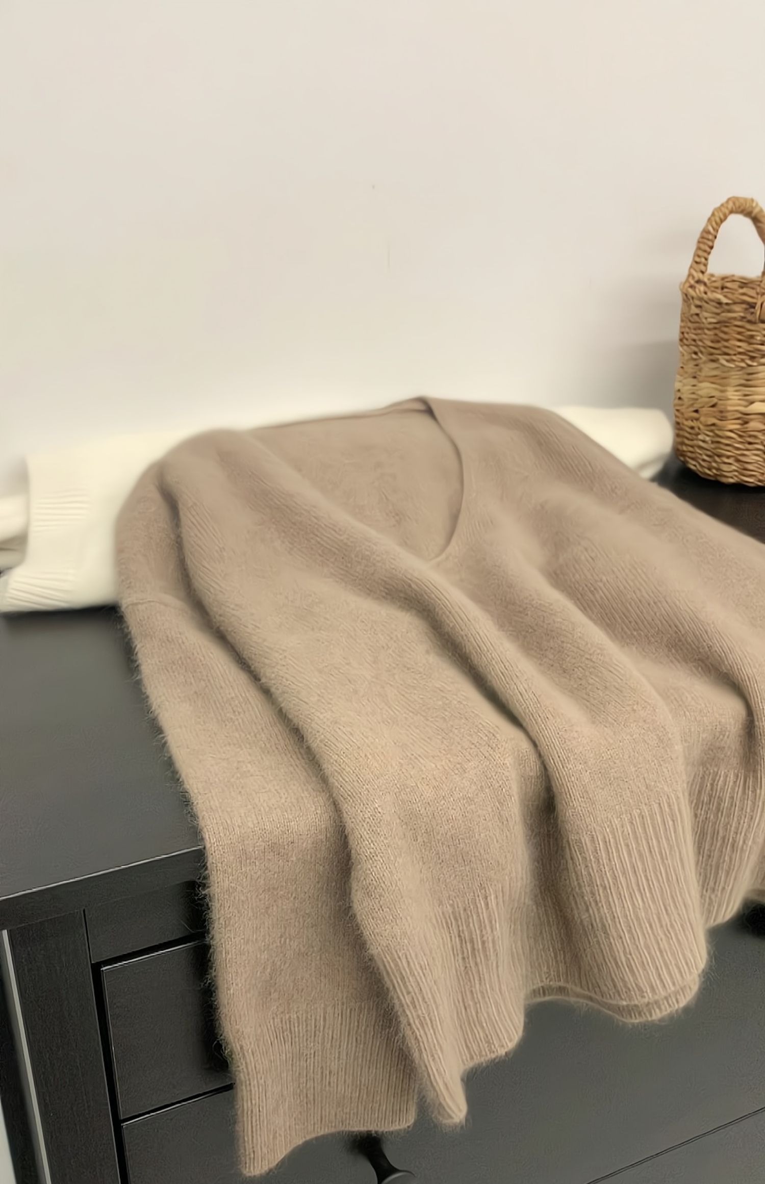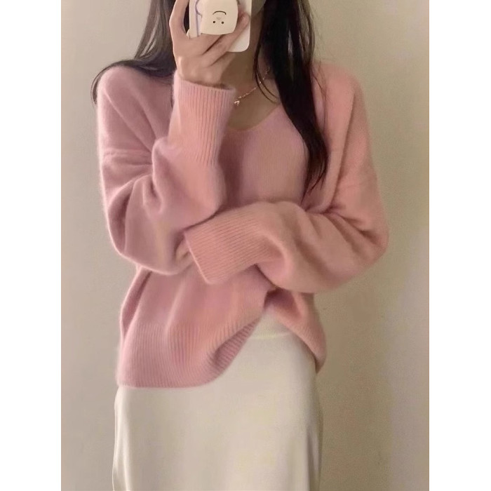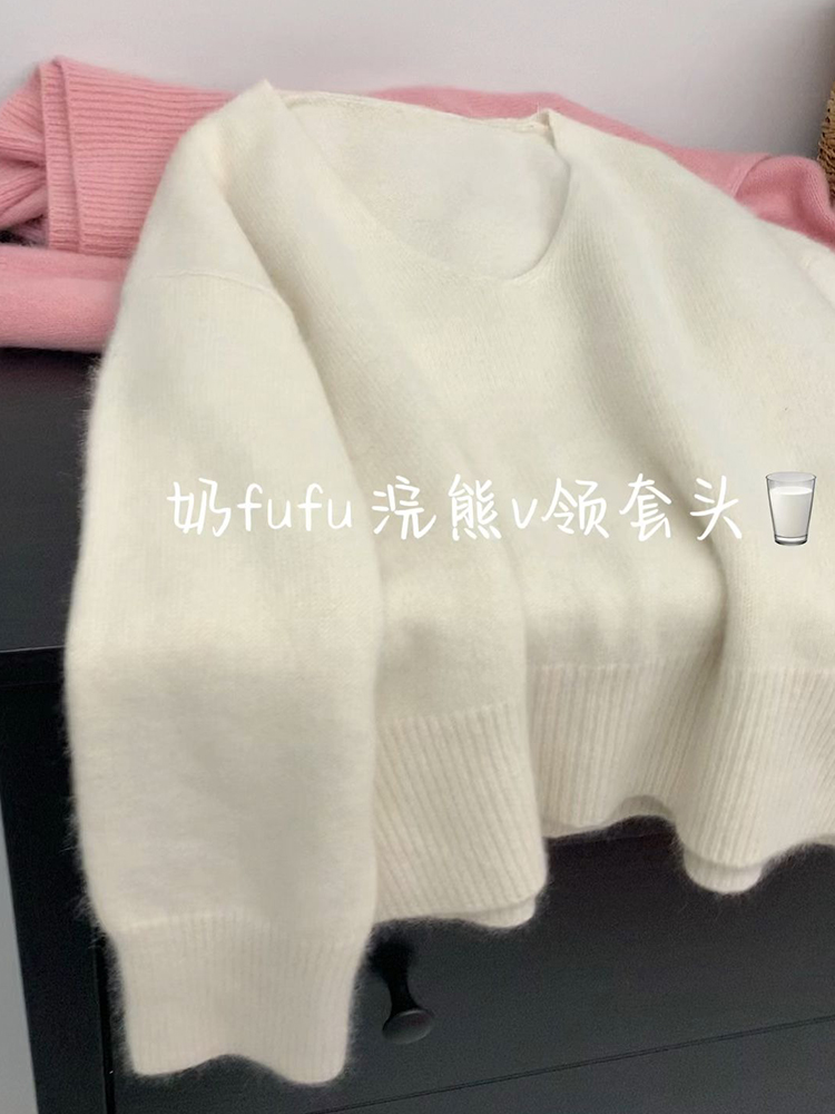韓系軟糯V領套頭毛衣女2025秋季新款慵懶寬松顯瘦針織衫內搭上衣