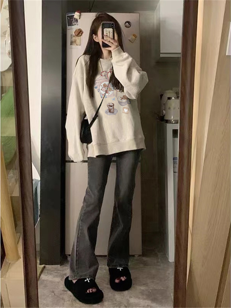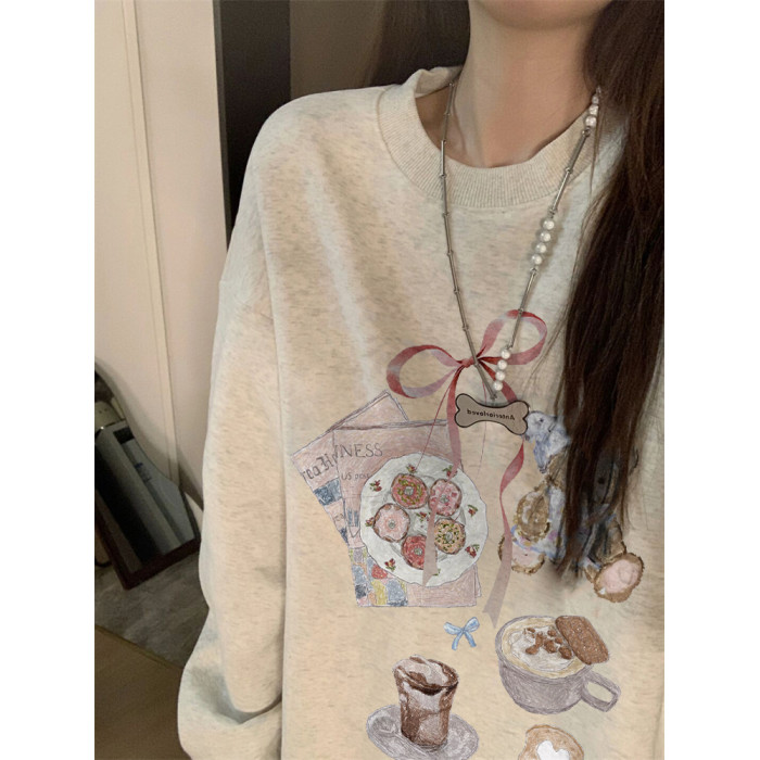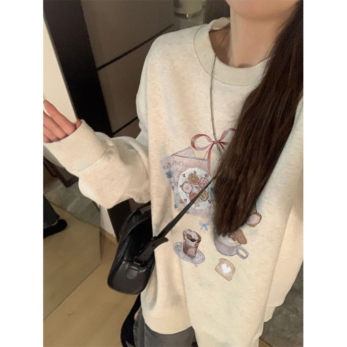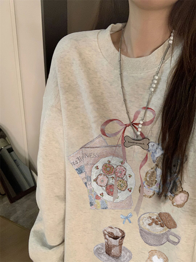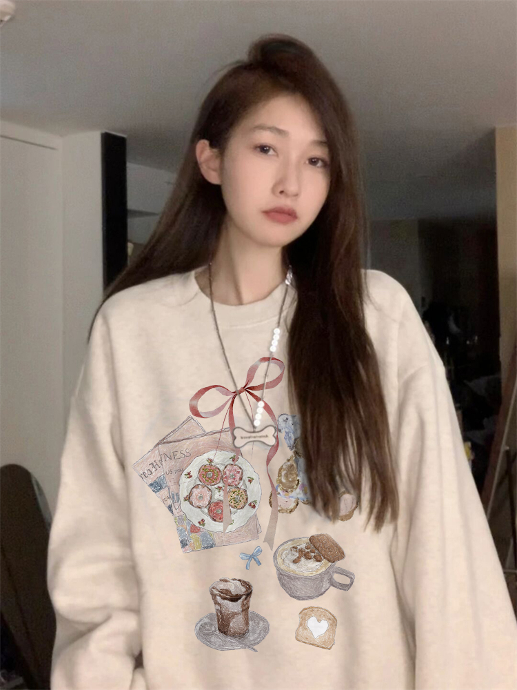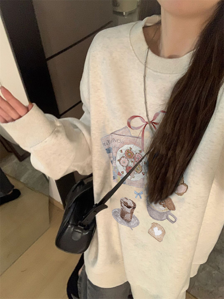 純棉美式復古無帽圓領衛衣女2025新款早秋薄款設計感寬松慵懶上衣