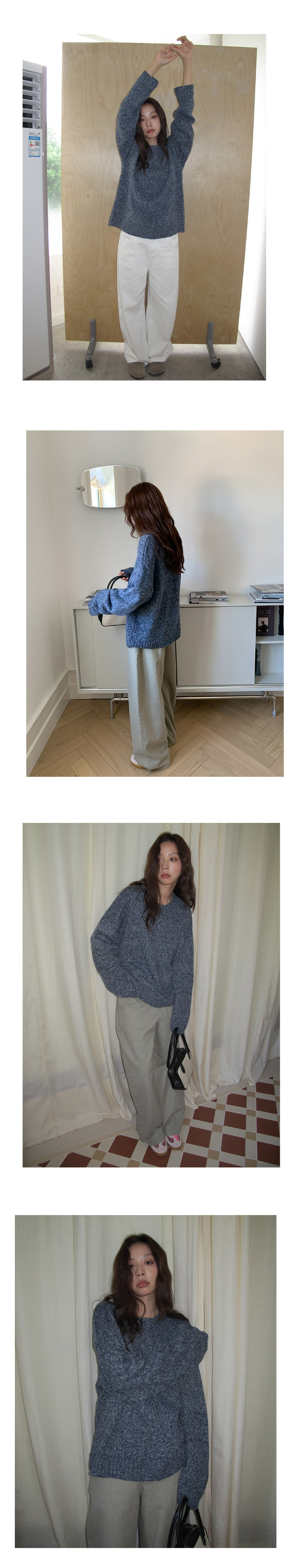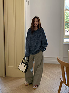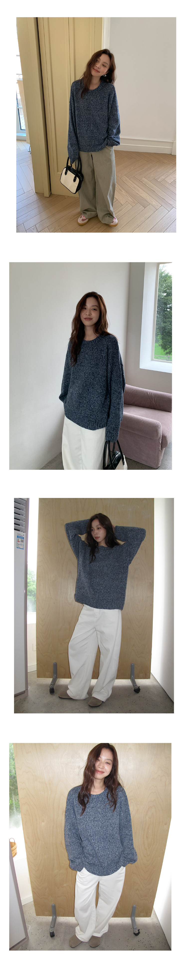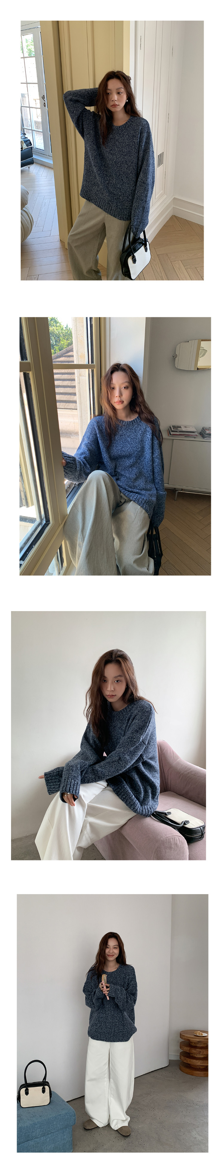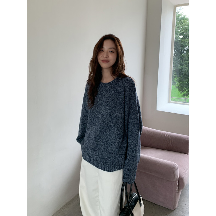 SIXI四喜家 北歐膠片*復古雜色圓領毛衣女秋季寬鬆慵嬾針織上衣
