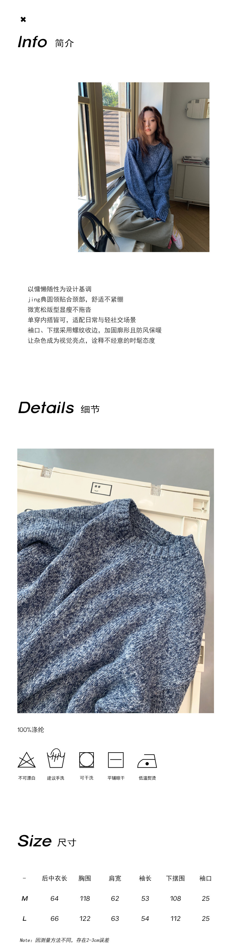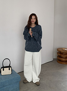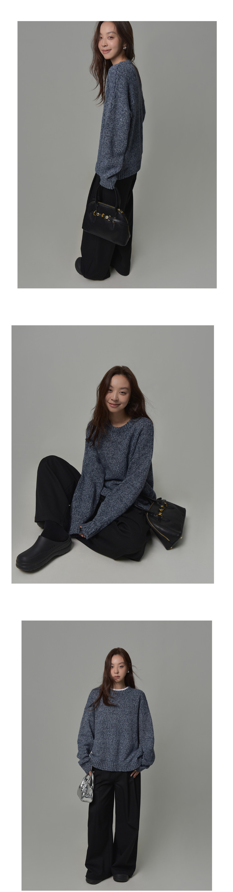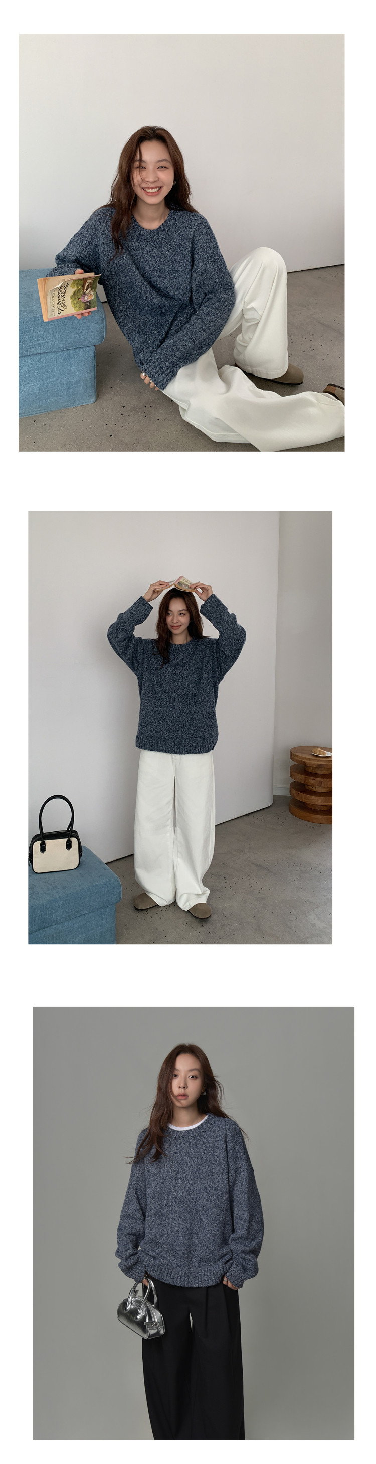 SIXI四喜家 北歐膠片*復古雜色圓領毛衣女秋季寬鬆慵嬾針織上衣