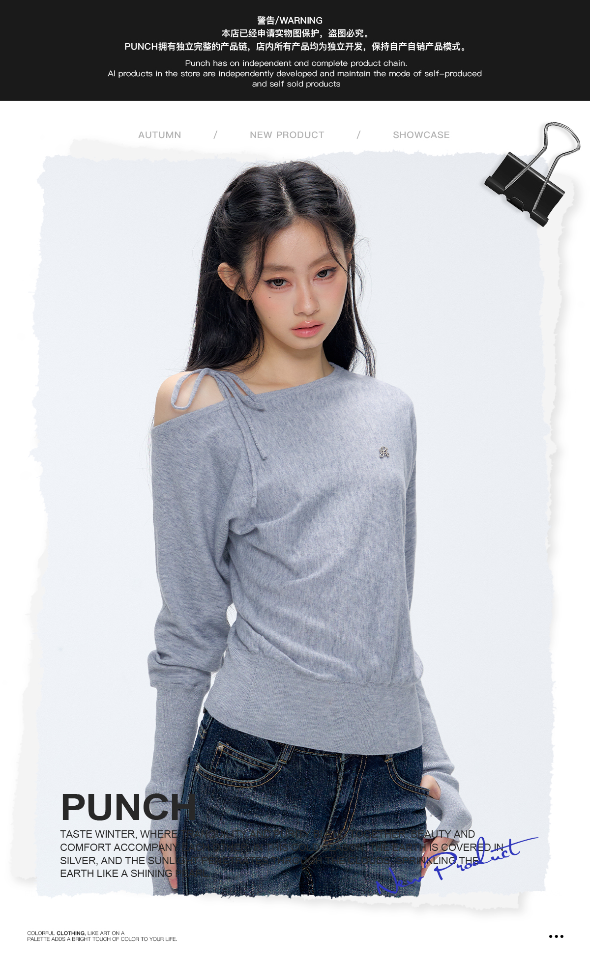 PUNCH 25AW秋韓系基礎顯瘦露肩毛衣