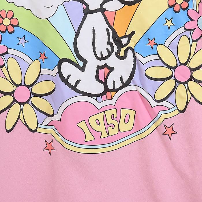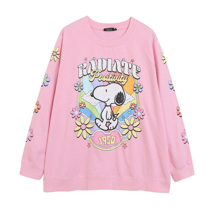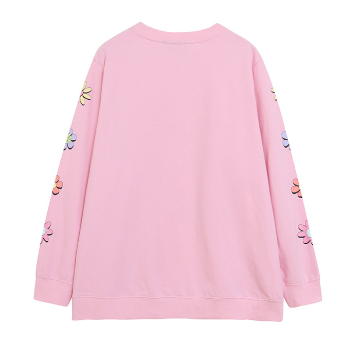 可愛甜美青春俏皮圓領毛圈長袖衛衣大碼卡通印花中長款上衣