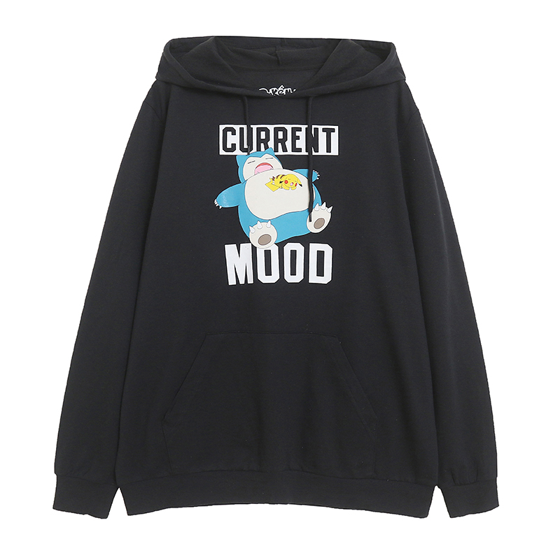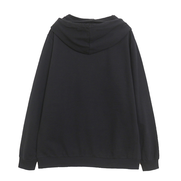 情侶款 春秋季卡通字母印花連帽衛衣女寬松大碼薄絨口袋外套