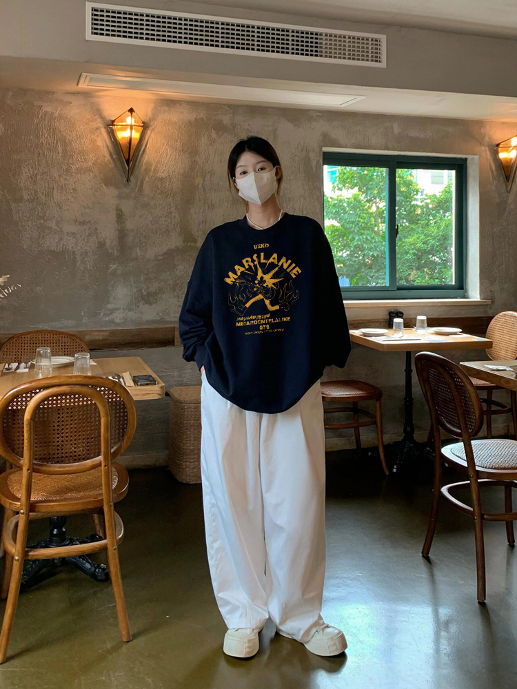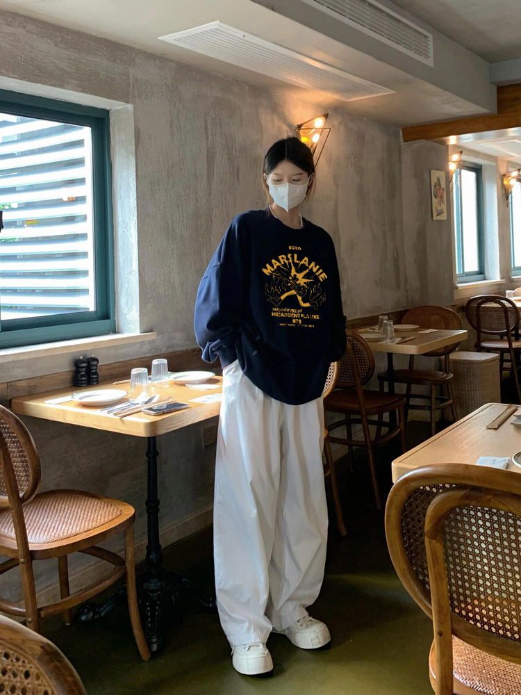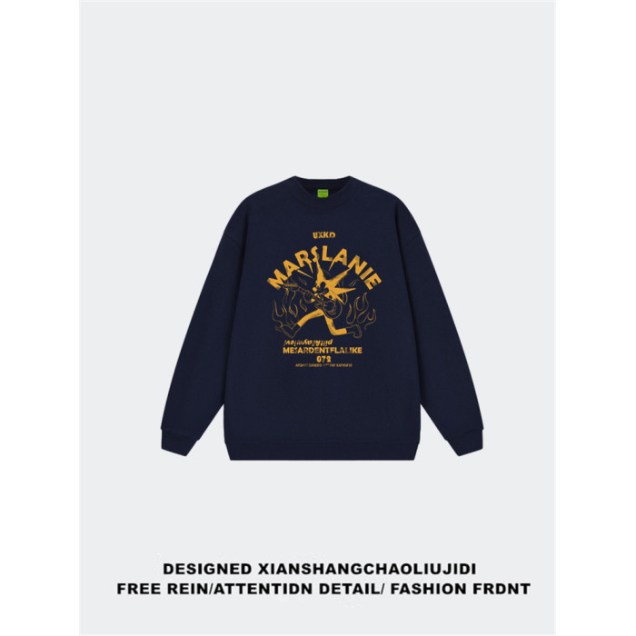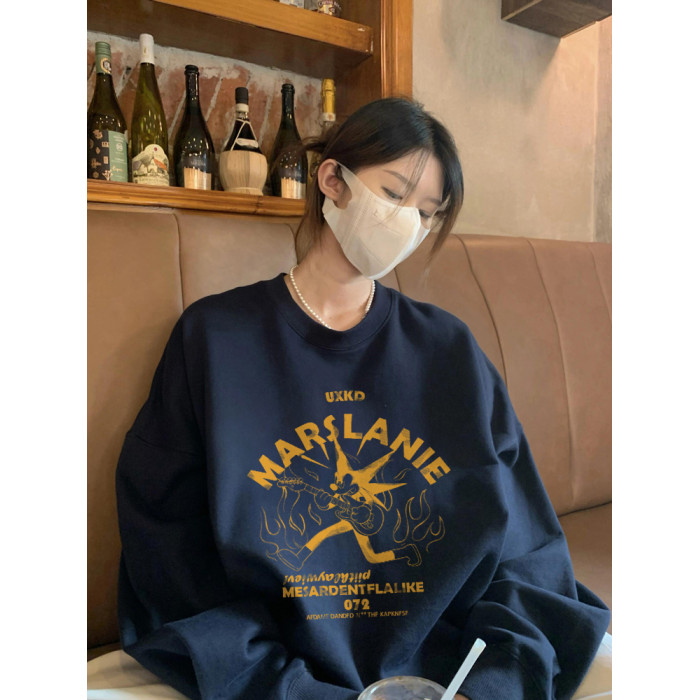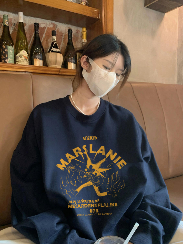 純棉高街美式復古套頭圓領衛衣女2025新款寬松潮牌慵懶風長袖上衣
