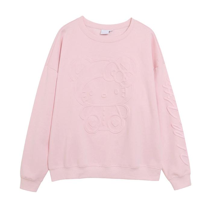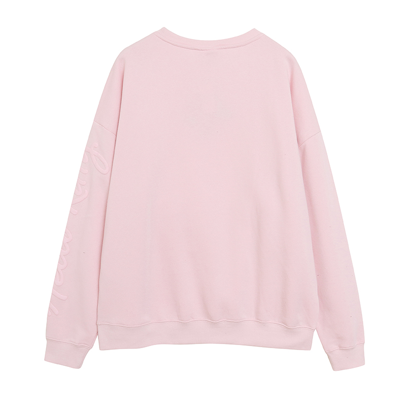3D立體燙印~粉色卡通動漫圓領衛衣女寬松大碼減齡休閒上衣