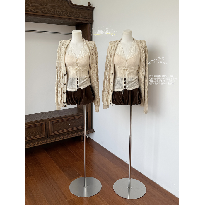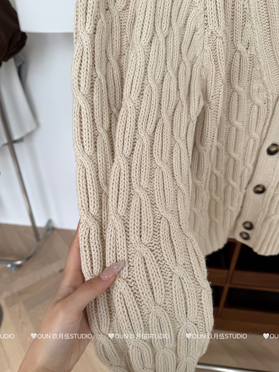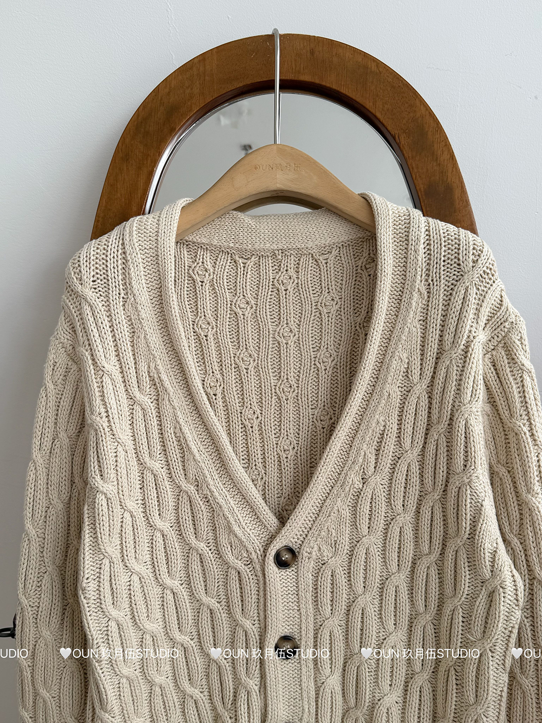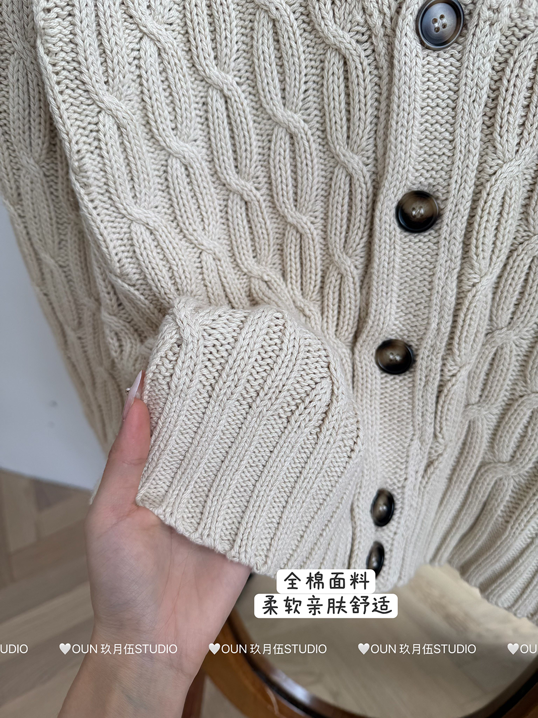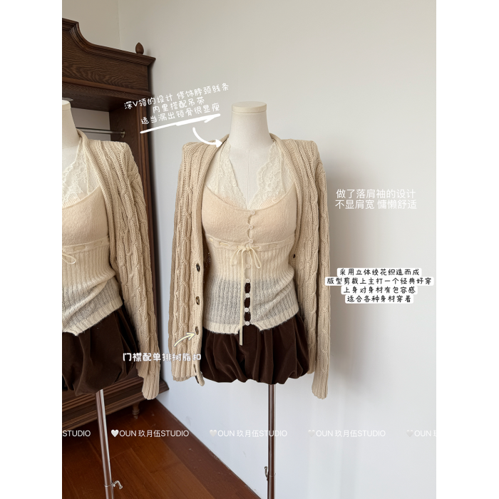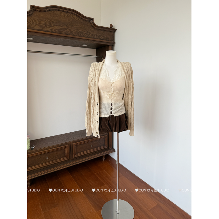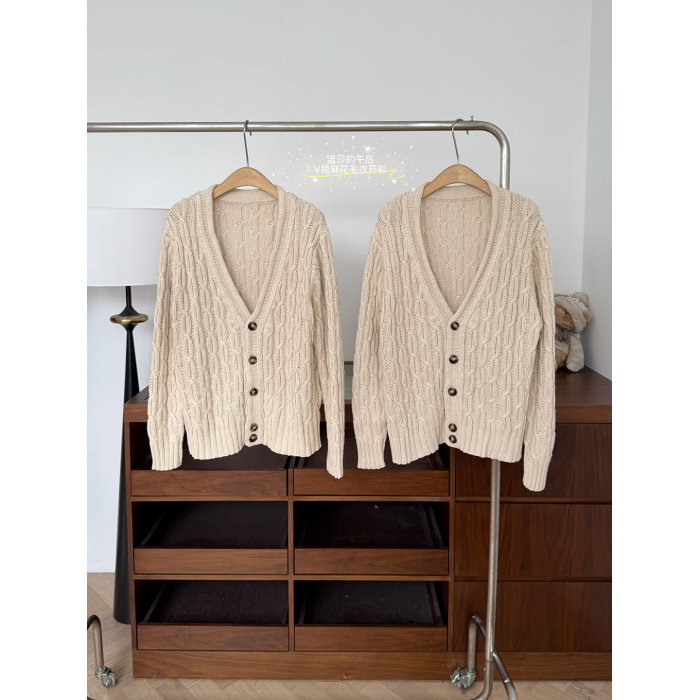 玖月伍 溫莎的午後 100%棉V領麻花毛衣女秋季高級感韓系開衫外套