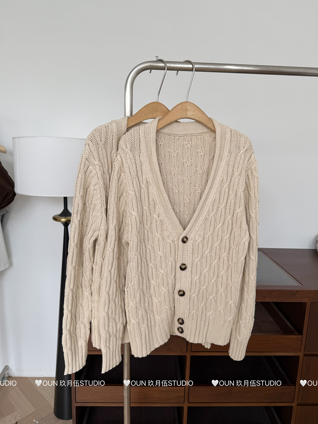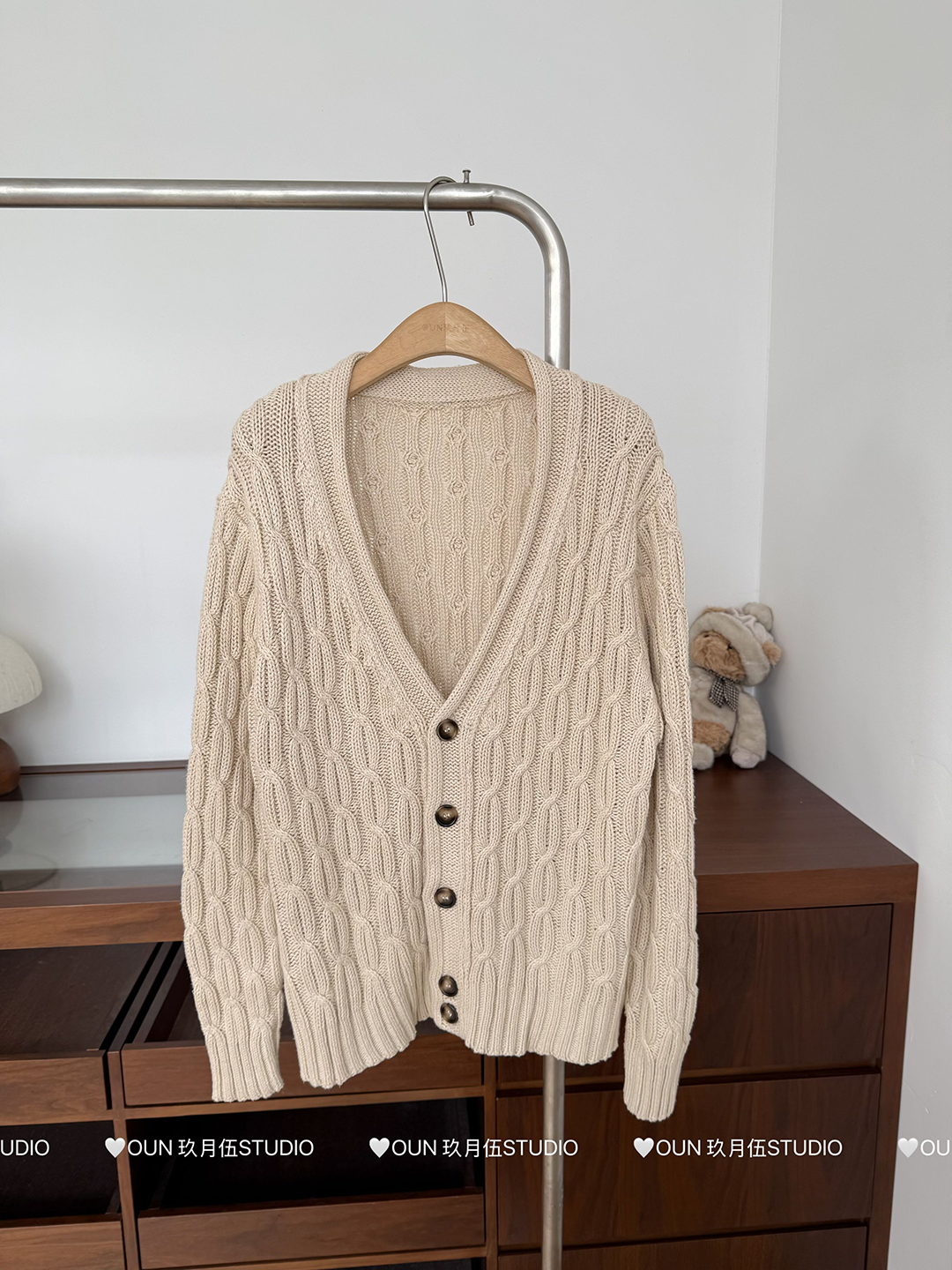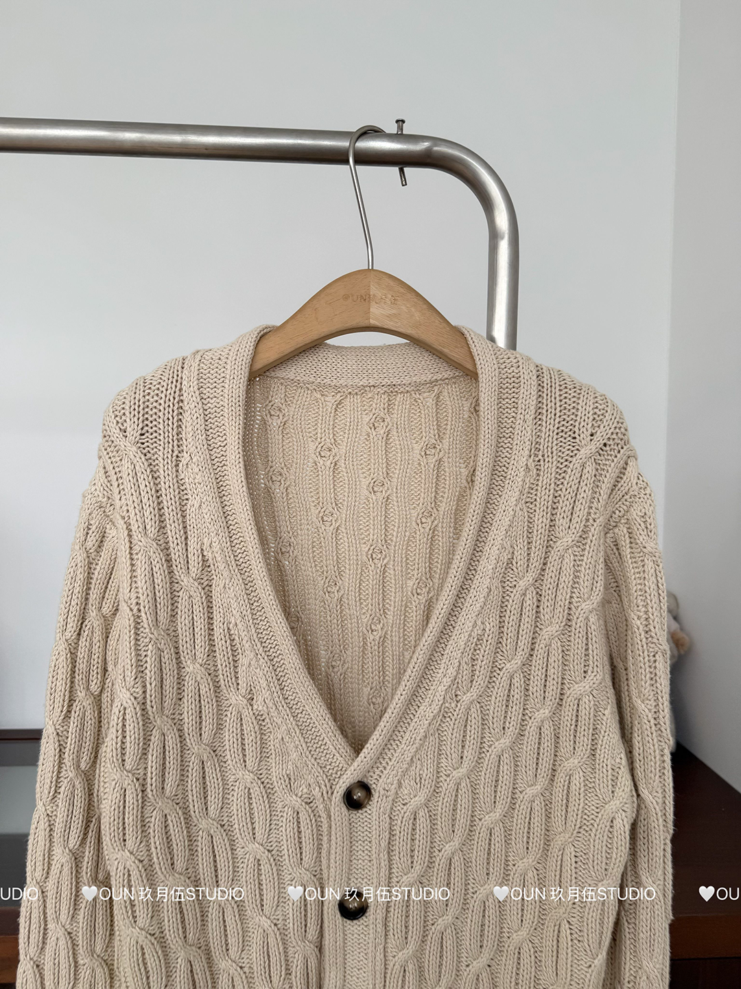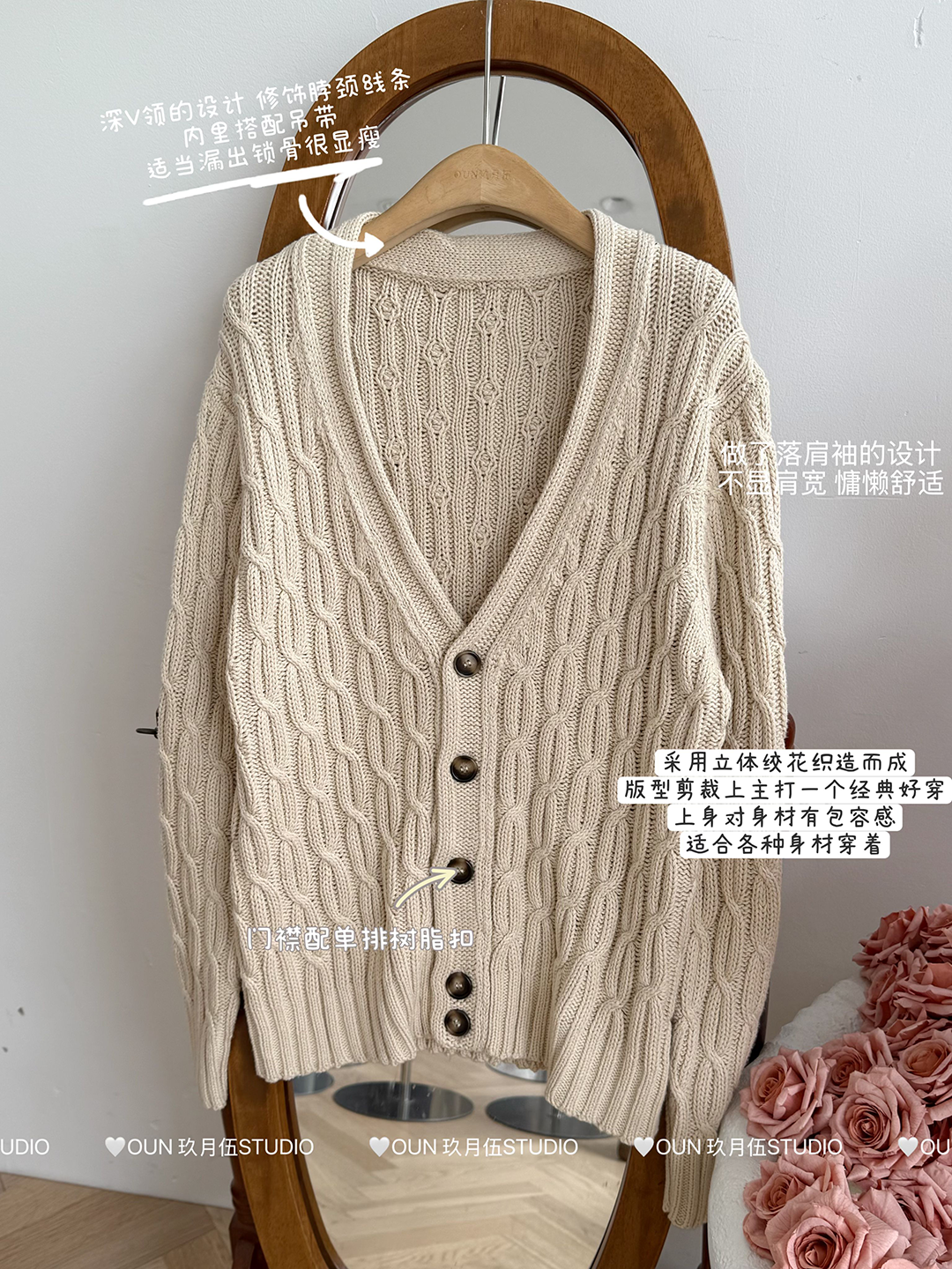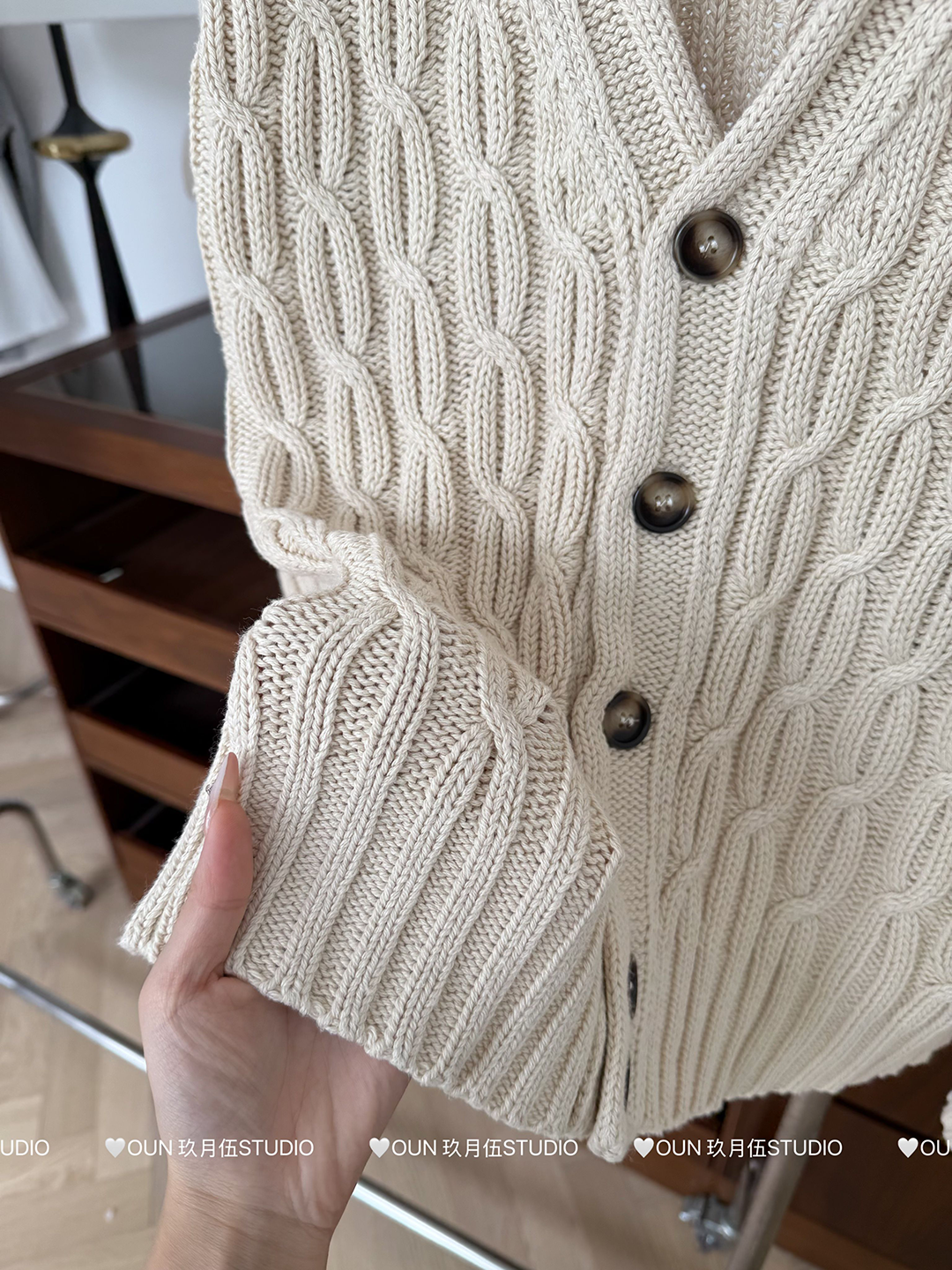 玖月伍 溫莎的午後 100%棉V領麻花毛衣女秋季高級感韓系開衫外套