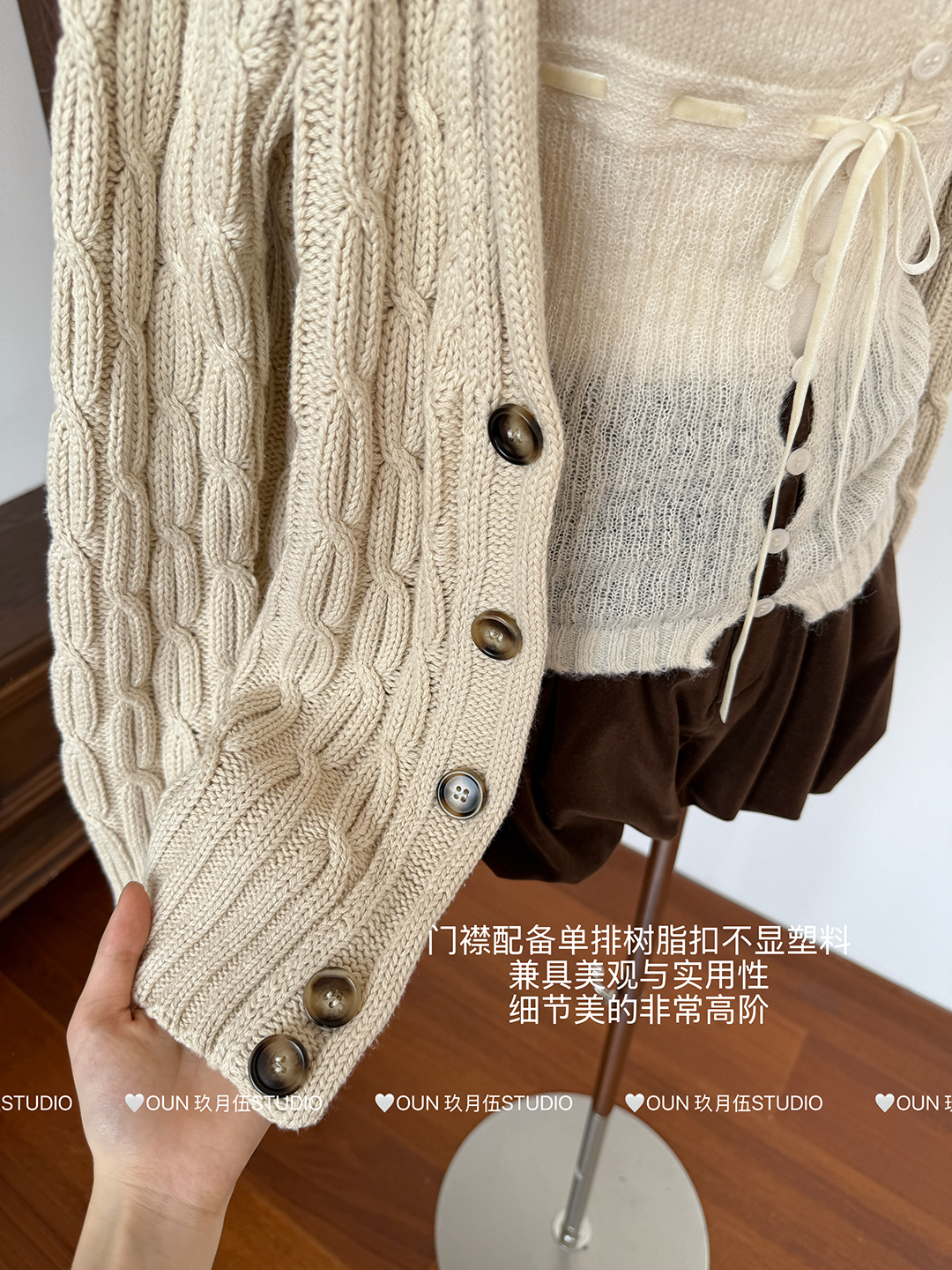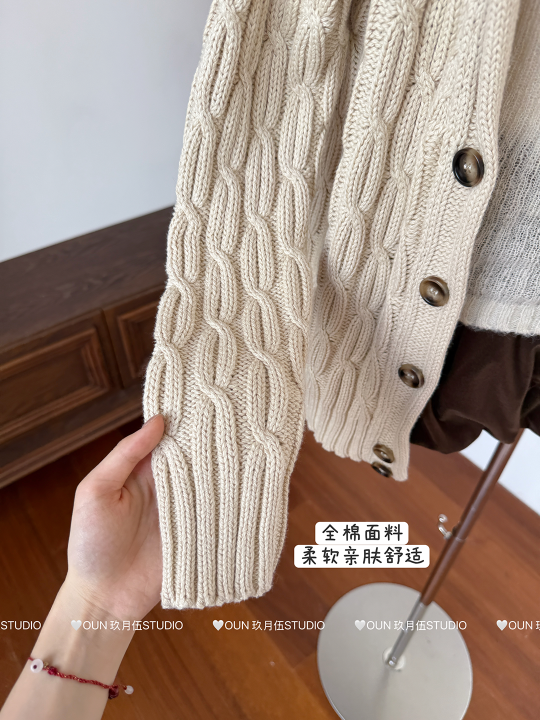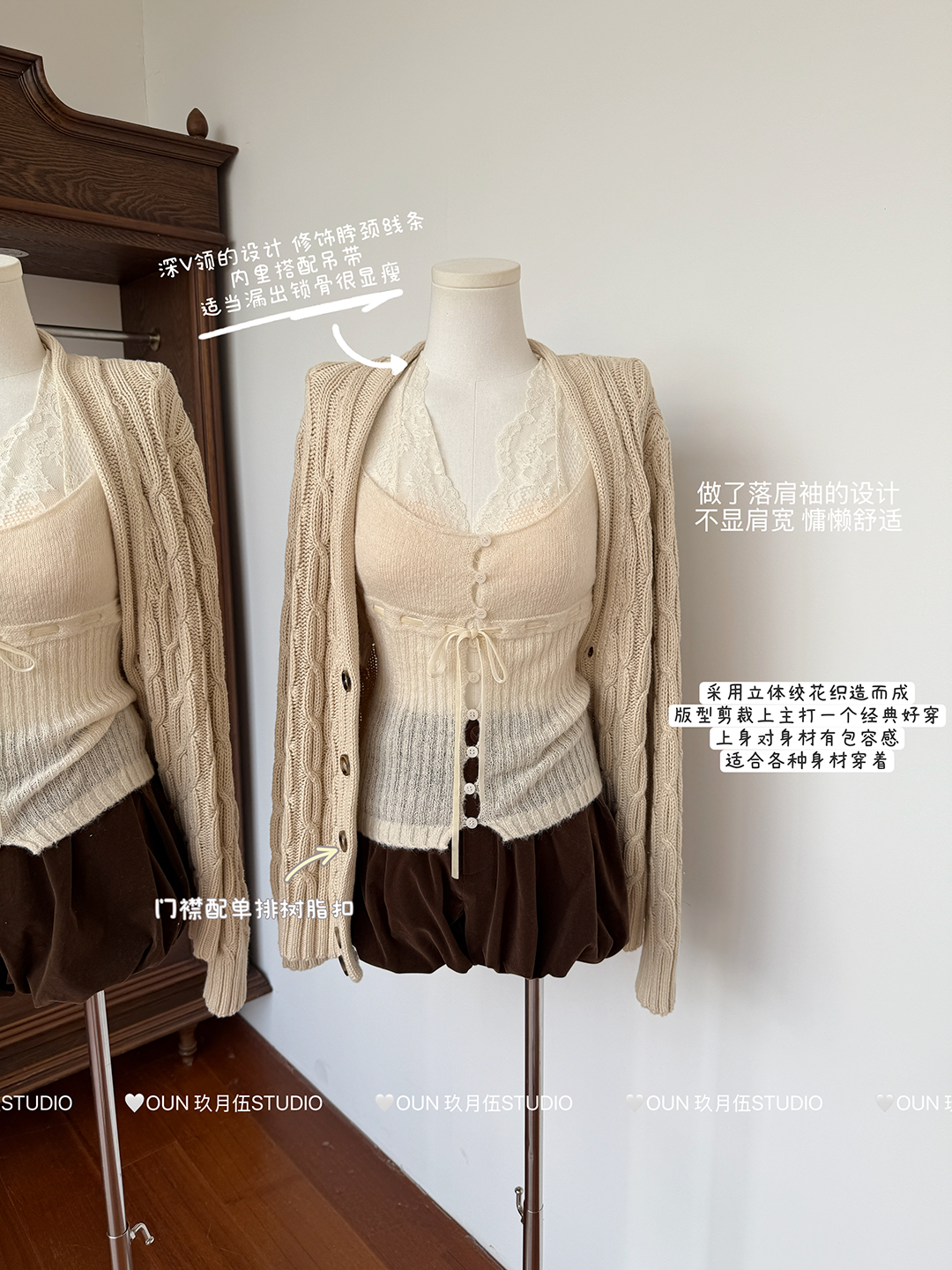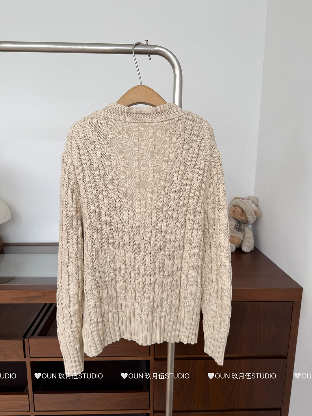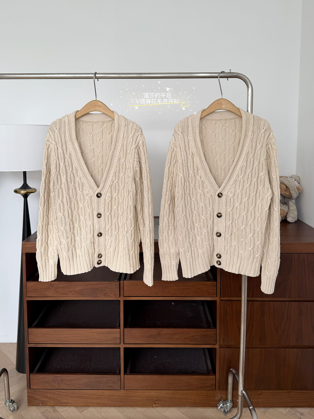 玖月伍 溫莎的午後 100%棉V領麻花毛衣女秋季高級感韓系開衫外套