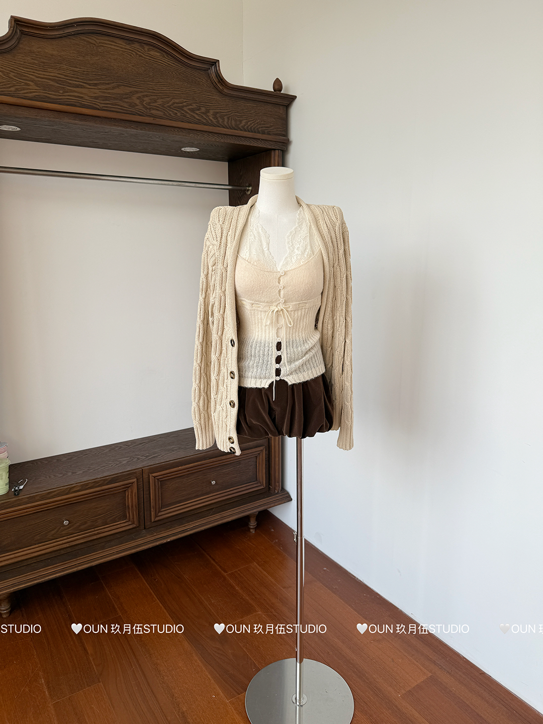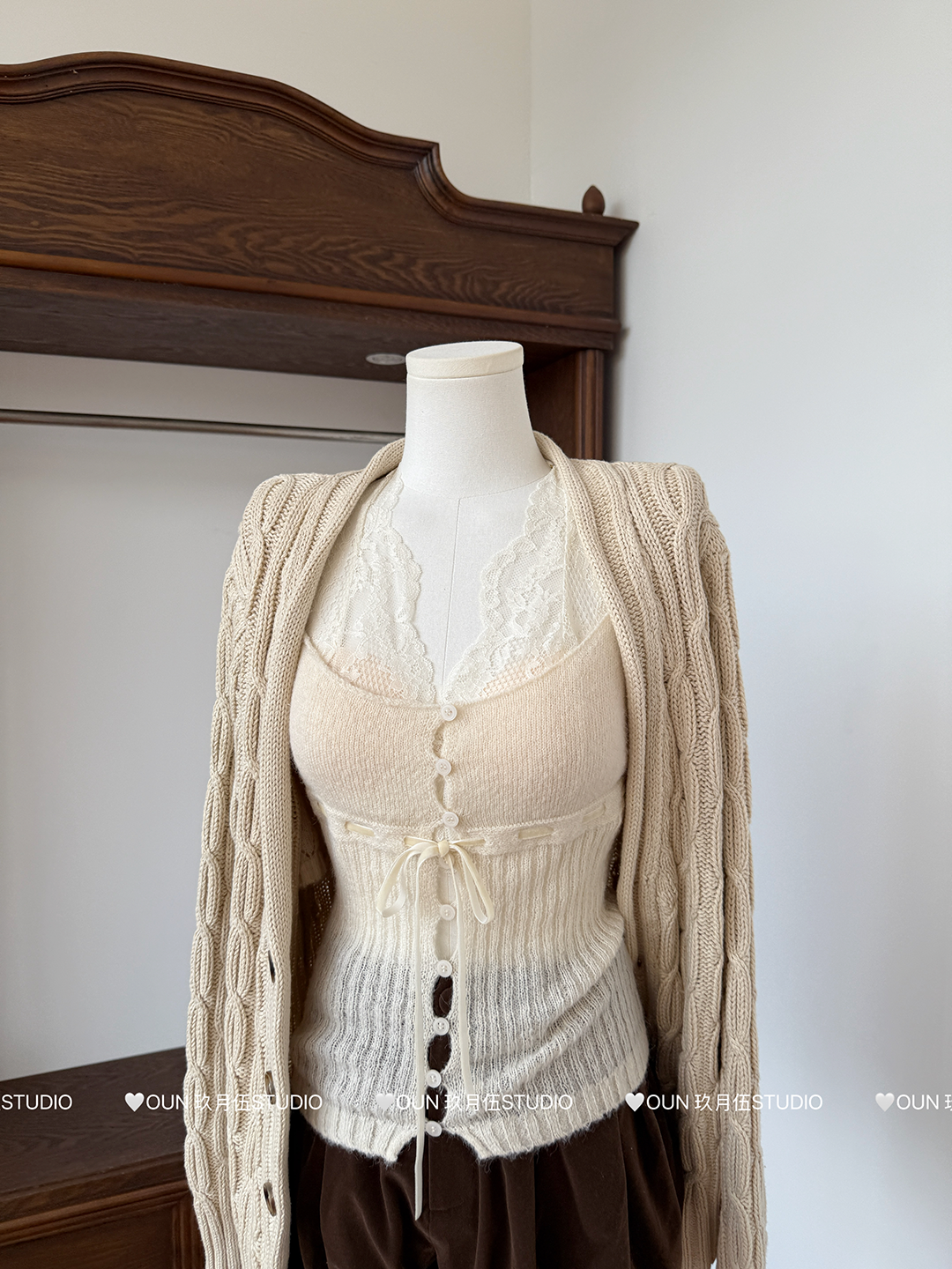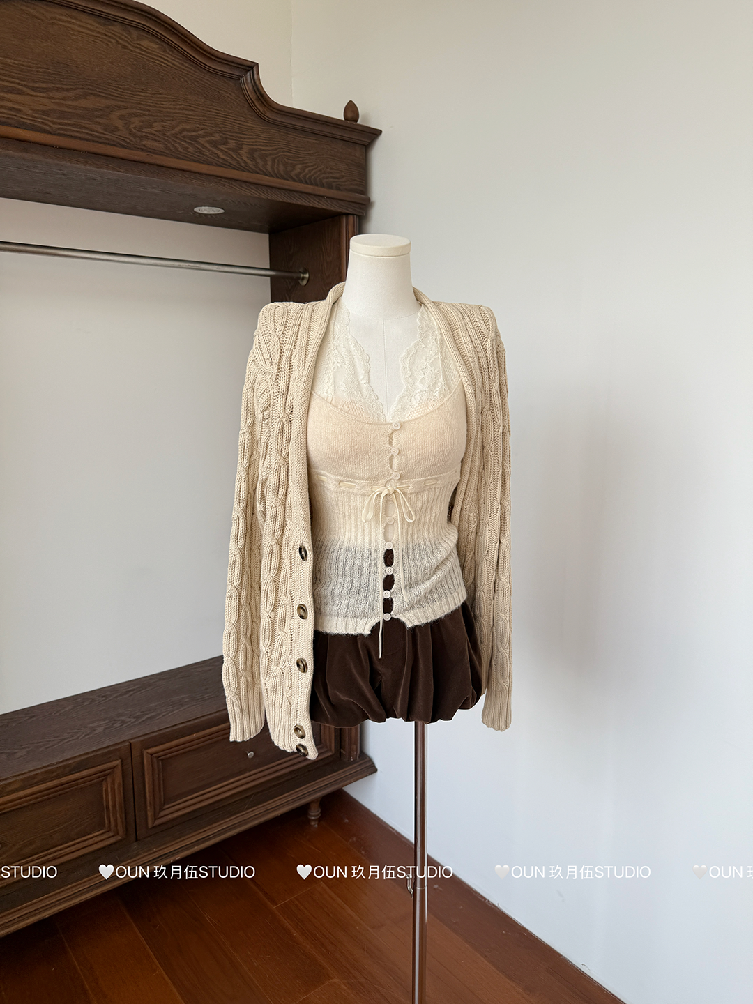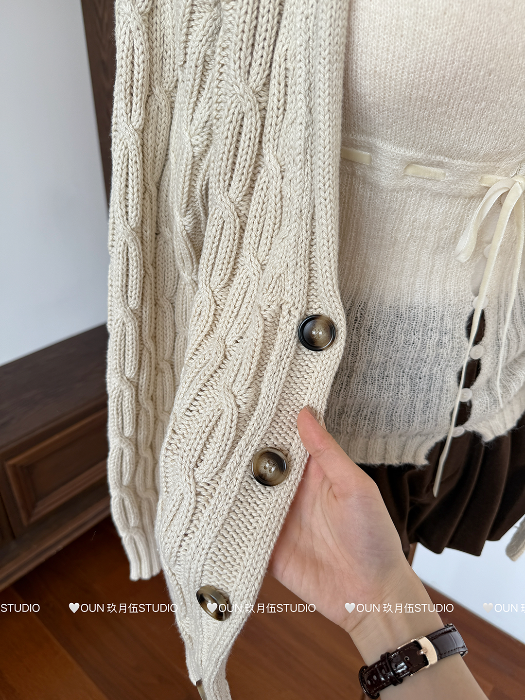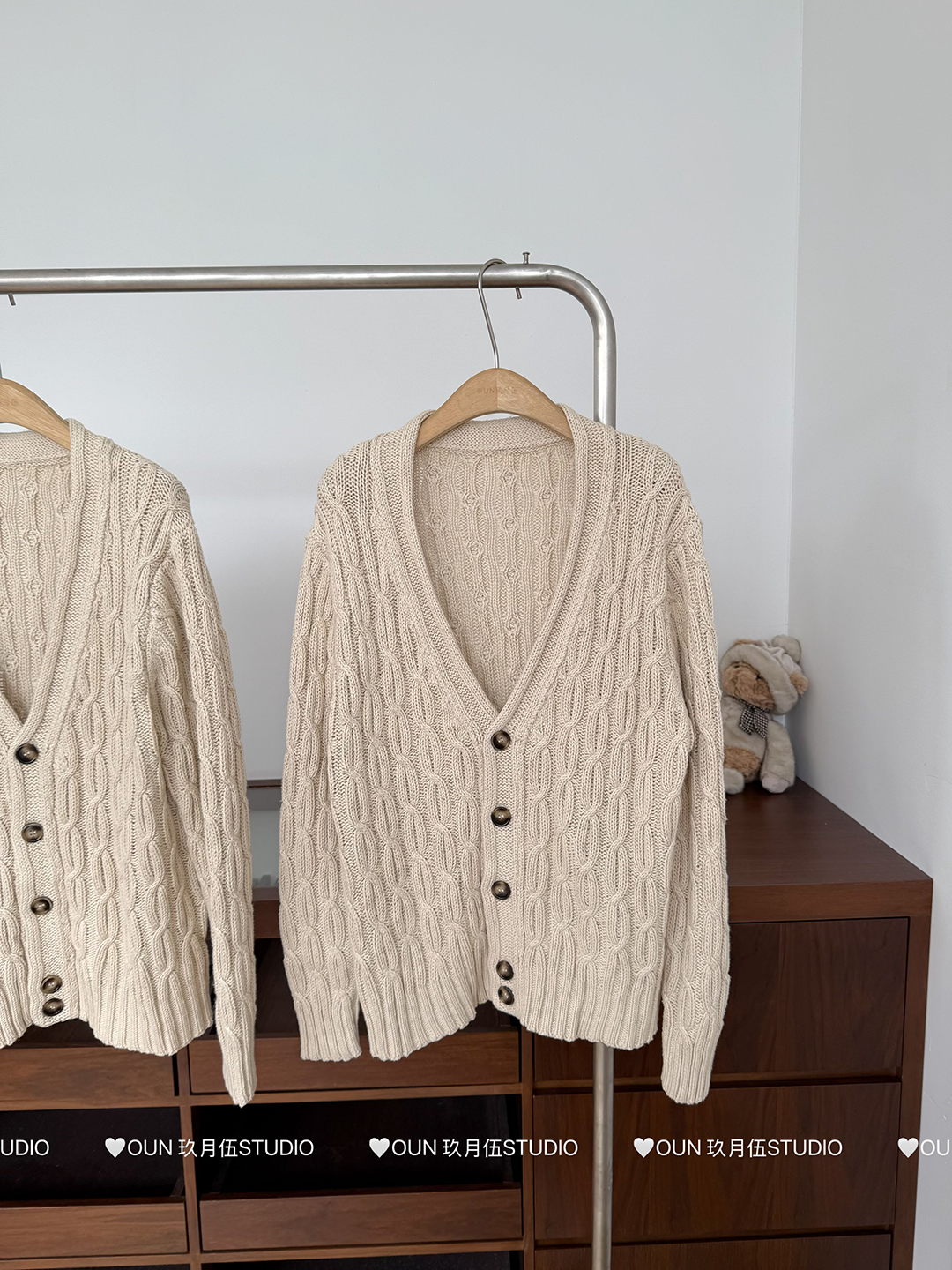 玖月伍 溫莎的午後 100%棉V領麻花毛衣女秋季高級感韓系開衫外套