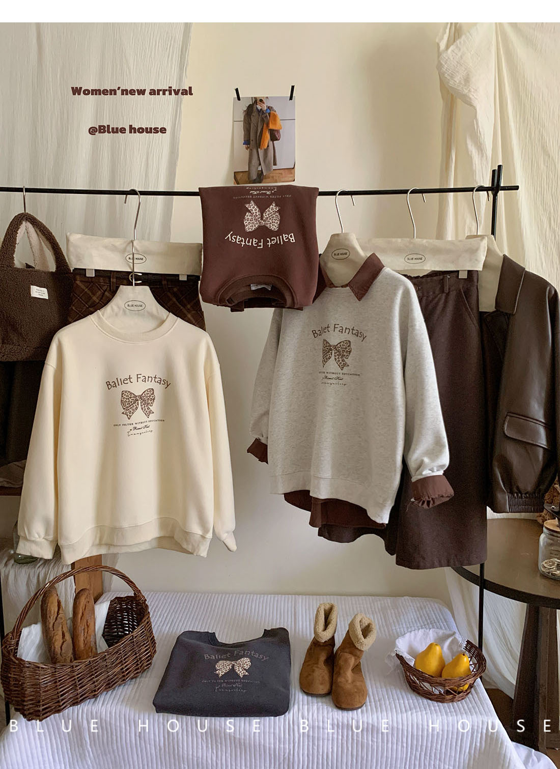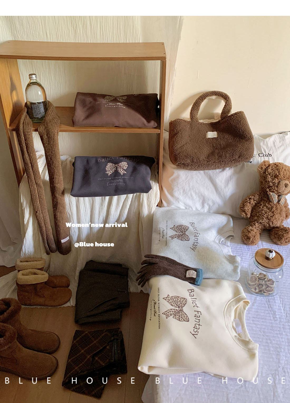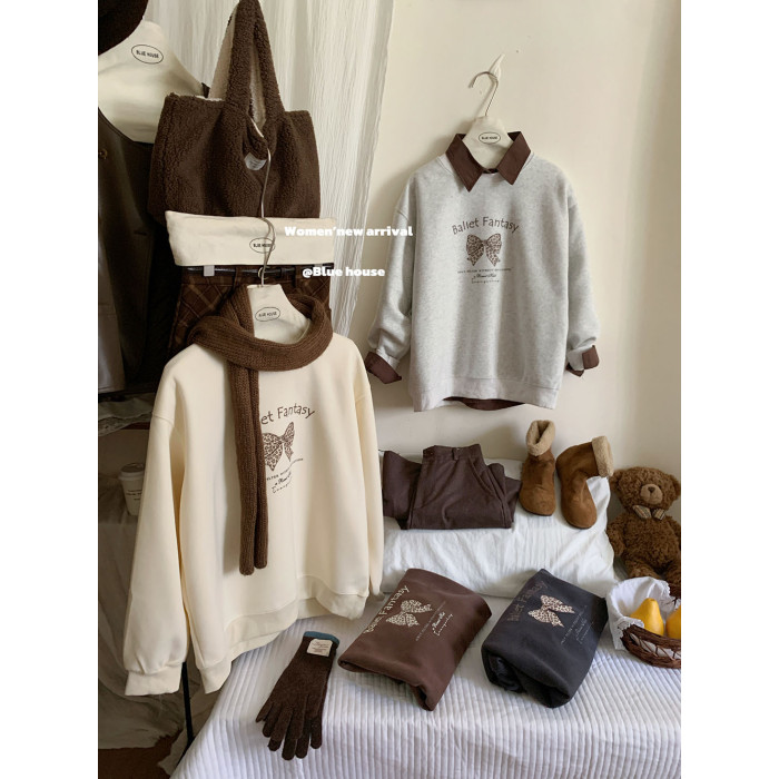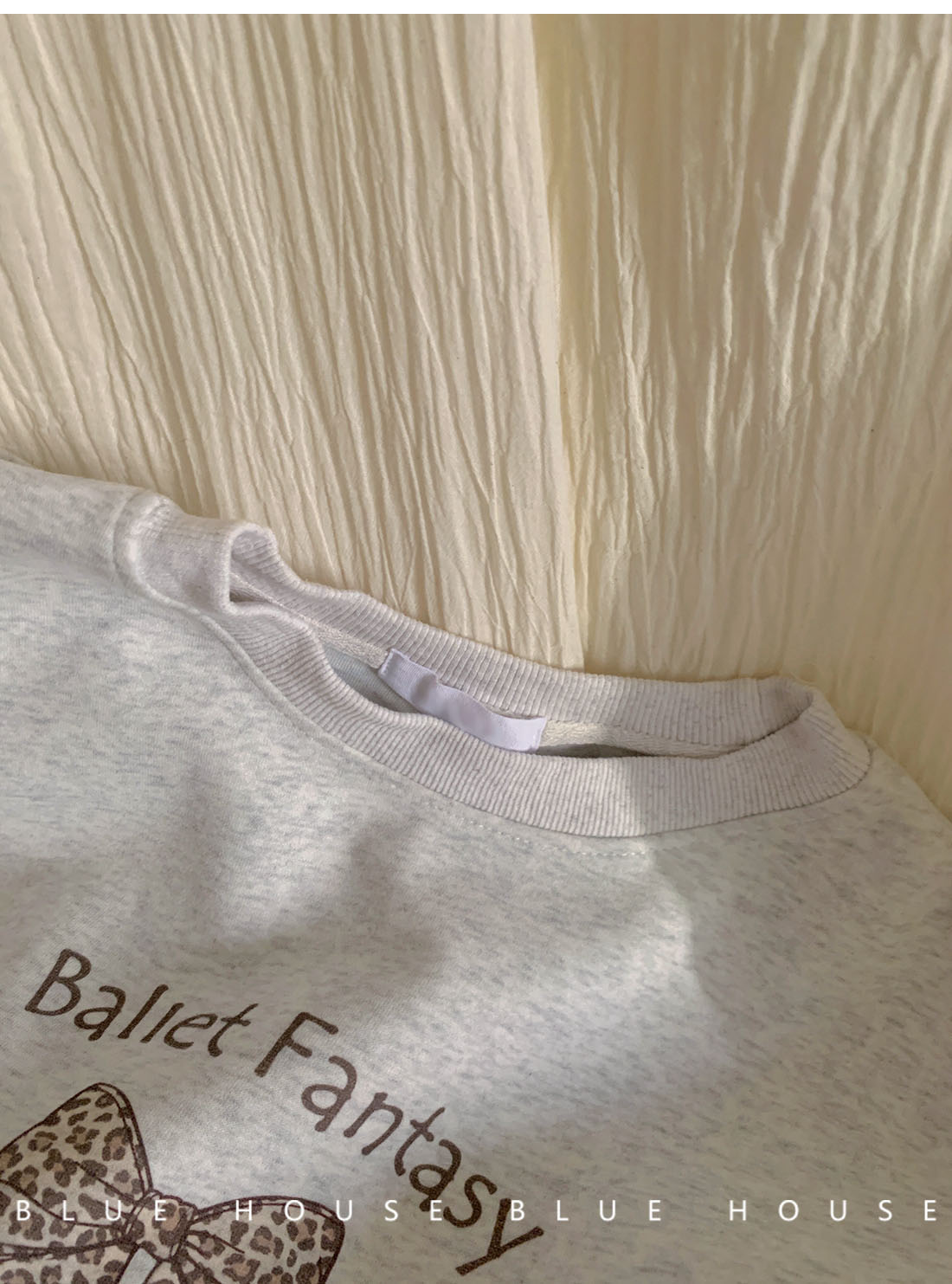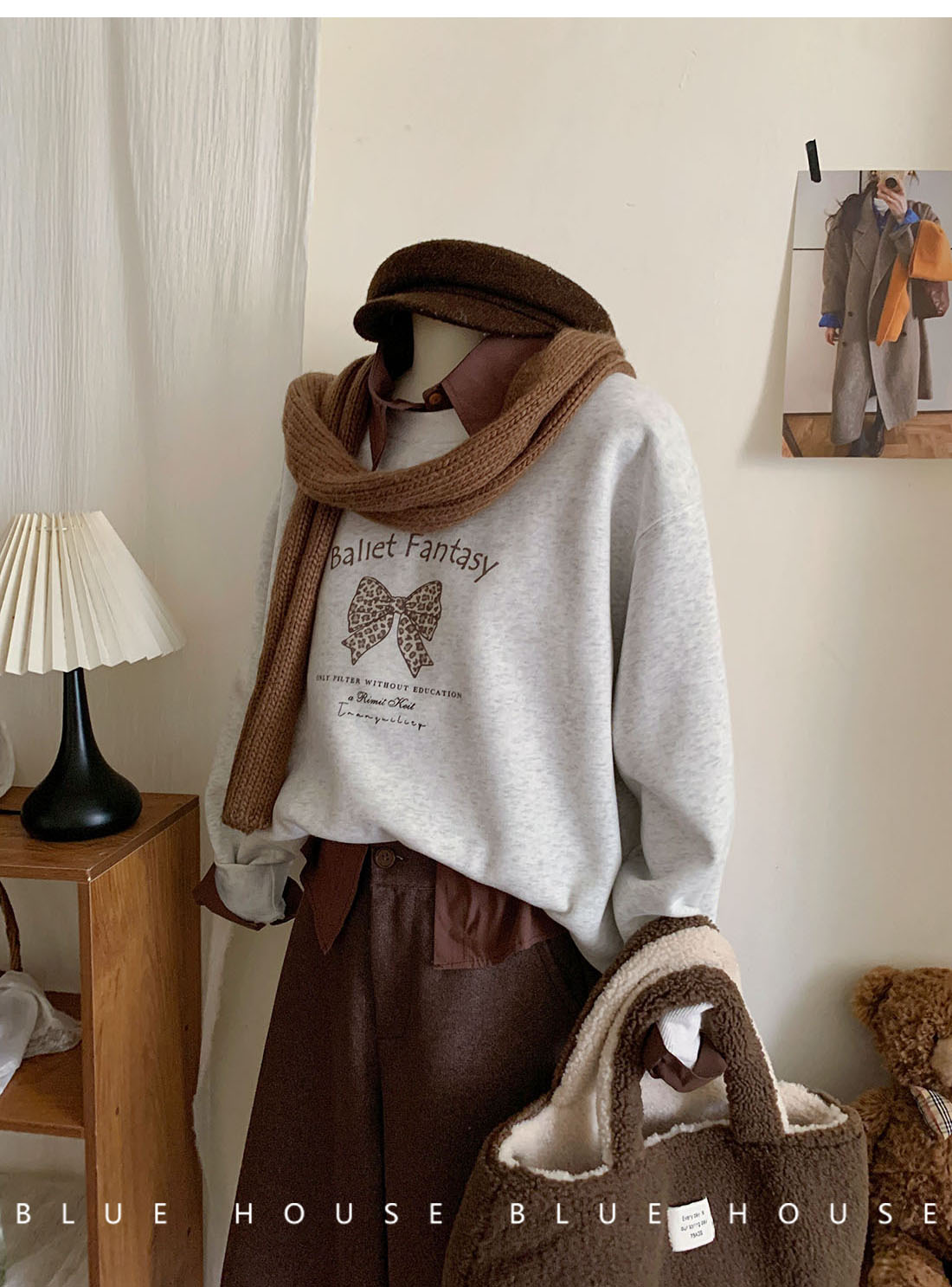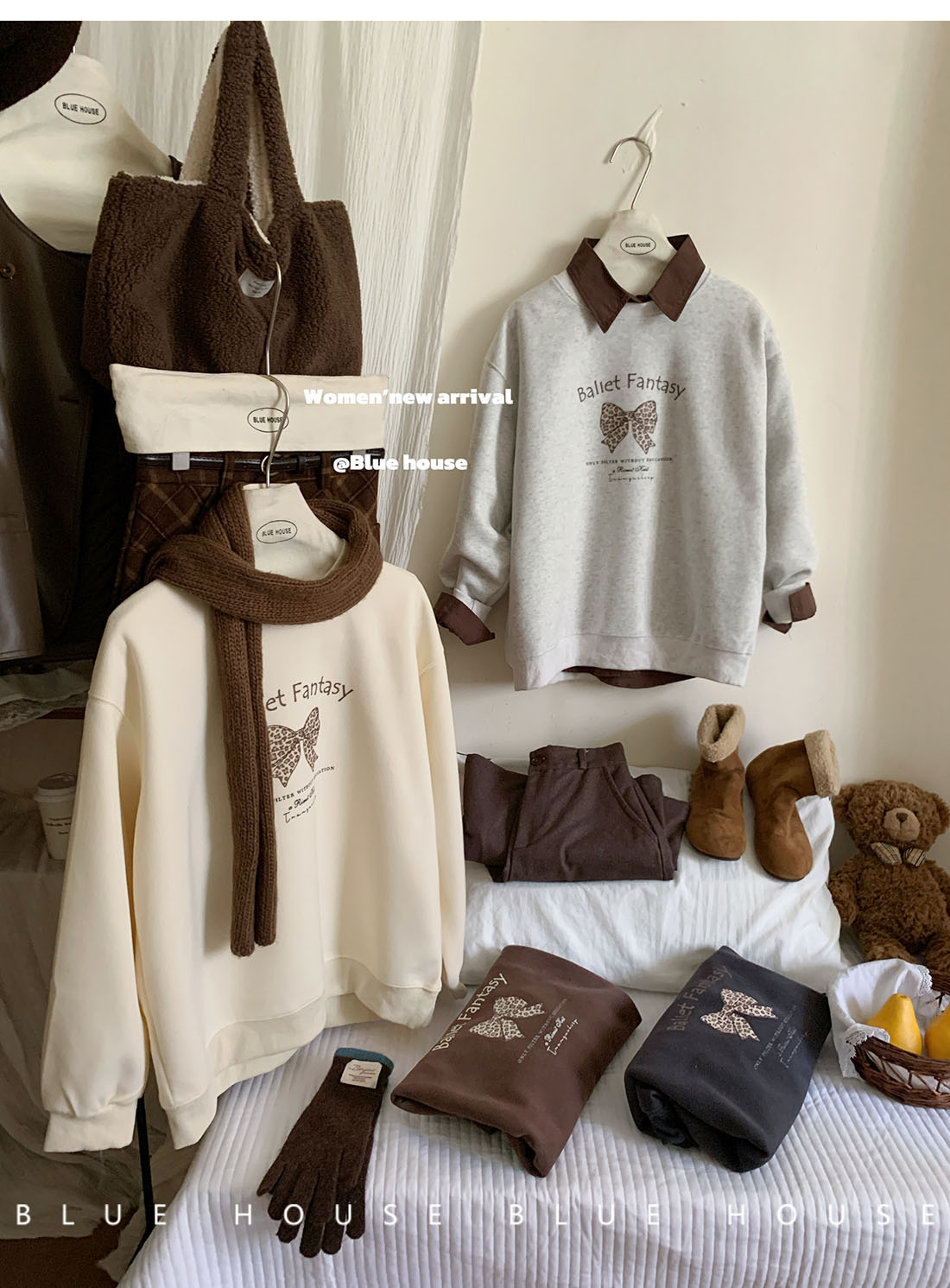 韓版時尚豹紋蝴蝶結圓領長袖衛衣女秋冬寬松休閒百搭減齡套頭上衣