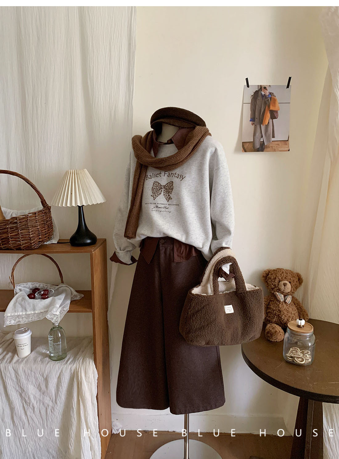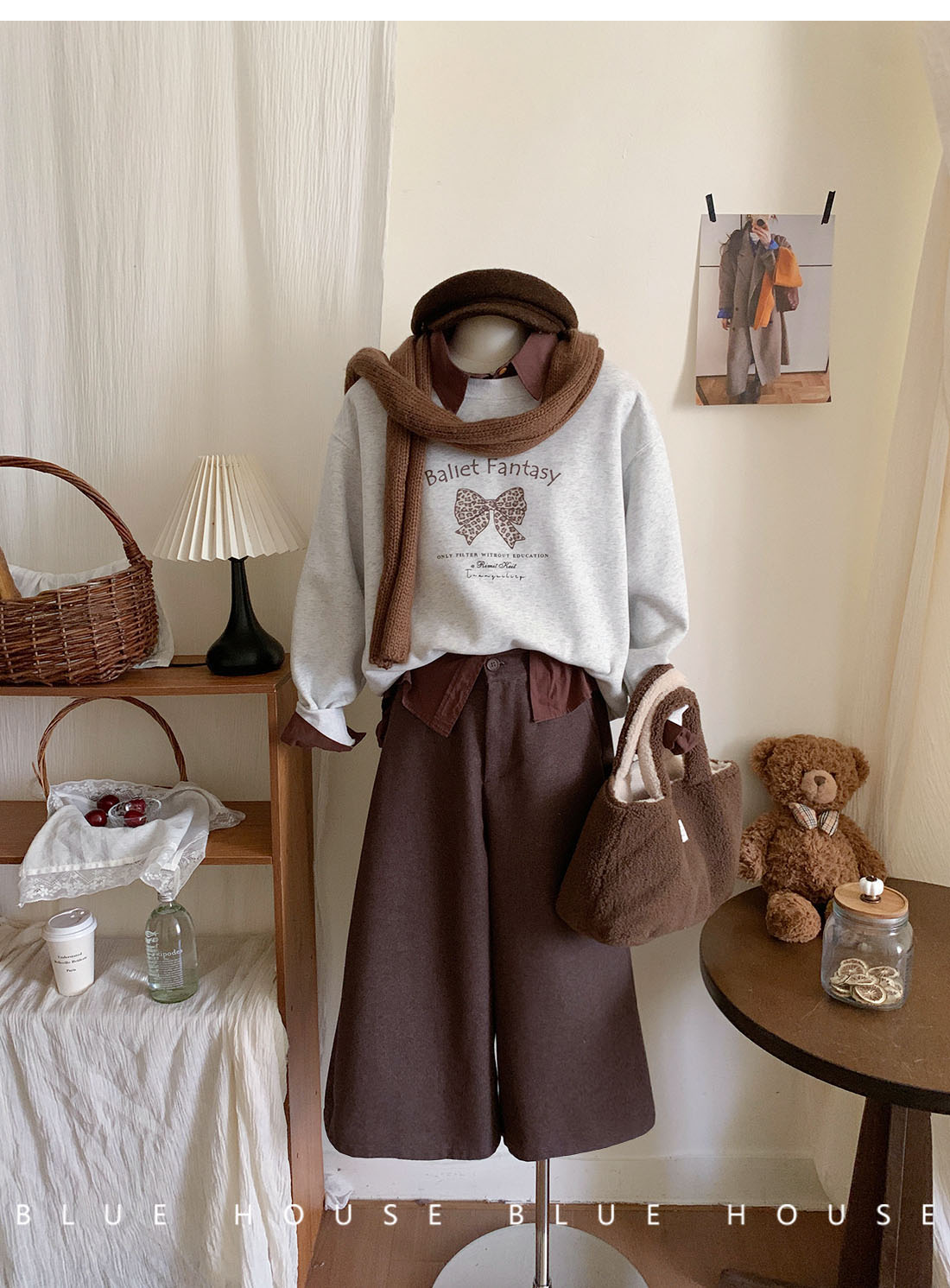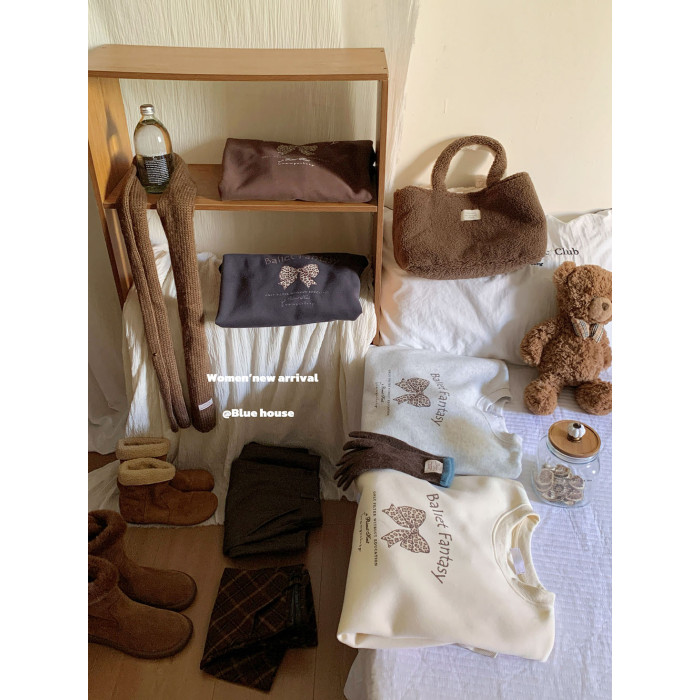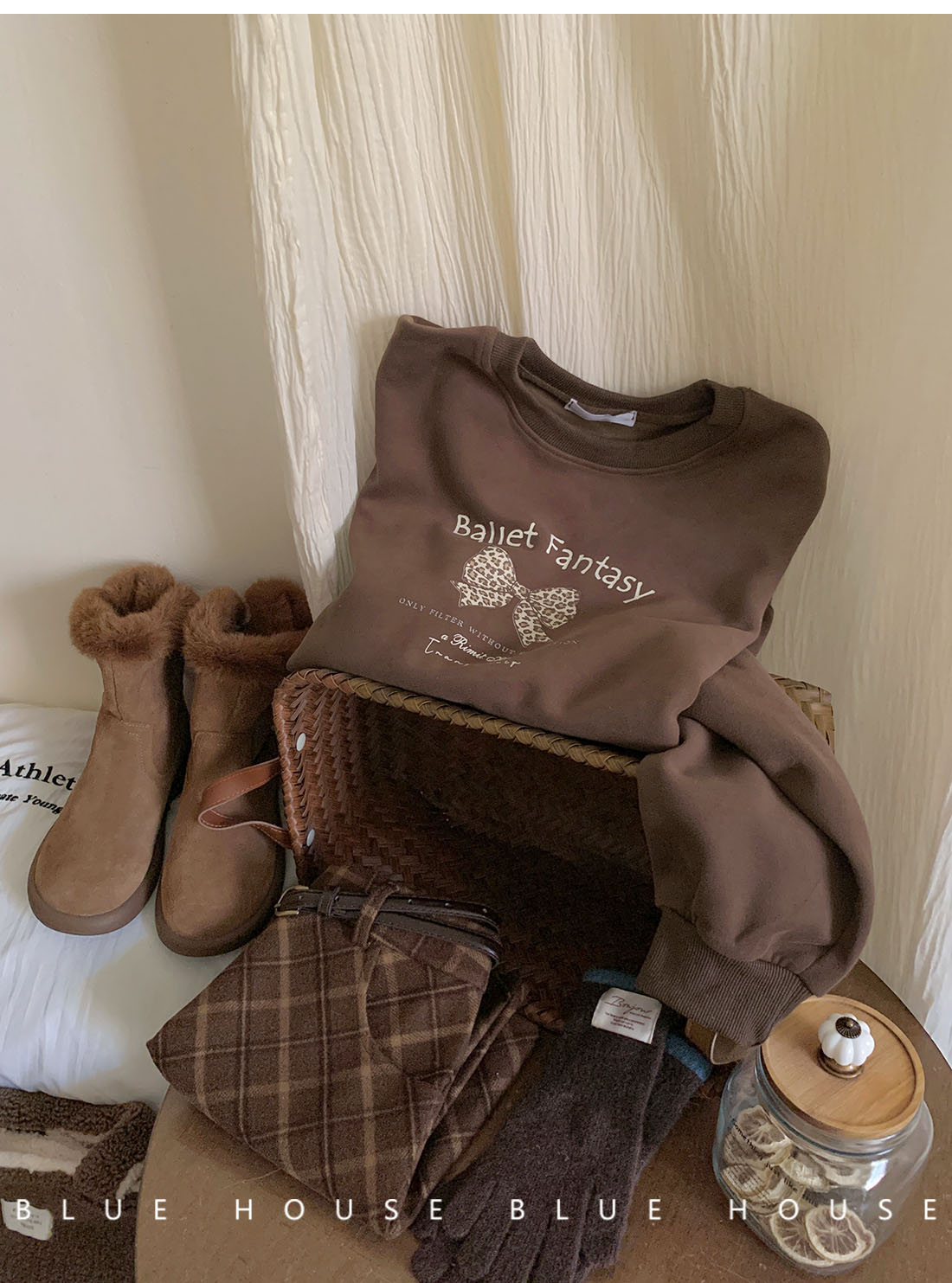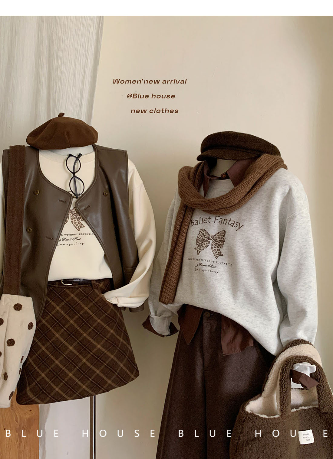 韓版時尚豹紋蝴蝶結圓領長袖衛衣女秋冬寬松休閒百搭減齡套頭上衣