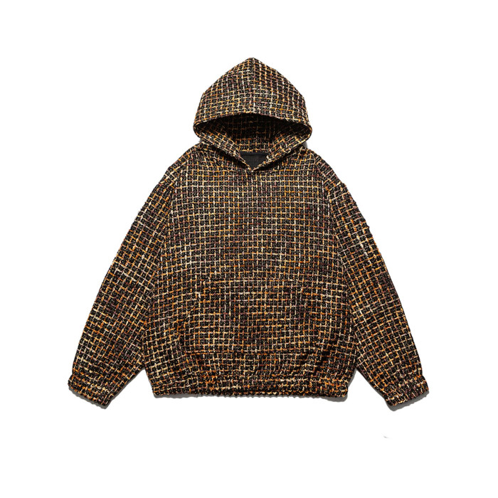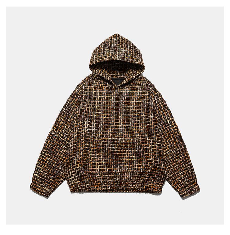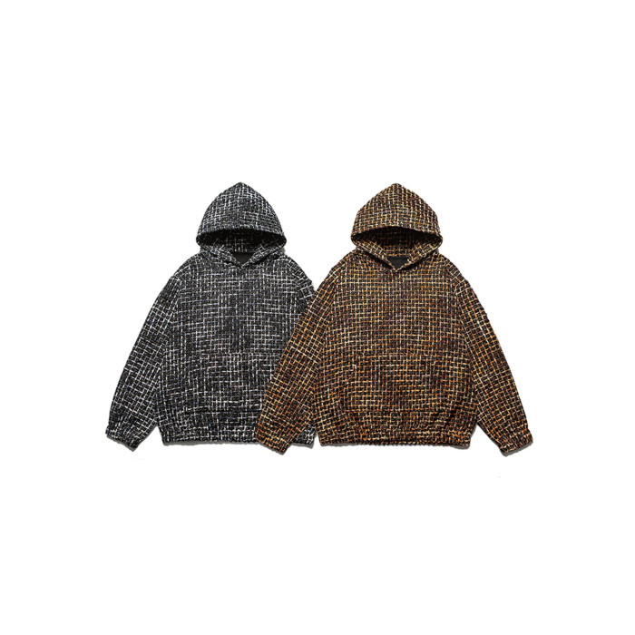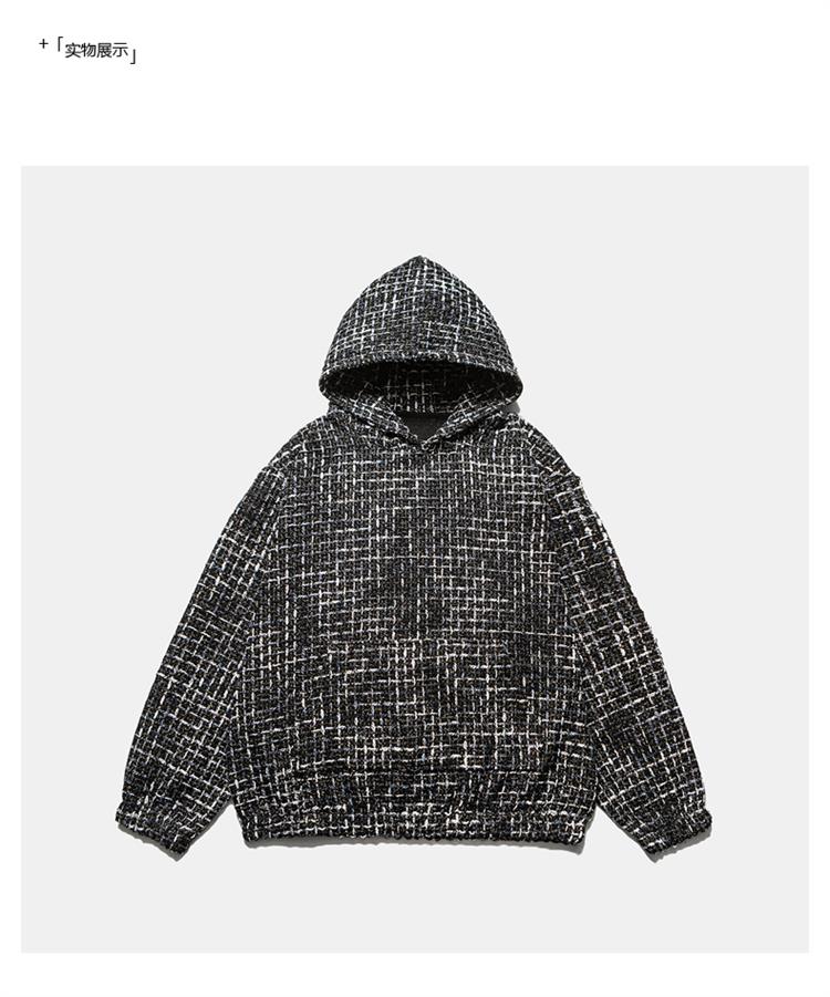 春秋新款重磅小香風編織連帽衛衣男女款美式復古寬松情侶帽衫上衣