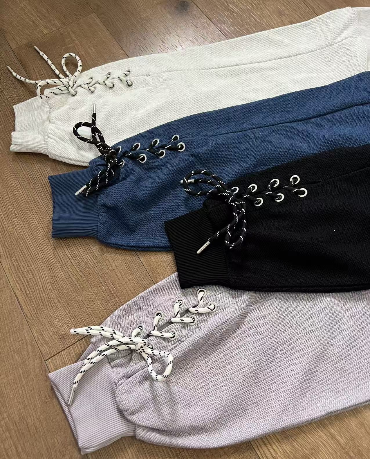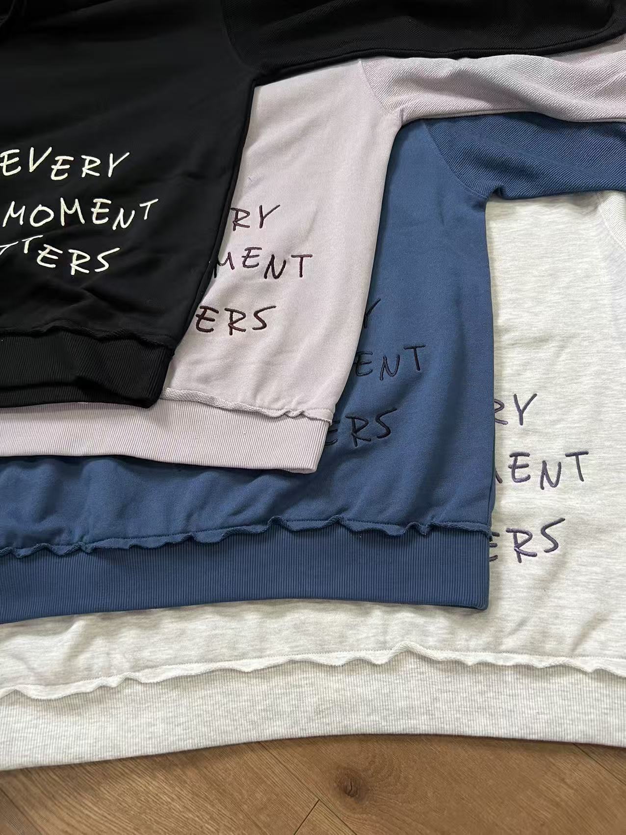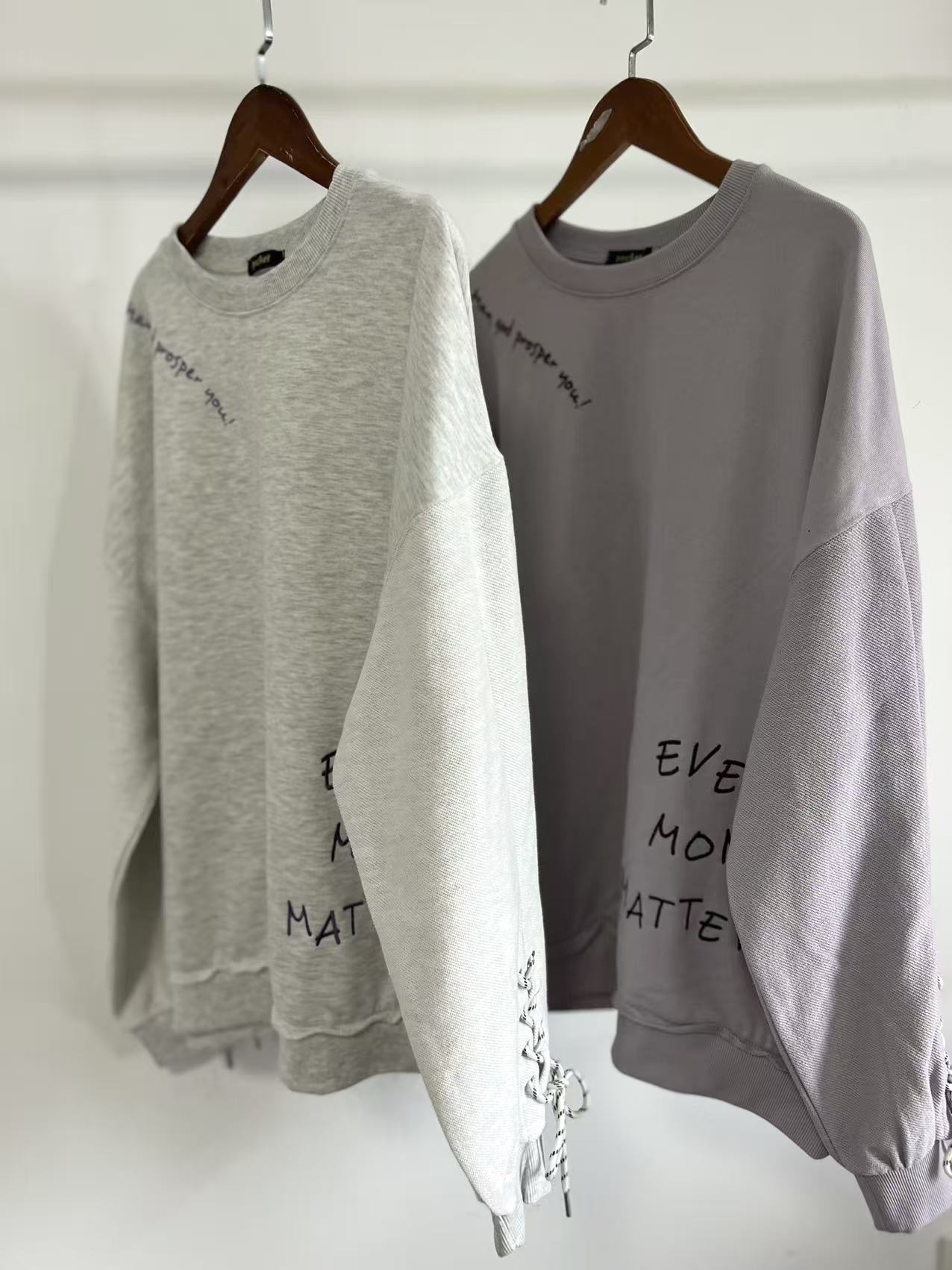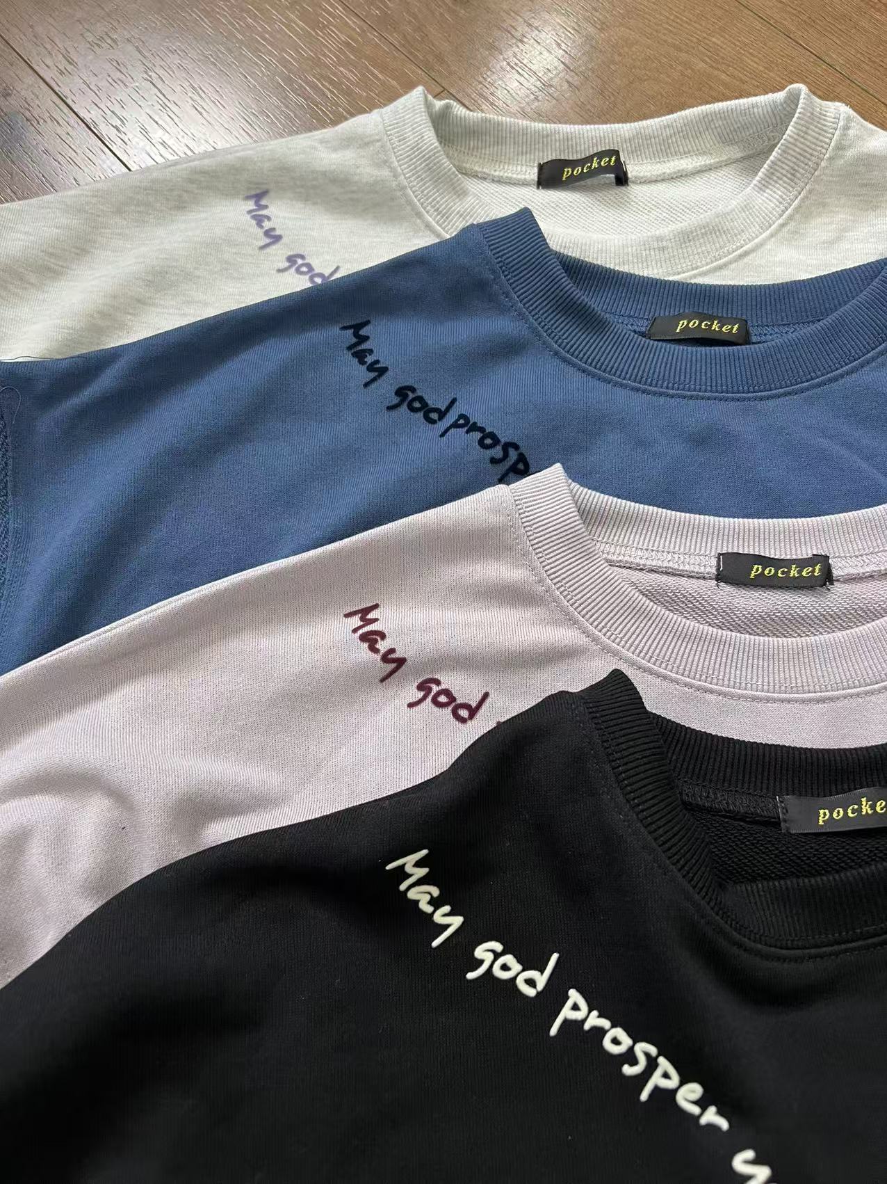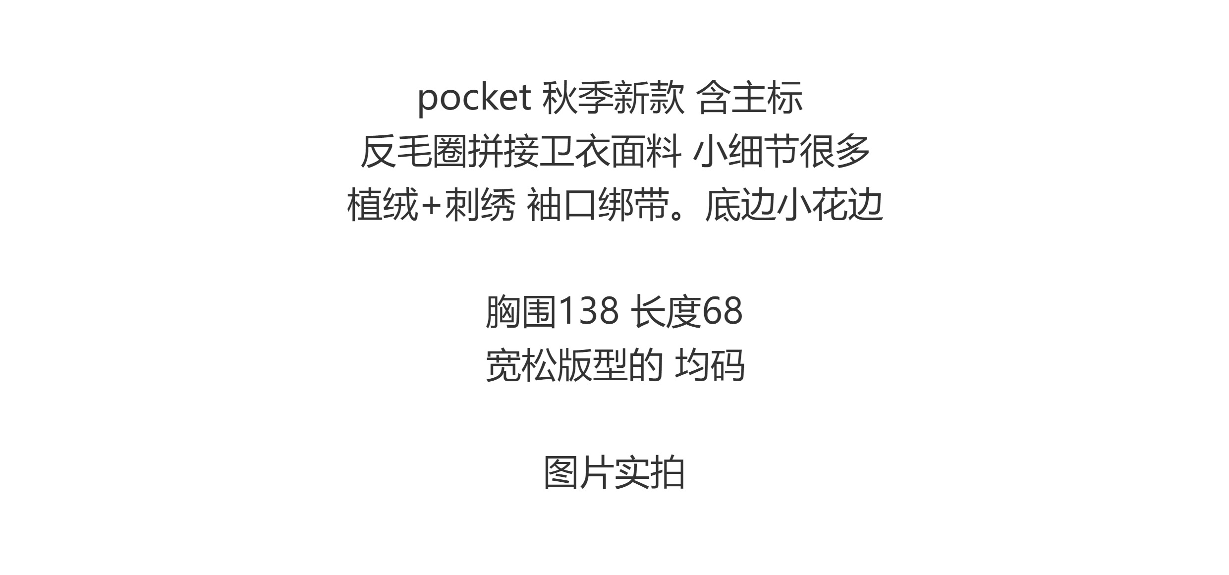 pocket日系早秋新款反毛圈植絨刺綉衛衣系帶休閒綁帶套頭寬松日單