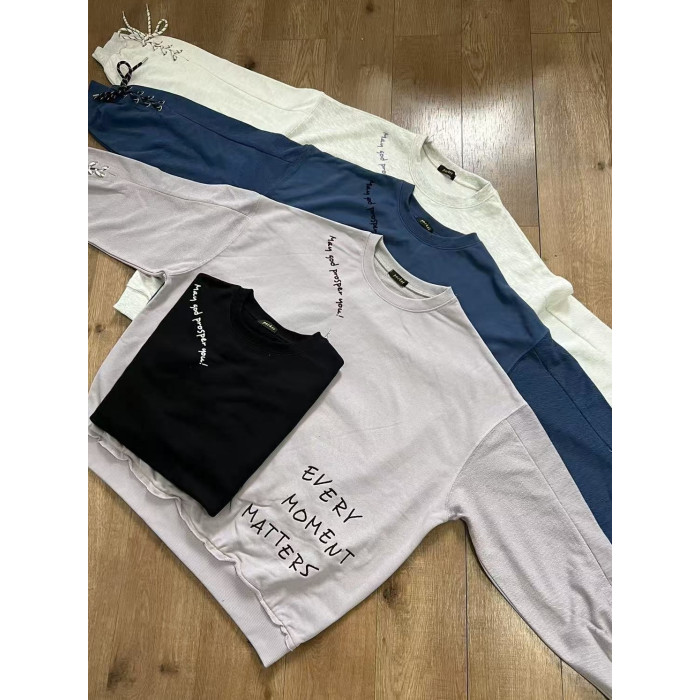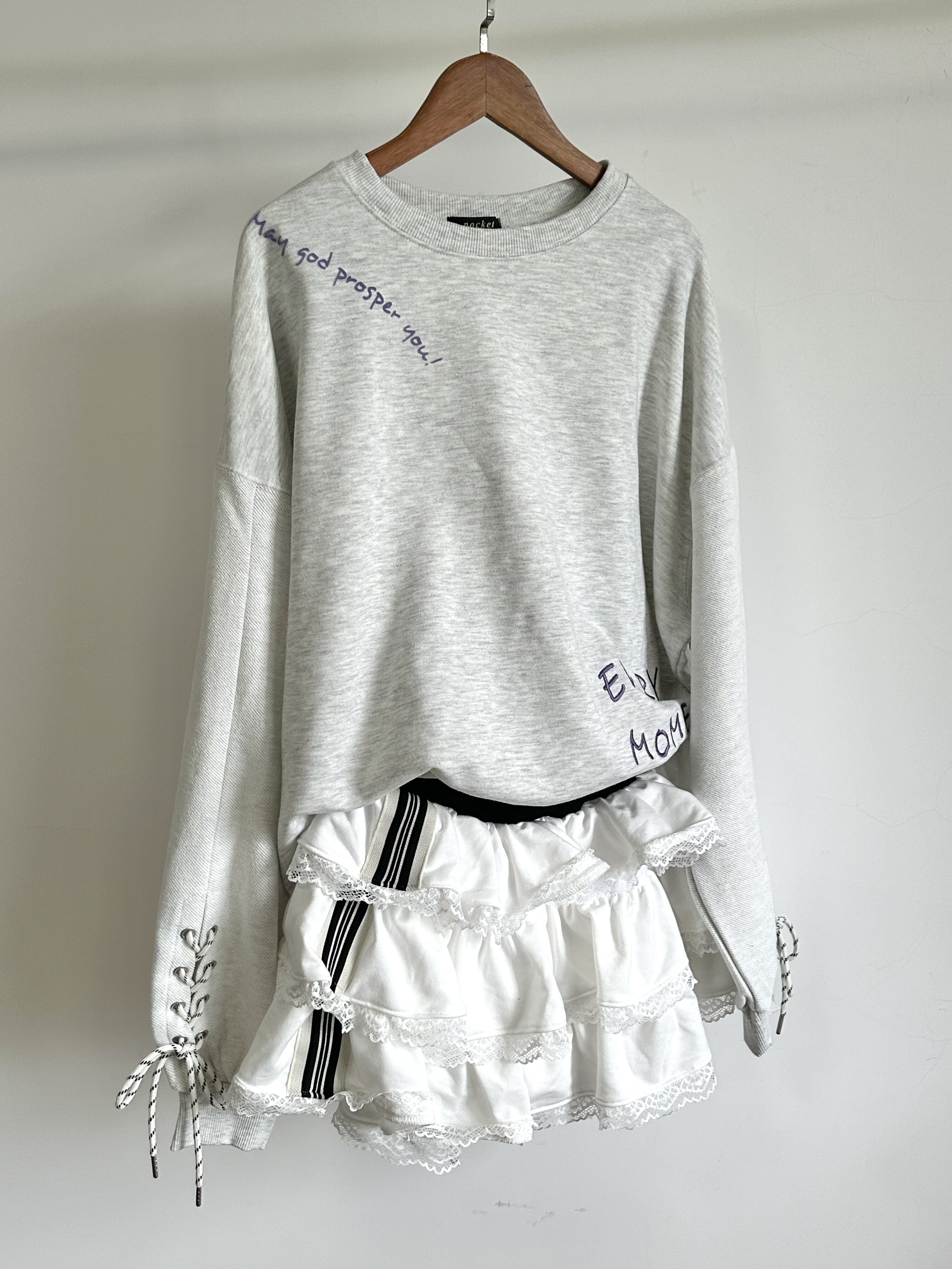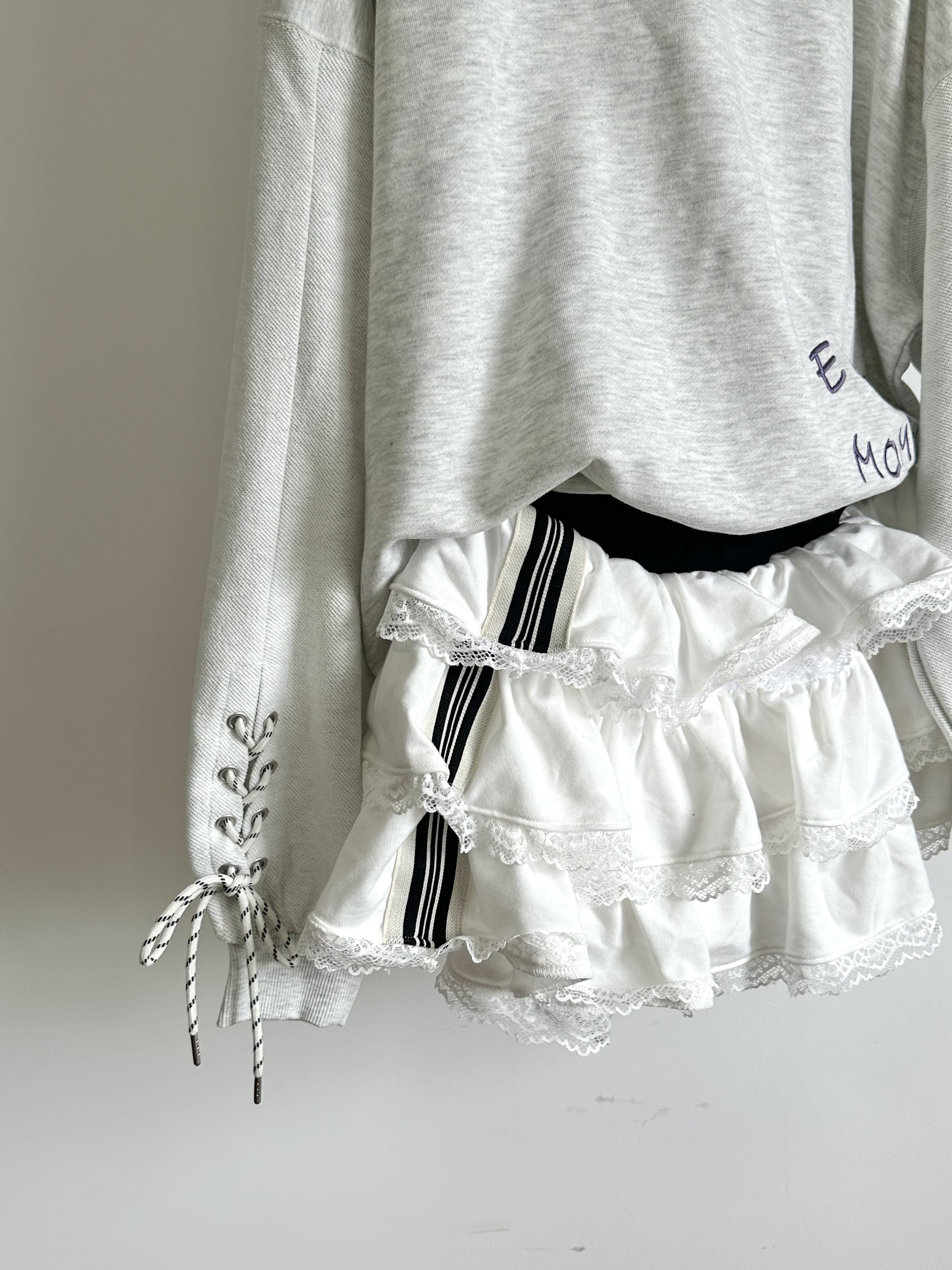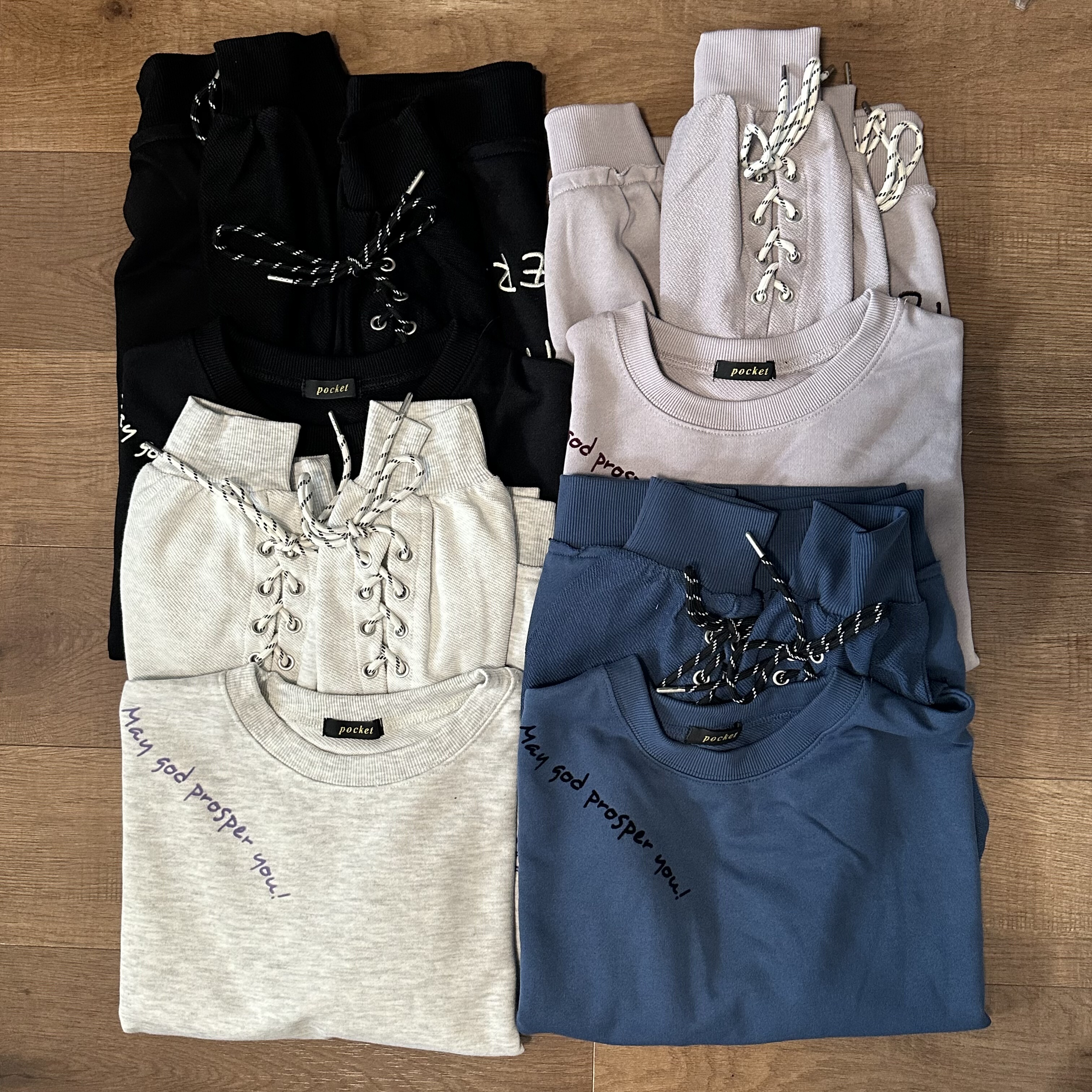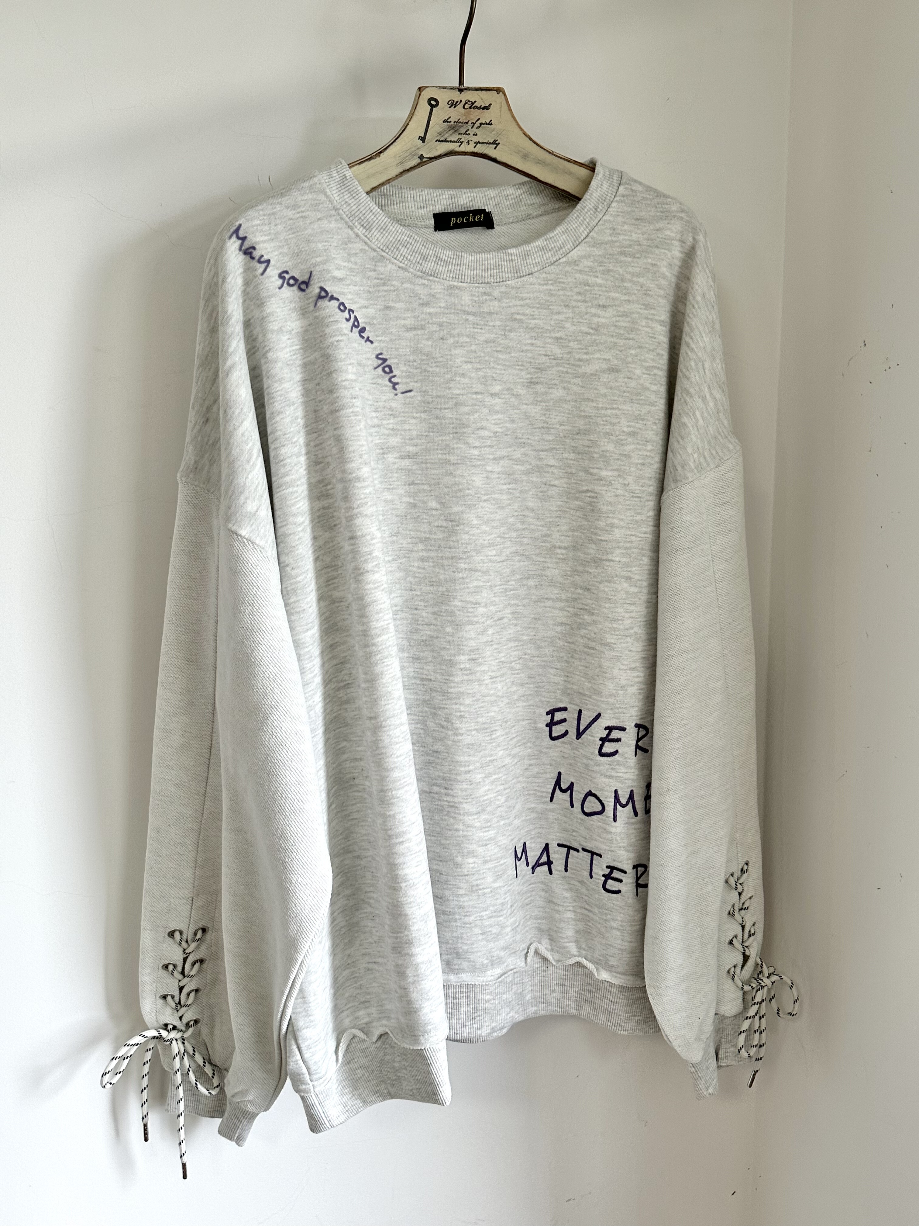 pocket日系早秋新款反毛圈植絨刺綉衛衣系帶休閒綁帶套頭寬松日單
