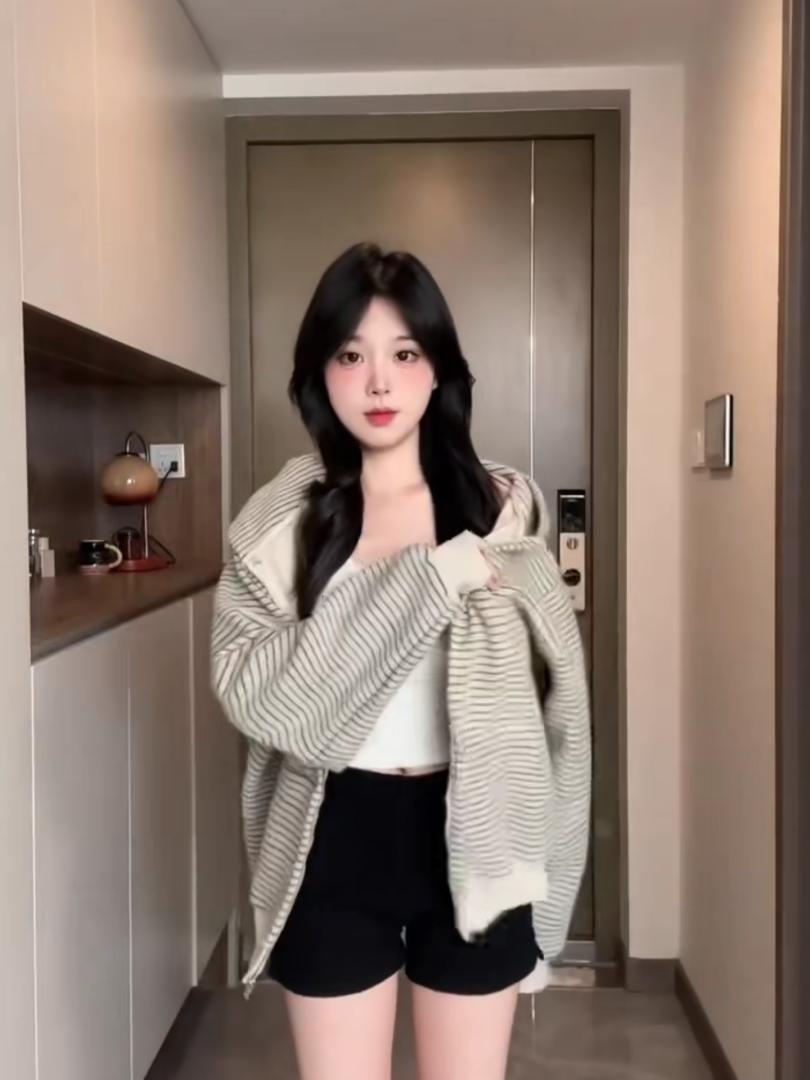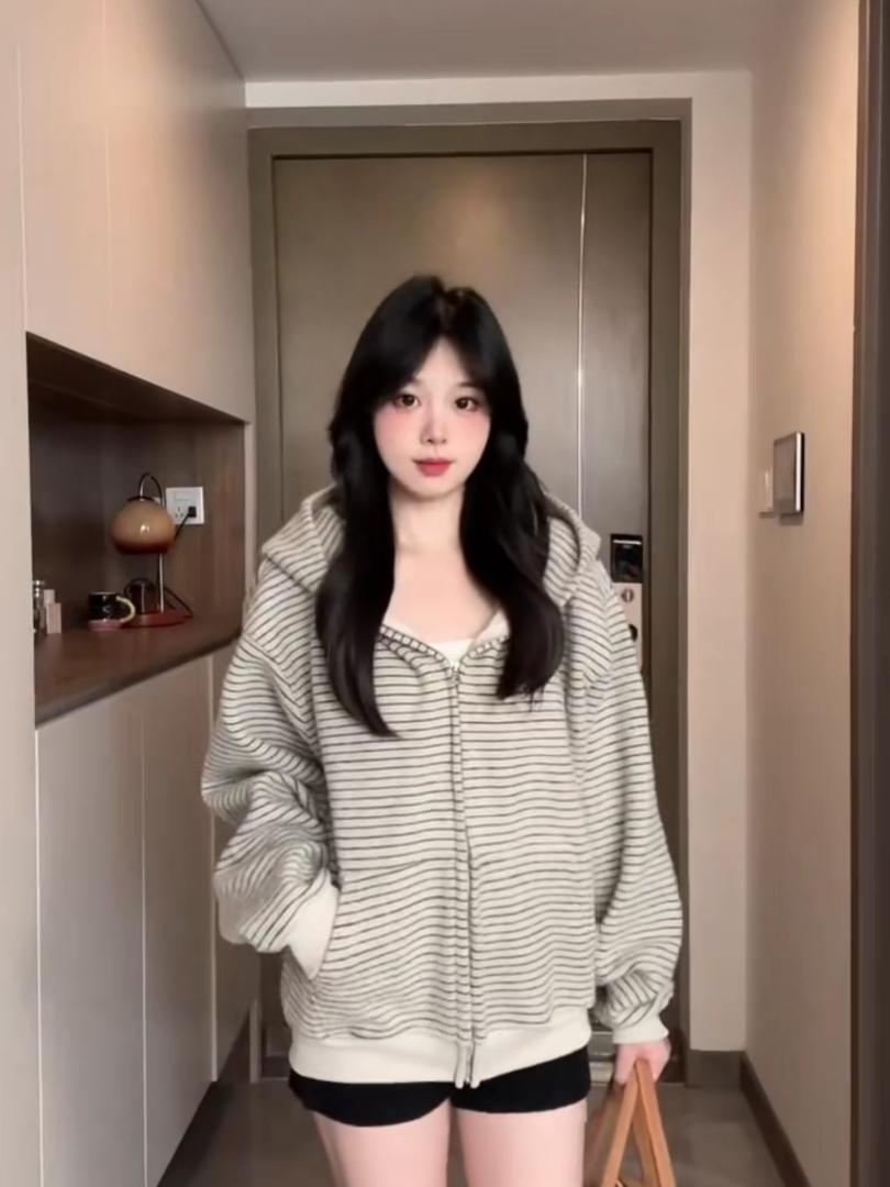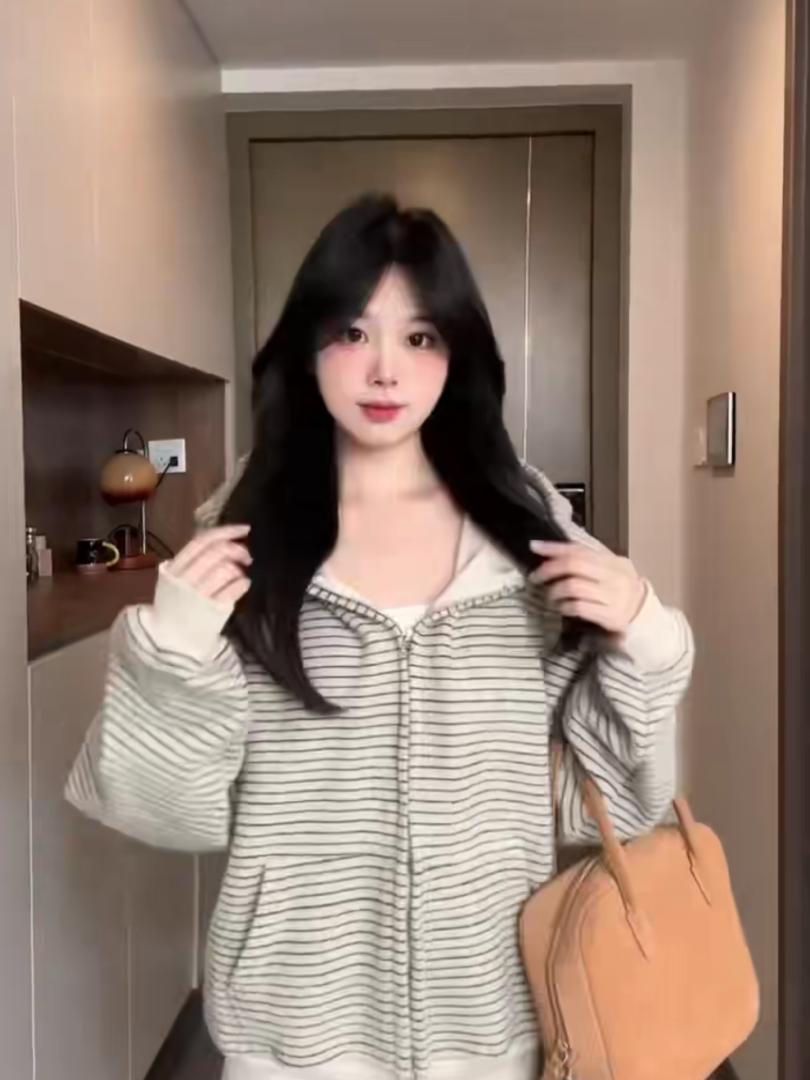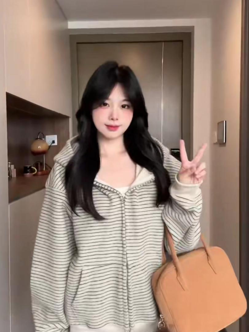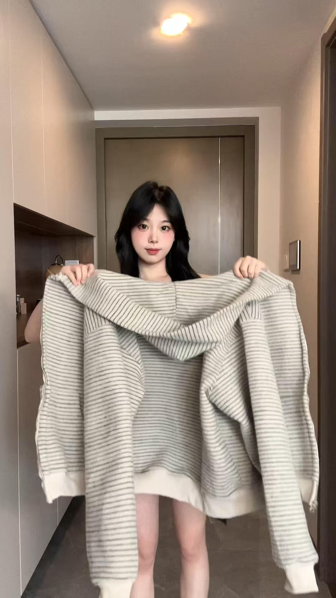 連帽衛衣外套女春秋季2025新款韓系慵懶拉鍊條紋開衫上衣早秋穿搭