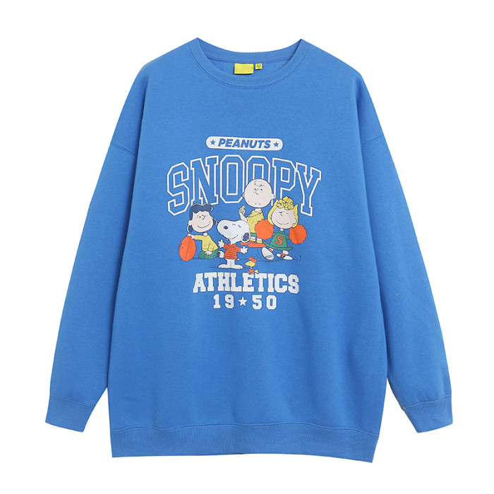 春秋季加絨卡通字母圓領套頭衛衣女寬松大版型中長款減齡上衣