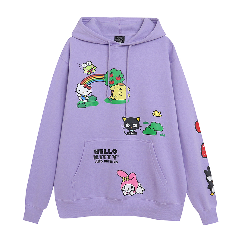 春秋季卡通動漫印花連帽套頭衛衣女大碼薄絨寬松減齡口袋帽衫