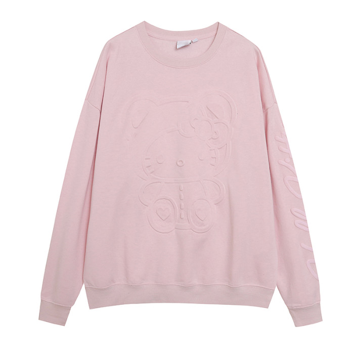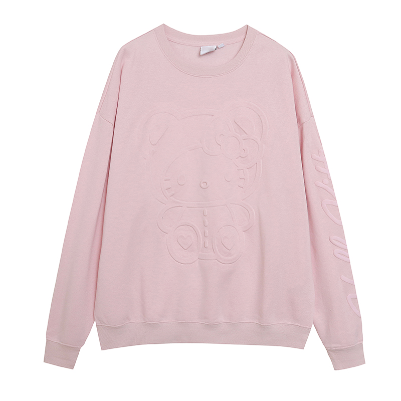 壓花卡通純色休閒百搭圓領秋季加絨衛衣 寬松顯瘦大版俏皮女