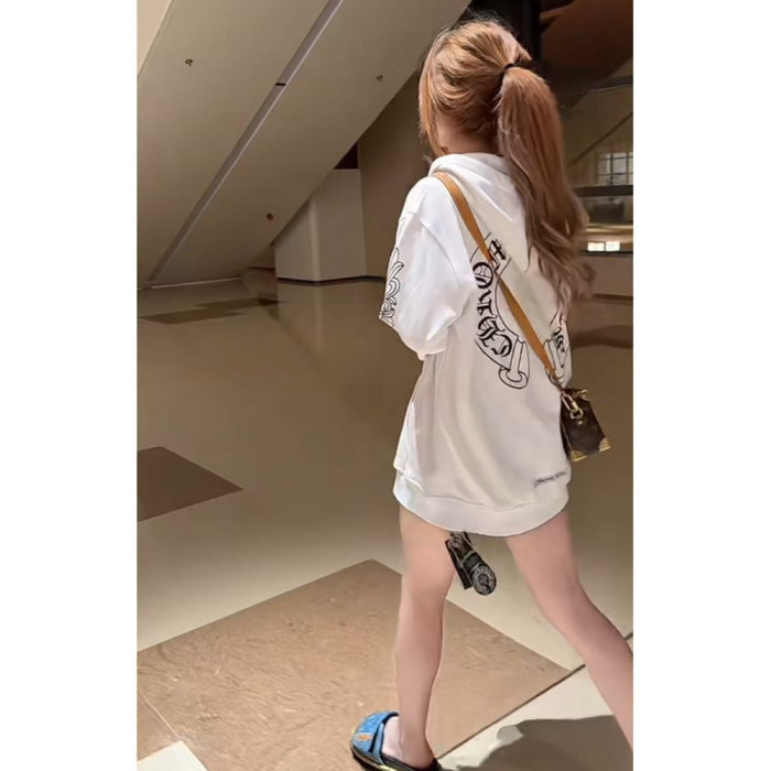 美式高街梵文字母開衫衛衣女秋冬加絨加厚寬松設計感情侶連帽外套