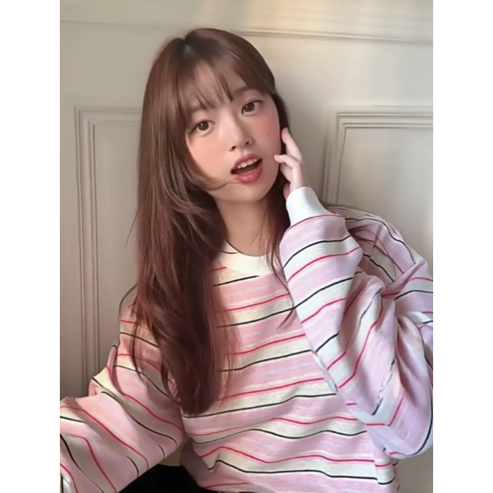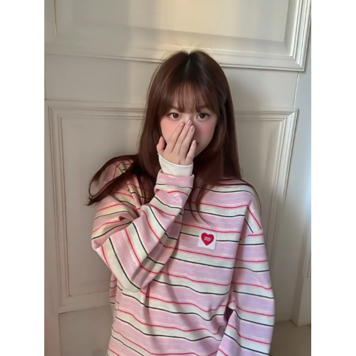 韓系粉色條紋愛心長袖衛衣女秋季2025新款寬松慵懶風無帽圓領上衣