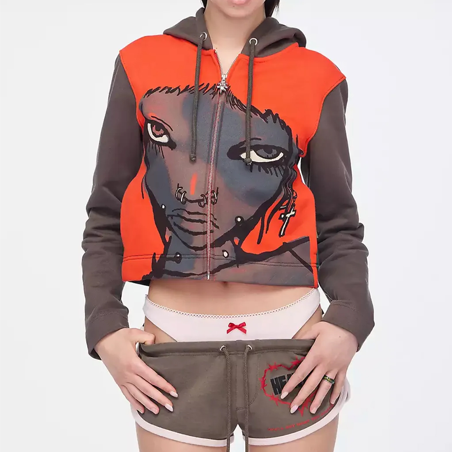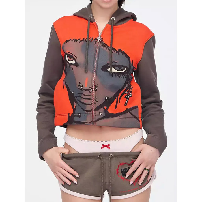 heaven 秋冬25FW連帽印花開衫Y2K辣妹短款衛衣外套上衣