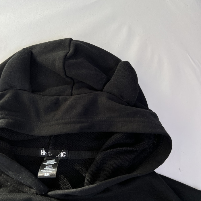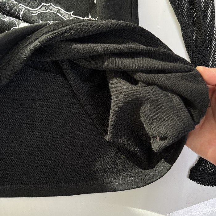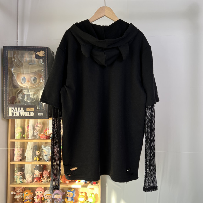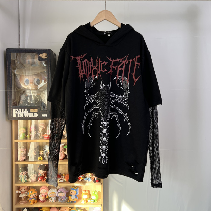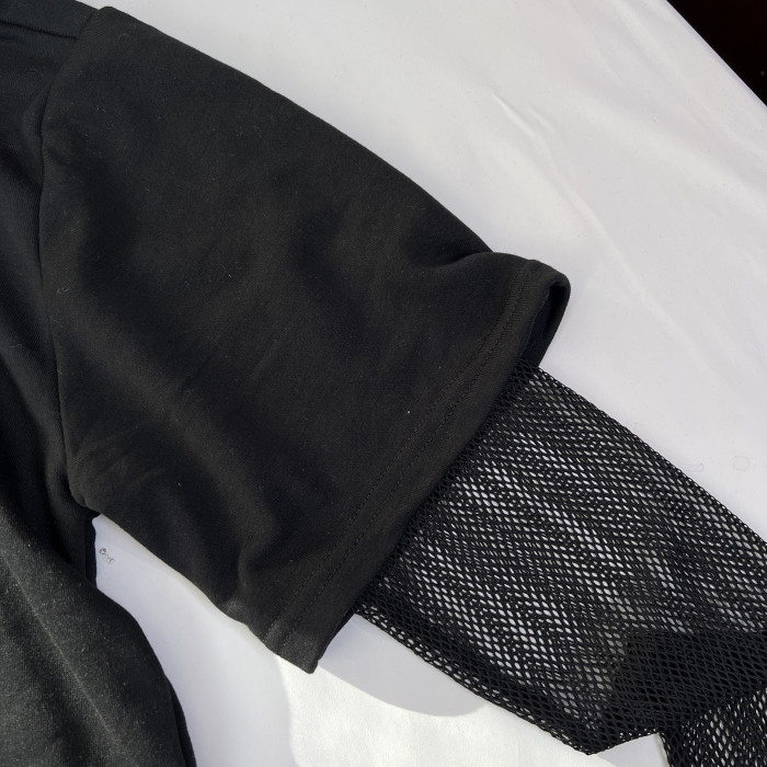 亞文化重工毛圈高克重男女春秋款假兩件寬松休閒百搭連帽網紗袖