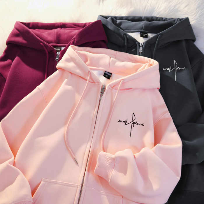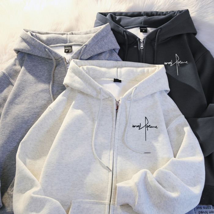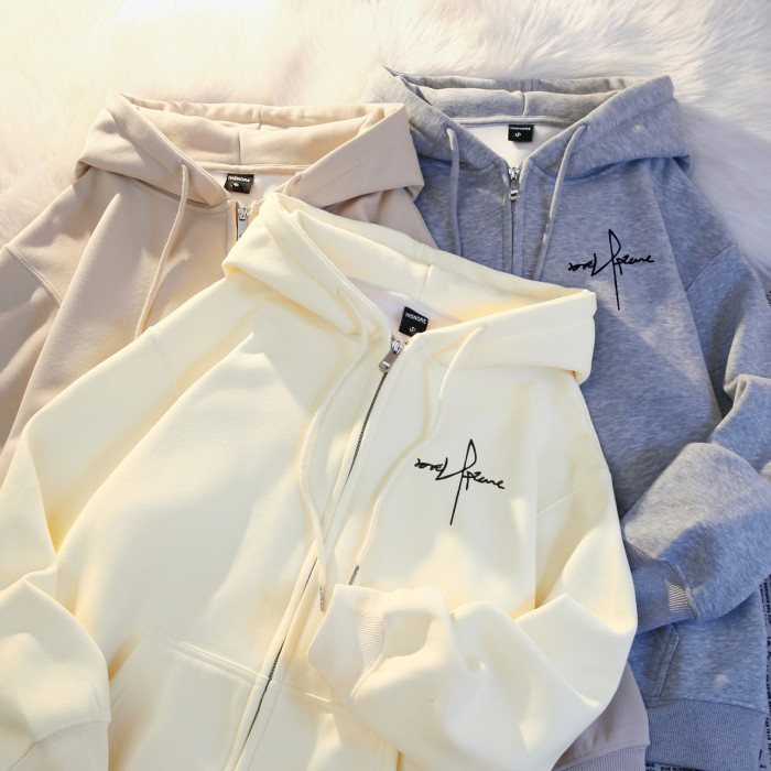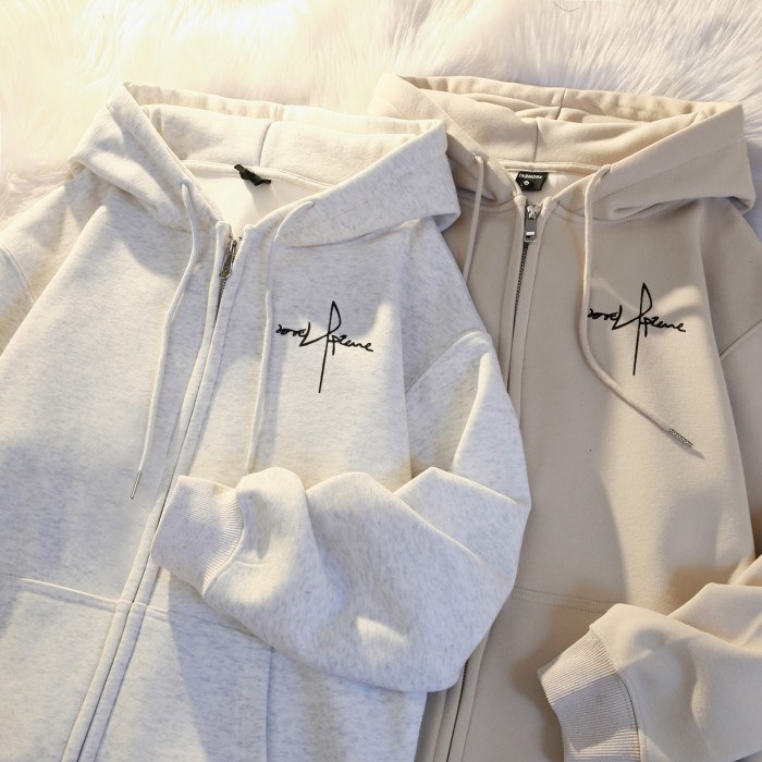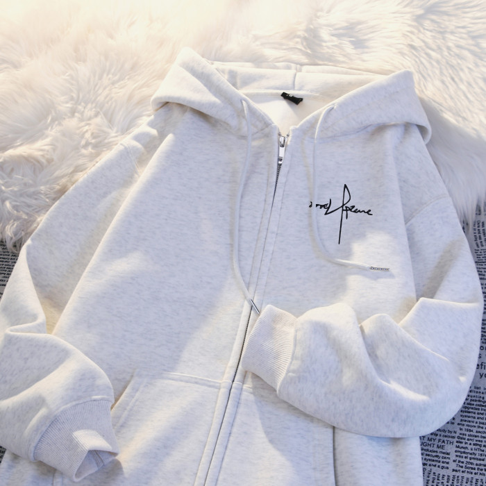 美式復古連帽衛衣女秋冬2025新款加絨加厚oversize小個子開衫外套