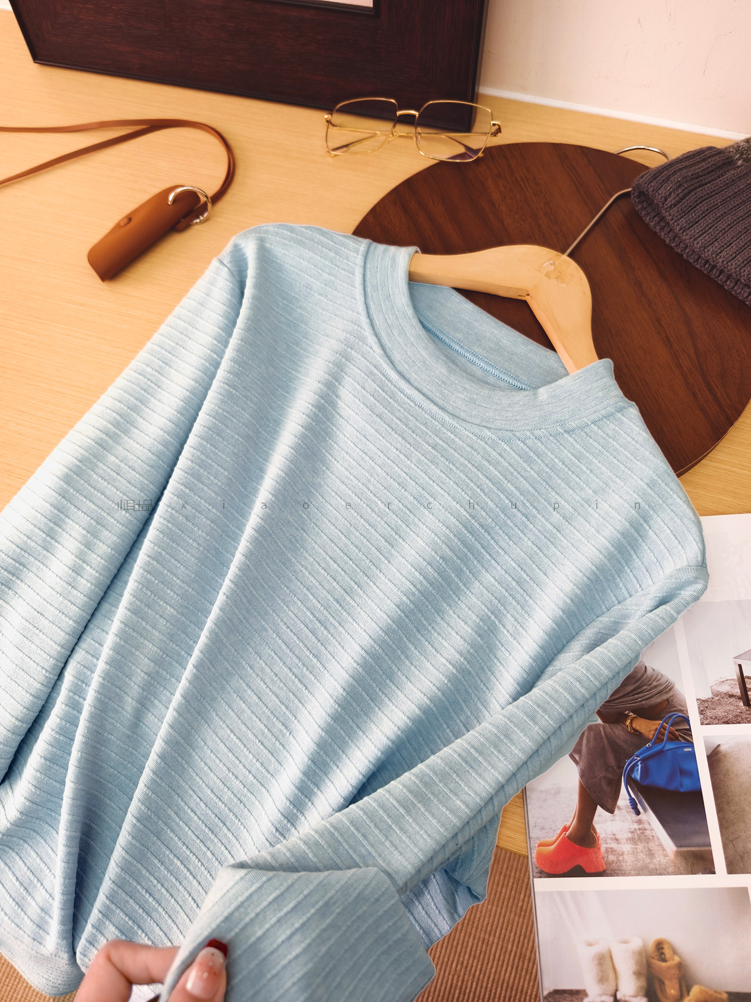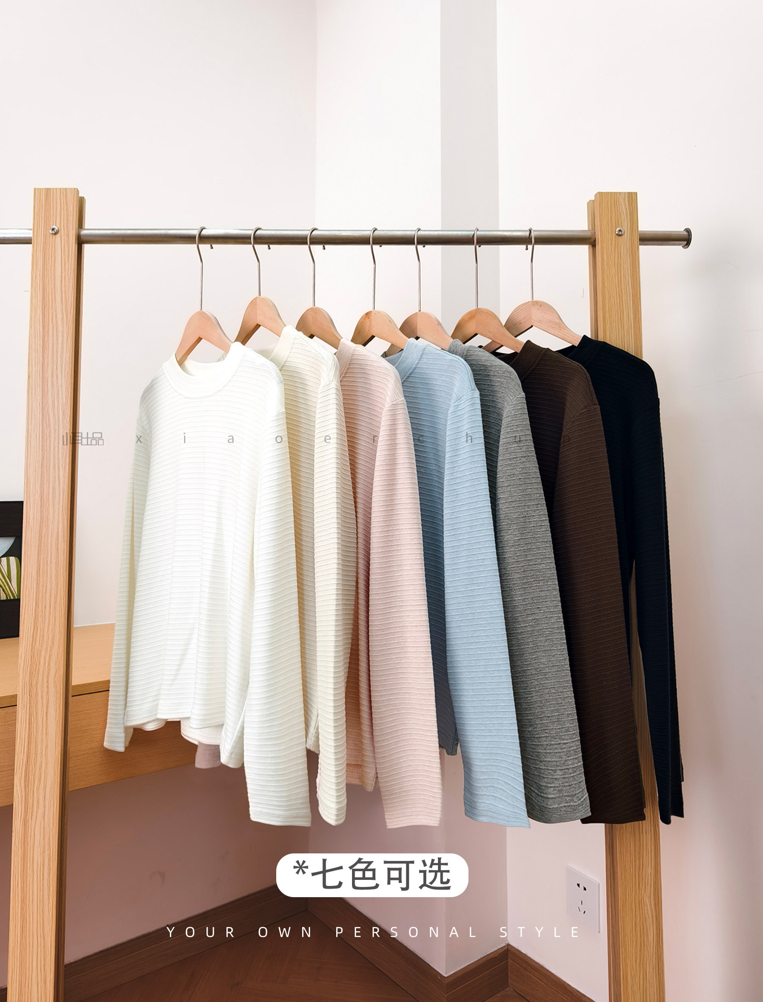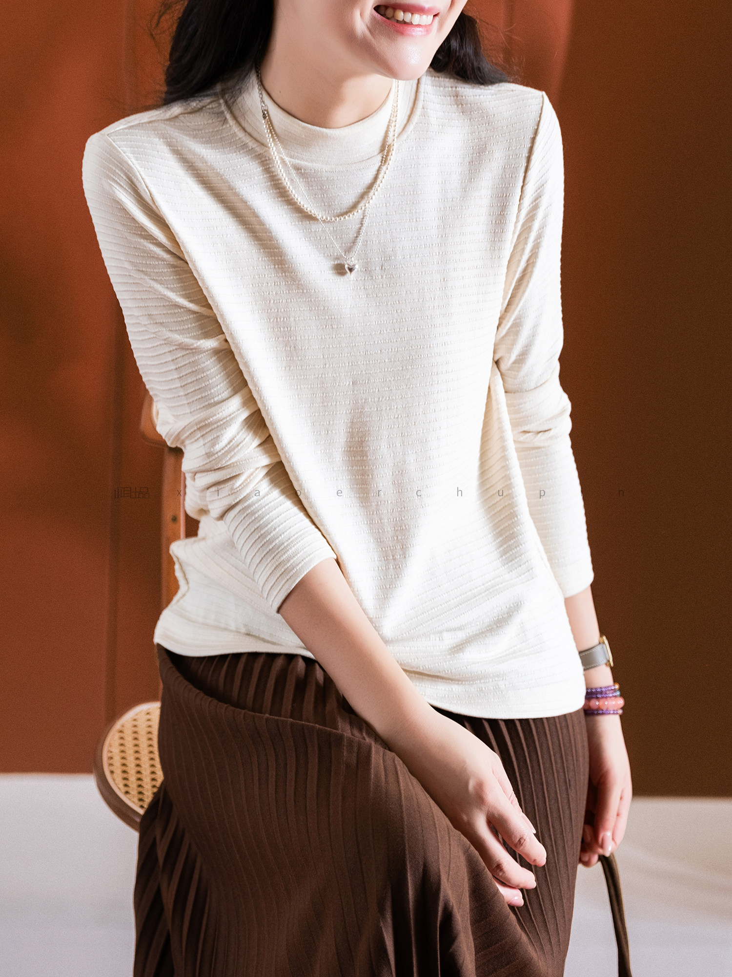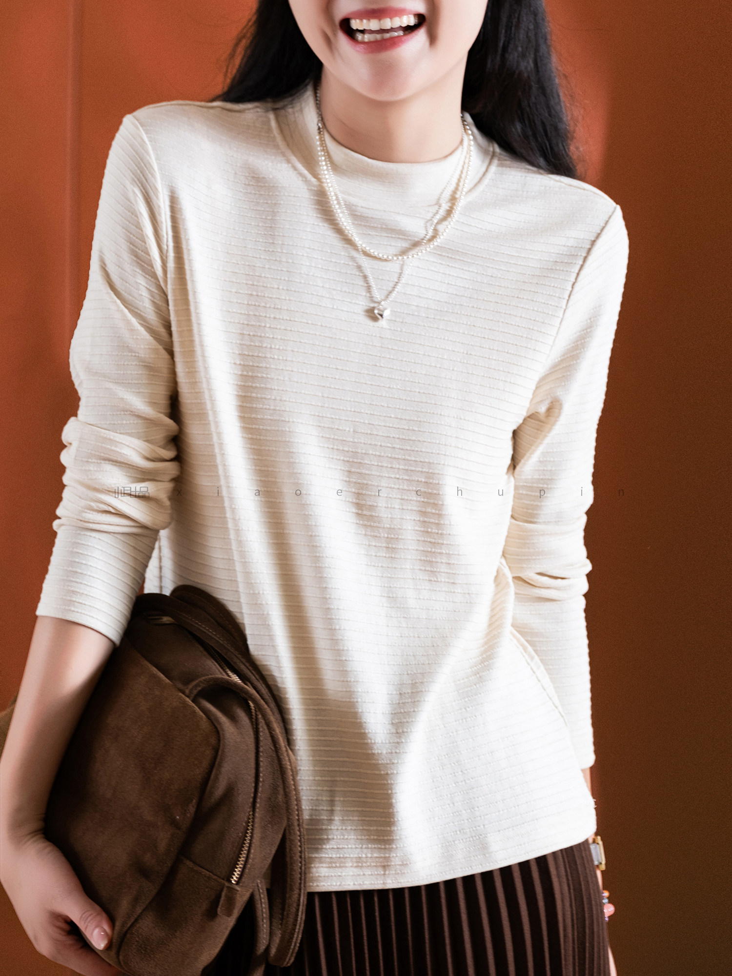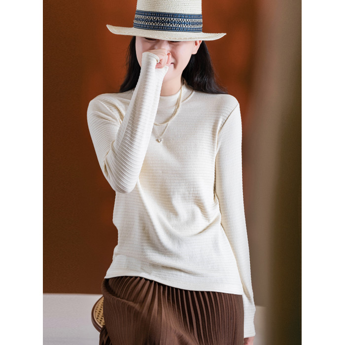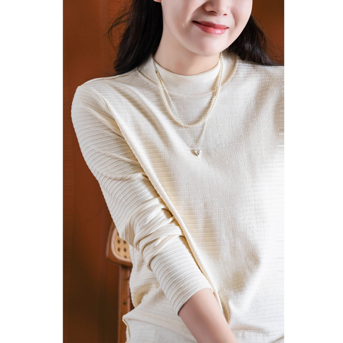 小耳出品 大版!萣製嬭酥紗/橫條立體提花 中領打底衫保暖百搭T