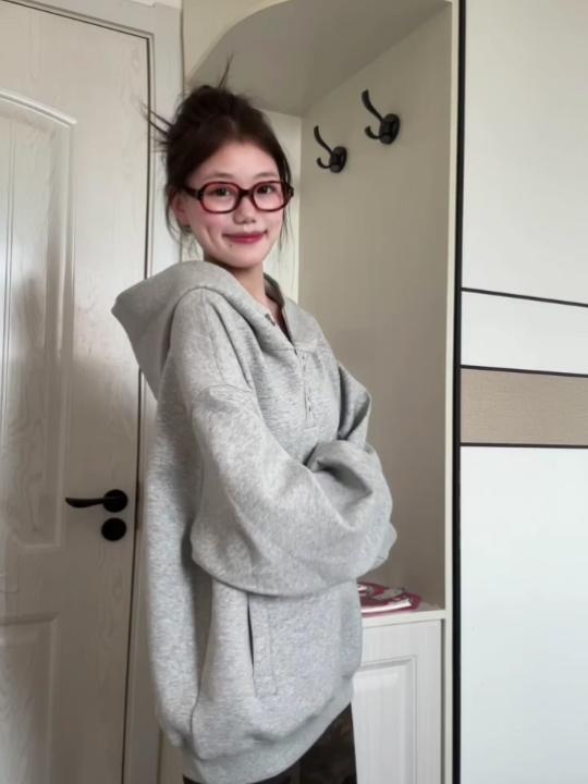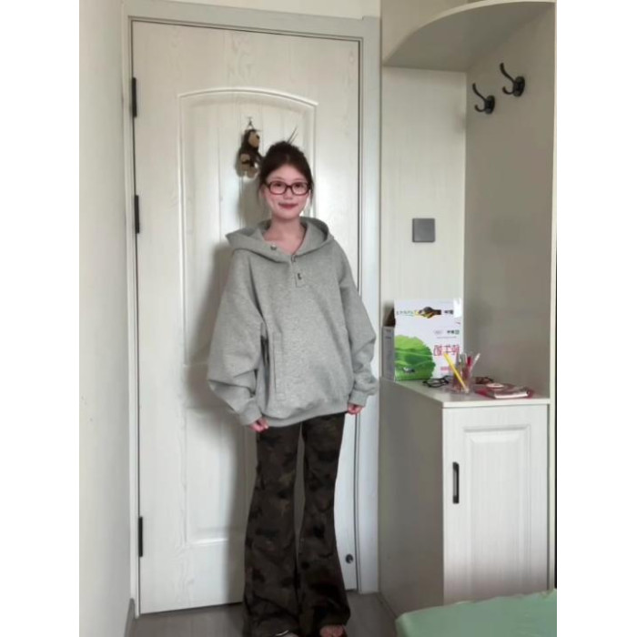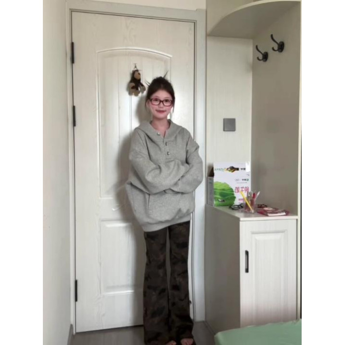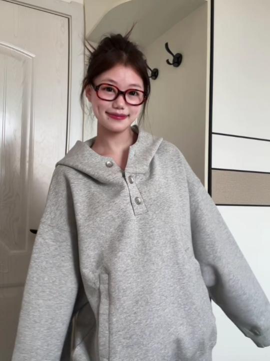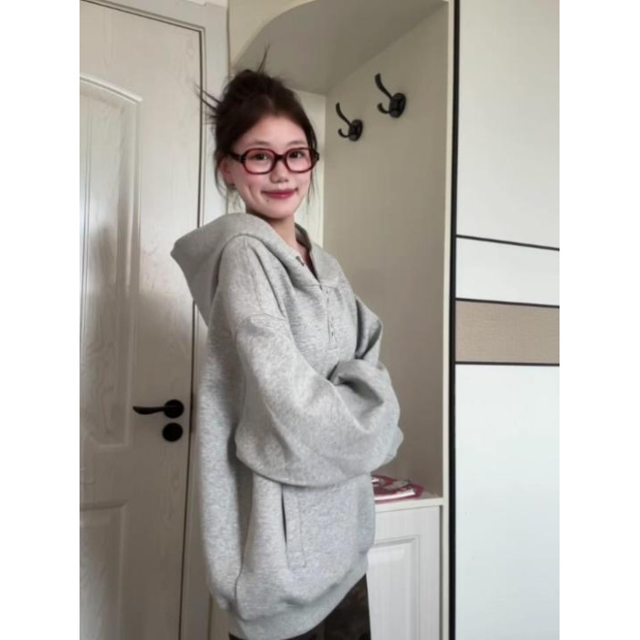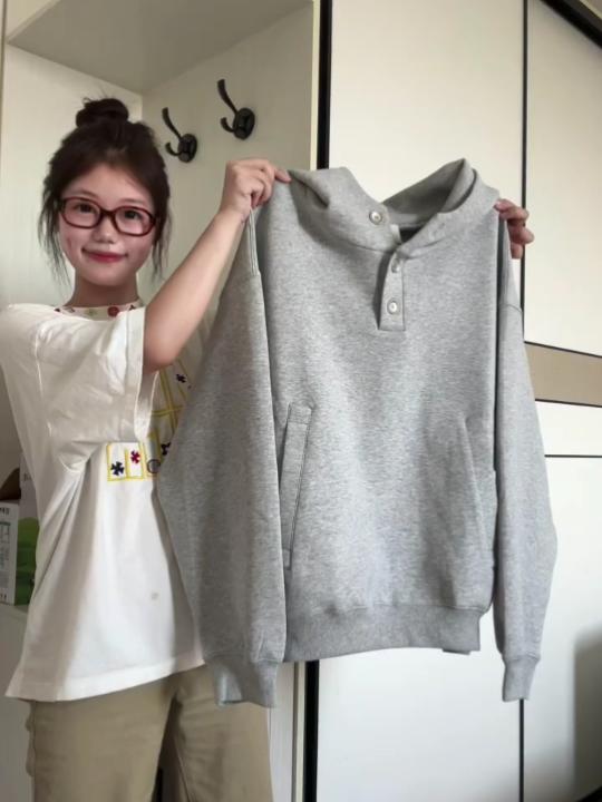 美式高領紐釦連帽衛衣女2025秋季潮牌寬松小衆設計感休閒慵懶外套