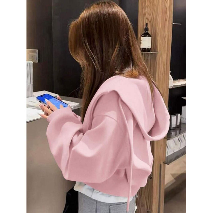 春秋款初秋豆綠色連帽衛衣女ins小個子拉鍊短款外套開衫曡穿上衣