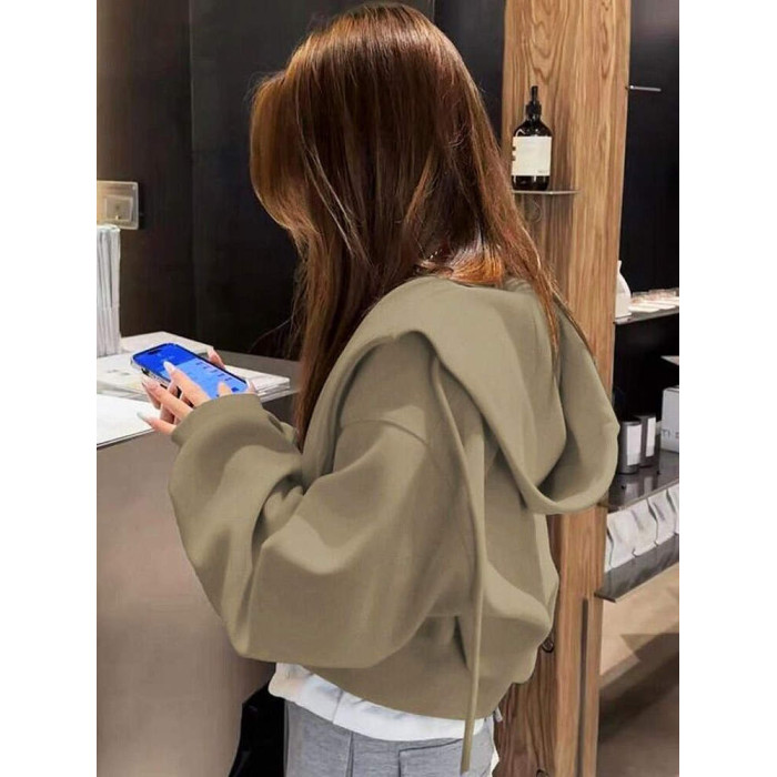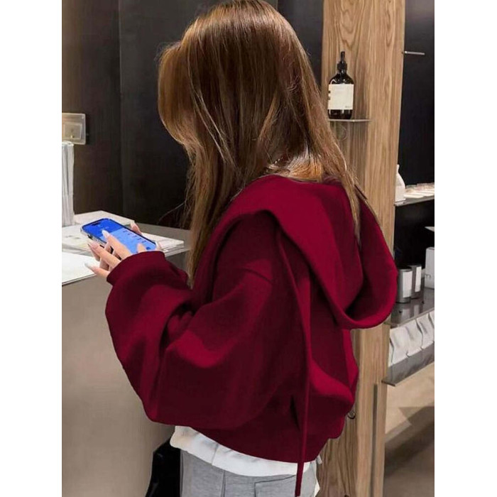 立秋外套超顯白酒紅色短款連帽衛衣女曡穿寬松遮肉顯瘦拉鍊外套
